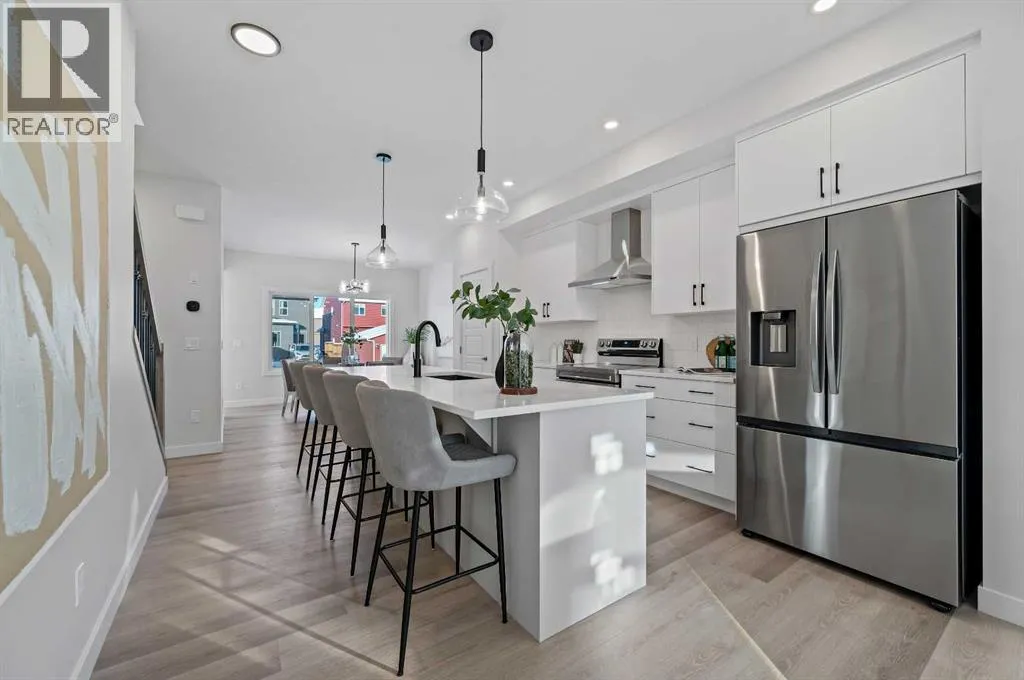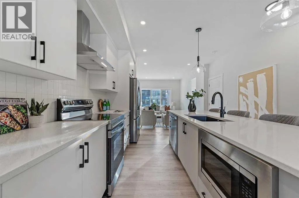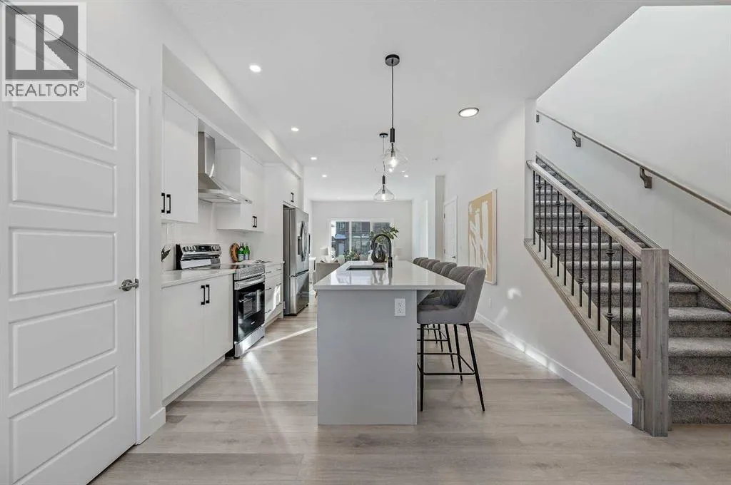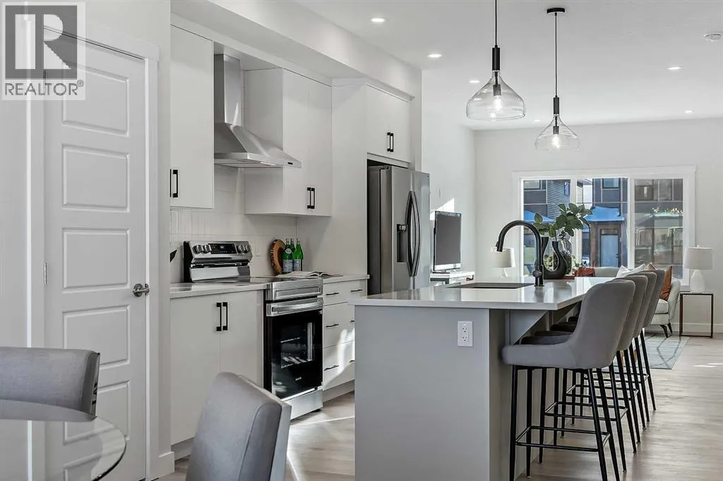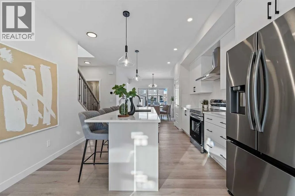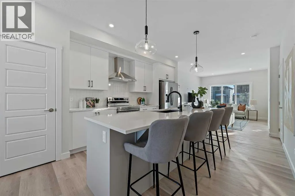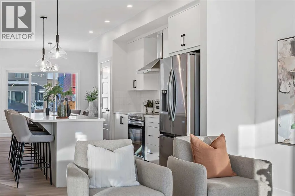 Welcome to this beautifully appointed, brand-new 3-bedroom, 2.5-bathroom duplex in the highly sought-after community of Fireside. Step inside to over 1600 sq. ft. of living space with an open-concept main floor. Large windows flood the space with natural light. The kitchen and living areas flow seamlessly, making it easy to entertain and enjoy everyday living. The kitchen offers ample storage, two-tone cabinetry in warm and cool colours, eye-catching black hardware and lighting, white quartz countertops, a spacious kitchen island and sleek stainless steel appliances. Head upstairs to a spacious primary suite with a 5-piece ensuite featuring an oversized shower and dual sinks. A walk-in closet completes the primary bedroom, making for a comfortable retreat. Two additional bedrooms, a full bathroom with a tub, and laundry complete the living levels. The unfinished basement with side entrance access and 9-foot ceilings offers endless potential to create extra living space to suit your needs. The backyard is a black canvas for you to landscape as you wish, and you can build the dream garage you have always wanted! With its quality finishes, smart layout, and unbeatable location, this Fireside duplex will be a great place to call home. Photos are representative and are of a previously built Felix model. Please see "mood board" in photos for colours and selections in this home. (id:27476)