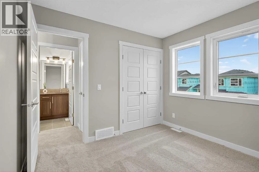 WOW ! A brand new home by Douglas Homes- Master Builder. Located one block from the new park that has been put into Southbow Landing. Thinking you may need a little bit more space ? Why not upgrade to this beautiful attached property- The Canberra ! With a generous almost 1500 worth of square footage, this home is sure to impress. This home provides 3 bedrooms, 2.5 bathrooms, a main floor bedroom or office for a perfect floor plan. The Douglas Homes kitchen comes standard with Quartz countertops on both the main floor kitchen, and the upstairs bathrooms. What an upgrade ! What really sets this home apart is the main floor office, isn't that handy ? As you go upstairs, the large window going up the stairs brings in lots of natural light. It's one of our favourite features of this home. Once upstairs, you will find 3 large bedrooms, and a walk in, full size washer and dryer with room for storage. The upstairs primary bedroom is spacious, and has a walk in closet, and even double sinks in the primary ensuite. This home doesn't even feel like a semi detached property, if you can believe it ! On the way to the basement you will find a side entrance which is perfect for a possible mortgage helper ( with approval from Rocky View County ). This home is ready in about six months and it can be yours this spring, and the best part is you have enough time to choose your palette of colours/finishings. Photos are from prior build & are reflective of fit, finish & included features. Note: Front elevation of home & interior photos are for illustration purposes only. Actual elevation style, interior colours/finishes, & upgrades may be different than shown & the Seller is under no obligation to provide them as such. Directions: Come to the Show Home first located at 115 Southborough Crescent. Show Home hours to view. This home is under construction (id:27476)