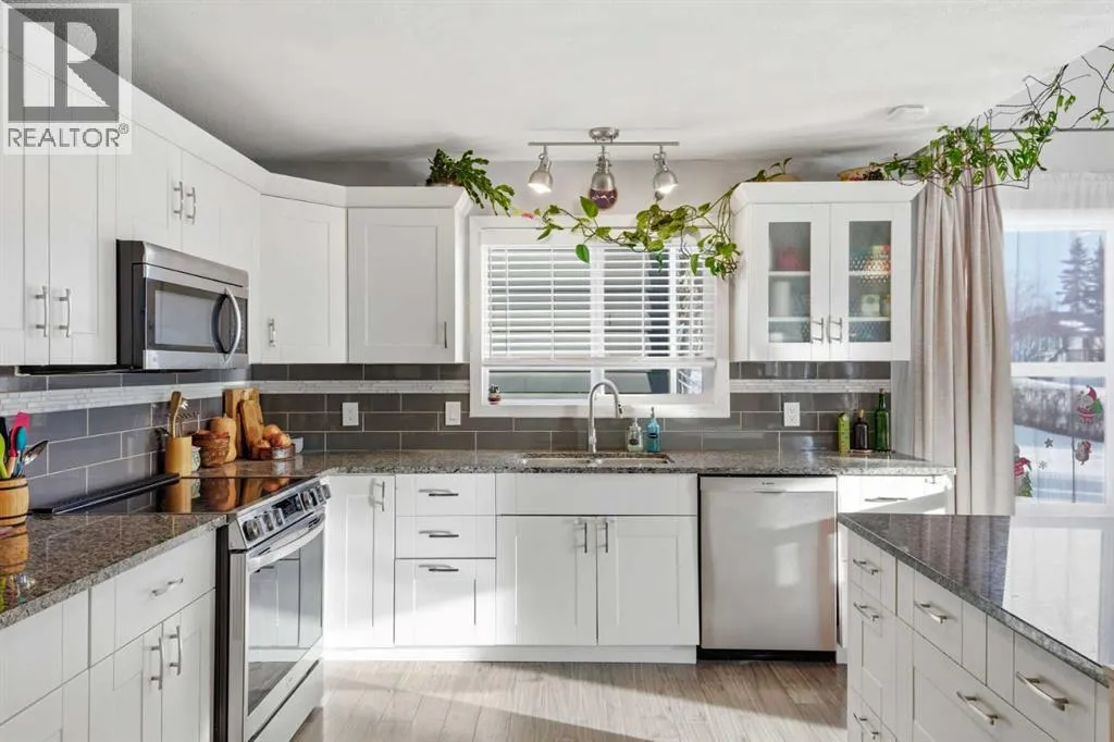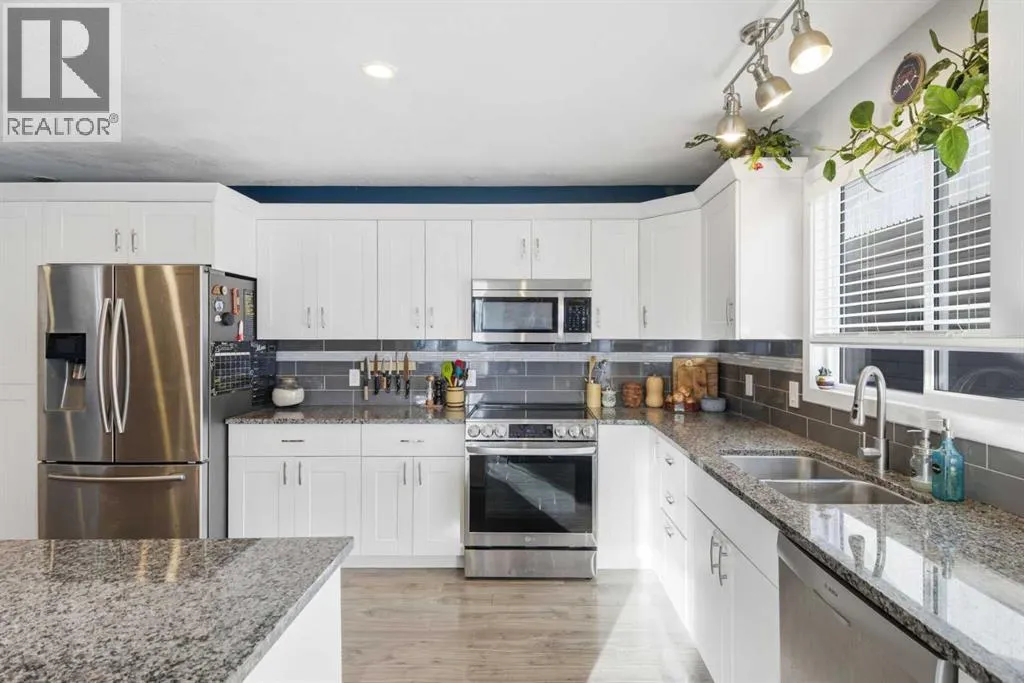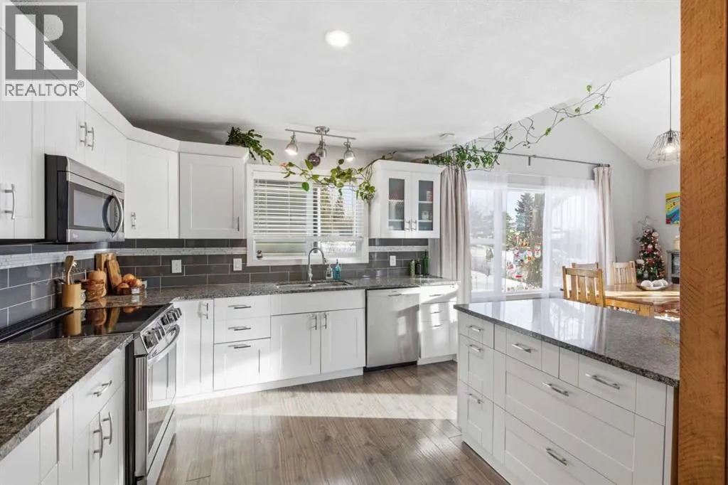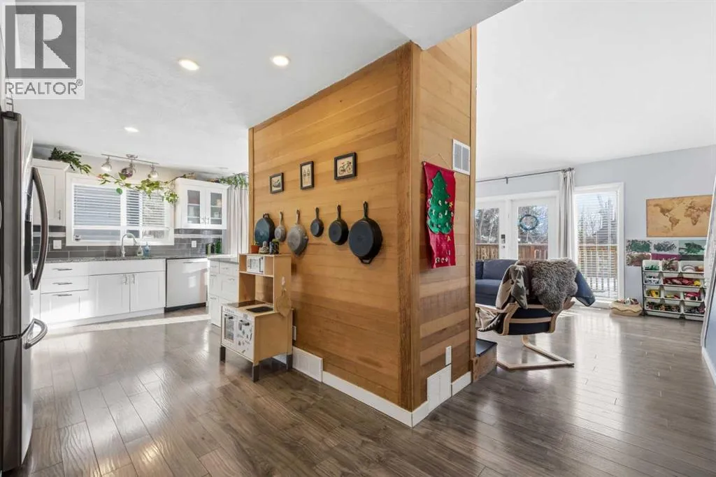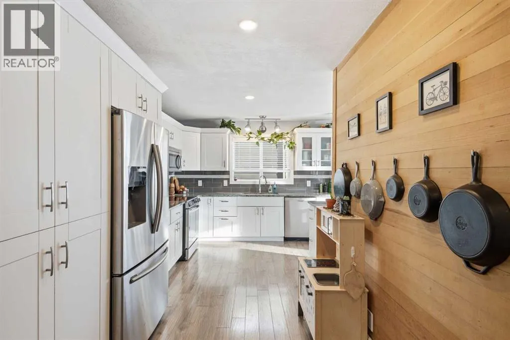 ***OPEN HOUSE Saturday & Sunday Jan. 3 & 4 from 1pm-3pm***Welcome to this beautifully renovated 4-bedroom, 3-bathroom home, ideally located within walking distance to the coffee/ice cream shops, dining, and amenities of downtown Cochrane. Thoughtfully updated from top to bottom, this property offers exceptional versatility, comfort, and excellent income potential with a basement kitchen, featuring a separate entrance. Recent upgrades include a fully renovated kitchen and bathrooms, new flooring, fresh paint, updated light fixtures, a newer roof, hot water tank, furnace, and Jeld-Wen windows and doors. The developed basement features new carpet and paint, along with a wet bar/kitchenetteâideal for a rental or extended family living. The basement was previously rented for $1200/month. The main level showcases an open-concept design with impressive 14â vaulted ceilings and a wood-burning fireplace at the center of the home, creating a warm and inviting focal point. The updated kitchen offers newer cabinetry, granite countertops, and stainless-steel appliances. Main Floor Laundry adds everyday convivence. The primary bedroom is also conveniently located on the main level and features a walk-through closet, 3-piece ensuite and French door leading to the back yard. Upstairs, youâll find two additional bedrooms with generous storage, an open office area, and a 4-piece bathroom. The private backyard is perfect for entertaining and relaxing, featuring an oversized deck with pergola, a large yard, and an impressive oversized 24â x 24â double garage with 10â ceilings and in-floor heating. Just steps from the Tim Bannister Memorial Ice Rink and within walking distance to Cochrane Christian Academy, Cochrane Valley Montessori School, and Rocky View School, this move-in-ready home offers an outstanding combination of location, upgrades, and income potential. (id:27476)