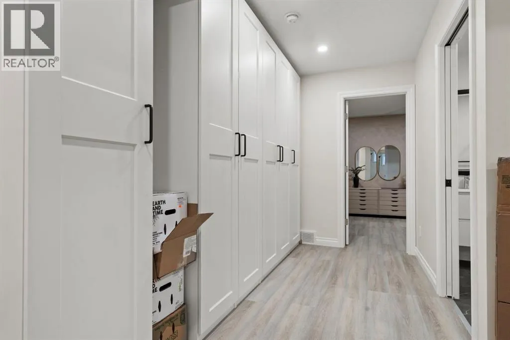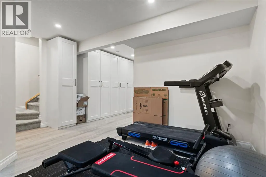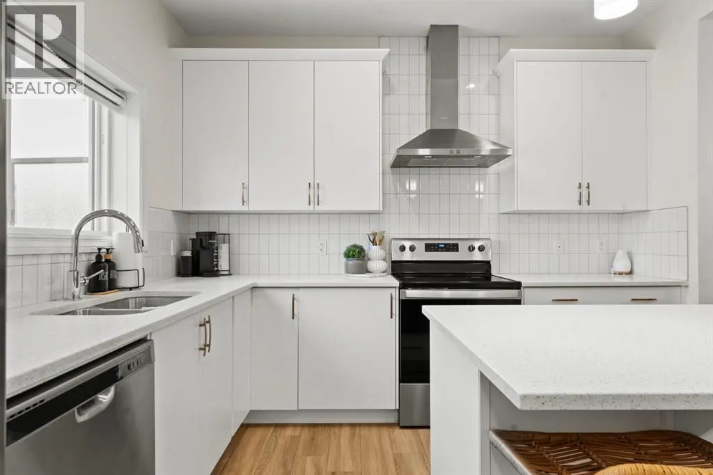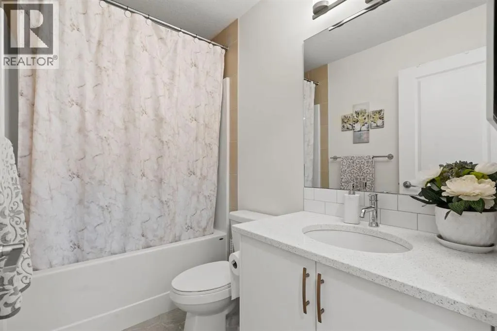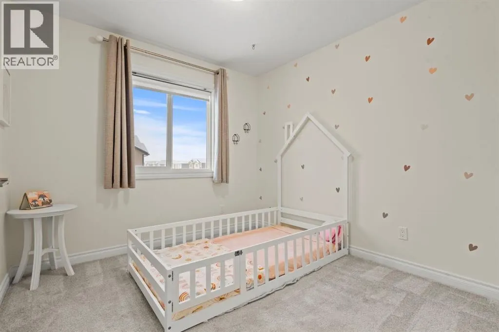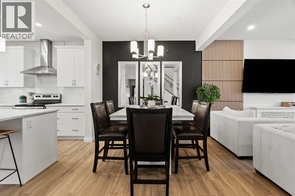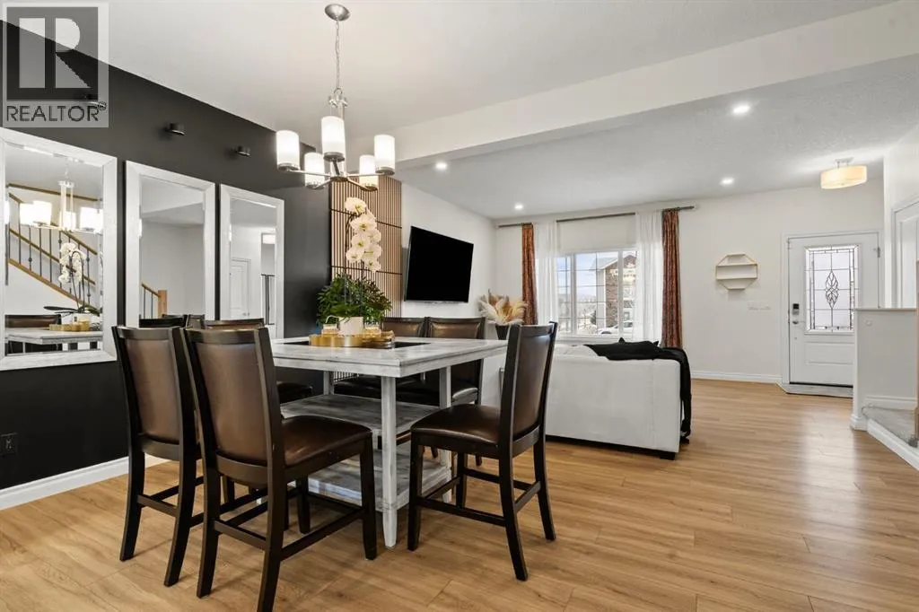 Welcome to this beautifully maintained 2-storey duplex in the heart of Cochrane, offering modern finishes, including smart technology with controls for lights, heat and door locks that can be controlled through your phone. As well as an Alexa doorbell. Thoughtful upgrades, and exceptional versatility in a neighbourhood loved for its proximity to schools, daycares, parks, and everyday amenities. The main level welcomes you with a bright, open-concept layout highlighted by vinyl plank flooring, recessed lighting, and stylish feature accents that add warmth and contemporary appeal. The inviting living room has large windows that flood the space with natural light creating an ideal setting for both everyday living and entertaining. At the heart of the home is the stunning kitchen, thoughtfully designed with quartz countertops, stainless steel appliances, crisp white cabinetry, and a large centre island with seating. Pendant lighting and a clean tile backsplash complete the space, while the adjacent dining area provides ample room for family meals and gatherings. A convenient main-floor powder room completes this level. Upstairs, youâll find three well-sized bedrooms, including a serene primary retreat featuring a walk-in closet and private 4-piece ensuite. Two additional bedrooms are served by a second 4-piece bathroom, creating a functional and family-friendly layout. The upper level also includes convenient laundry located near the bedrooms and a thoughtfully designed built-in desk/workstation, perfect for homework, remote work, or creative use. The fully finished basement adds incredible flexibility and value, offering a spacious recreation area ideal for a home gym, media room, play space, or studio. This level also features a bedroom and bathroom, making it perfect for guests, teens, or extended family. Custom built-in storage and modern finishes complete this well-designed lower level. Additional highlights include central air conditioning for year-round comfort a nd a thoughtfully planned layout with 1,486 sq. ft. of above-grade living space, plus an additional 660.27 sq. ft. in the professionally developed basement. Situated in a welcoming Cochrane community close to parks, schools, daycares, and local amenities, plus enjoy, an outdoor pump track, skate park, and outdoor rink within a 5 min walk of the home. This home offers the perfect balance of style, comfort, and location ideal for families, first-time buyers, or anyone looking to enjoy small-town living with modern conveniences. Don't miss your chance to see this one today. Quick possession is available. (id:27476)