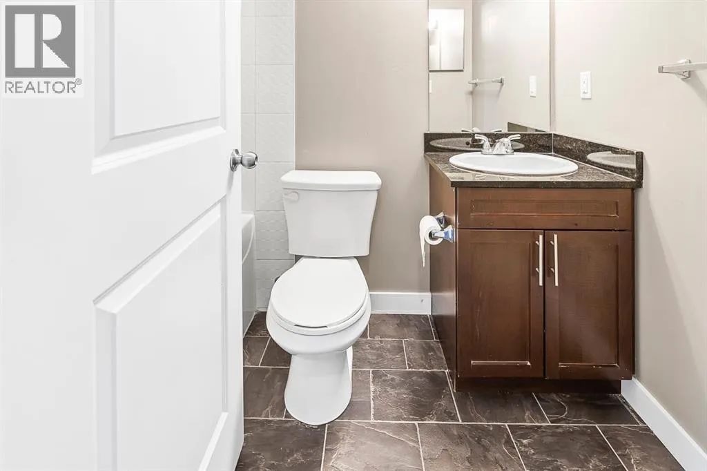 Welcome to comfort, convenience and true walkability in the heart of Cochrane. This bright and inviting 2 bedroom, 2 full bathroom ground floor suite in Glenbow Landing offers an ideal blend of accessibility and modern living. The building features low condo fees and is pet friendly, allowing both dogs and cats (1 dog under 15kg or 2 cats - subject to approval). The home also includes one titled underground parking stall and one assigned surface stall.This southeast facing unit offers a smart open layout with large windows and bedrooms thoughtfully positioned on opposite sides of the suite. It is a great fit for first time buyers, down-sizers or investors looking for a functional and highly rentable floor plan.The kitchen is well appointed with stainless steel appliances, granite countertops, tile backsplash, ample cabinetry, a breakfast bar and a generous pantry closet. The living and dining area easily accommodates full size furniture and opens onto an enclosed ground level balcony that offers privacy, security and extended outdoor living that can be enjoyed through multiple seasons.The spacious primary bedroom features a walk through closet and a 3 piece ensuite with granite countertops and a large stand up shower. The second bedroom is conveniently located beside the 4 piece main bathroom, making it ideal for guests, a home office or a roommate setup. An in suite laundry room with additional storage adds everyday convenience.Additional highlights include a welcoming front entry with a full size coat closet and the ease of ground floor access, perfect for those who prefer no stairs. Condo fees include heat and water, adding value and simplicity to your monthly expenses.Located just steps from Cochraneâs restaurants, coffee shops, grocery stores, parks and pathway system, this move in ready home offers an easy walkable lifestyle in one of the communityâs most convenient locations.A fantastic opportunity for both ownership and investment in sought after Glenbow Landing. (id:27476)