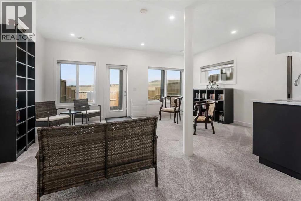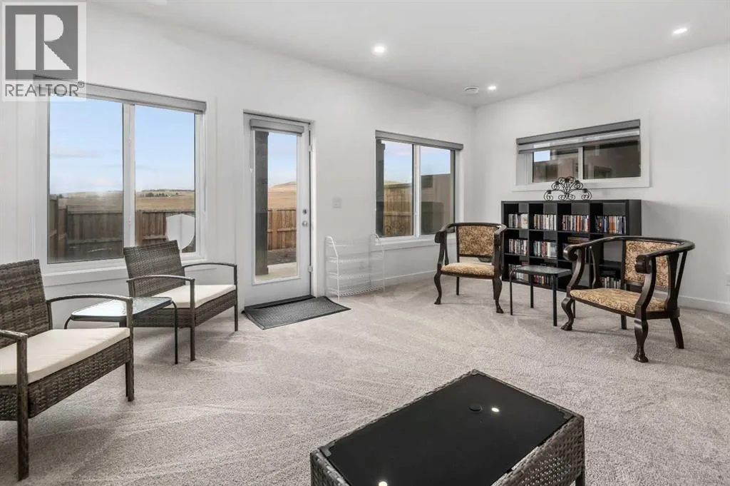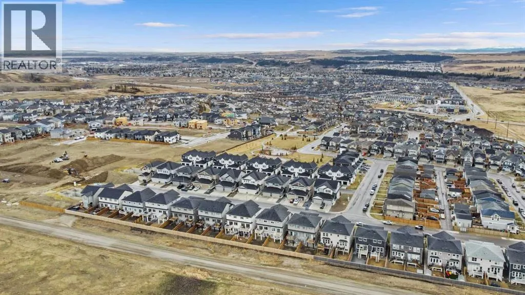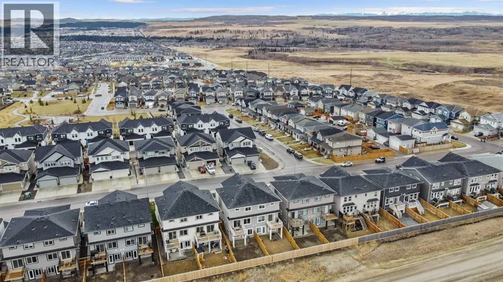 NO NEIGHBORS BEHIND - BACKING ONTO PARKS & RECREATION AREA - STUNNING MOUNTAIN VIEWS - FULLY FINISHED WALKOUT - OVER 2,200 SF - DOUBLE ATTACHED GARAGE - VACANT FOR QUICK POSSESSION... Experience elevated living in this meticulously crafted modern semi detached home, backing onto proposed park & recreation space offering over 2,200 sq ft of beautifully developed living space, stunning mountain views, walk-out finished basement, 3 spacious bedrooms, 3 bathrooms, and striking 9-foot ceilings throughout. With architectural details that balance sophistication and function, this home delivers comfort, style, and unbeatable value. As you step inside, you're welcomed by a bright, open-concept main floorâideal for both daily life and entertaining. The chef-inspired kitchen is a true centerpiece, featuring elegant quartz countertops, stainless steel appliances, a gas range, and a generous central island perfect for prepping, dining, and gathering. The adjacent living room is anchored by a beautiful electric fireplace and is bathed in natural light thanks to oversized windows that frame unobstructed views of the mountains and open plains. Step out onto the private back deck to spectacular mountain views to the west and open fields to the north, perfect for BBQs or quiet evenings soaking in the scenery. Upstairs, the home continues to impress with a stunning bonus room showcasing soaring ceilings and custom-built-in cabinetryâperfect as a home office, lounge, or creative space. The expansive primary suite offers a tranquil retreat, complete with a sleek 3-piece ensuite and a large walk-in closet. Two additional well-sized bedrooms and a full bathroom offer comfort and flexibility for family or guests. The fully developed walkout basement adds incredible versatility to this home, with large windows, a stylish wet bar with a full size fridge, and custom cabinetry, it's the ideal space for a home theater, guest suite, or secondary living area. The walkout design opens to a privat e grade-level concrete patio and fully fenced yard. A large furnace/storage room offers additional practicality, with the option of adding a bathroom with rough in plumbing. Location is key, heritage hills offer an abundance of green space walking/bike paths and close proximity to schools, parks and all amenities with easy access to highway 1A leading you to the mountains in less than an hour. You're going to love this home, perfectly blending modern elegance with functional design and breathtaking views, this home is ready to impress. Book your viewing today! (id:27476)