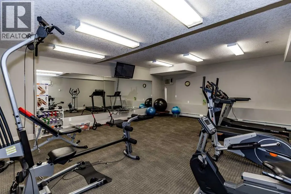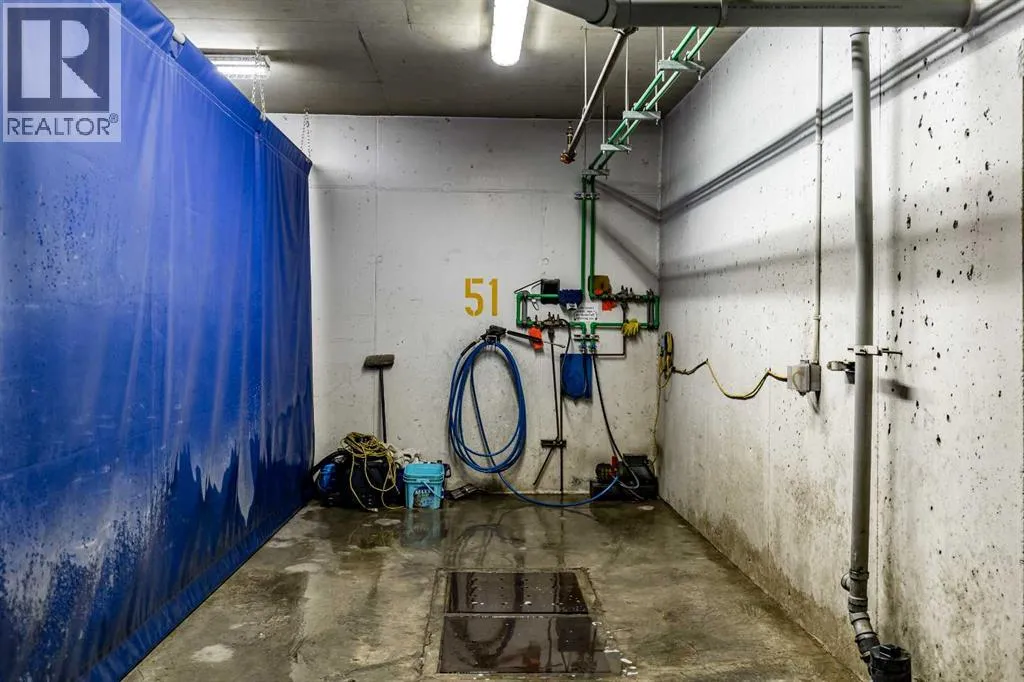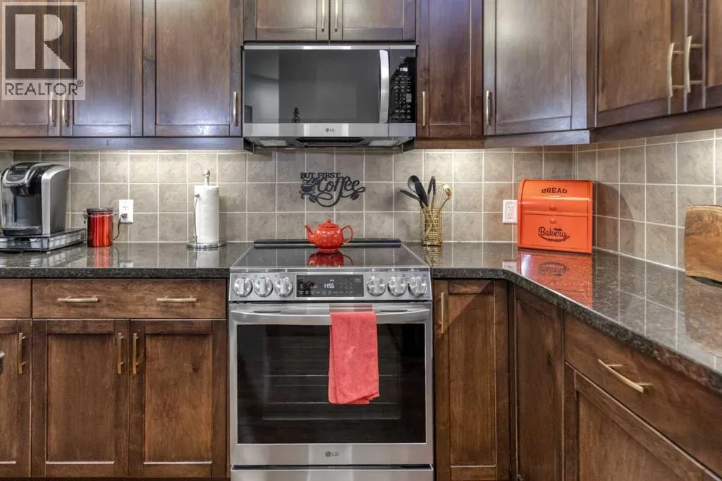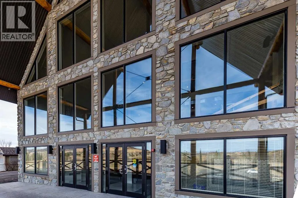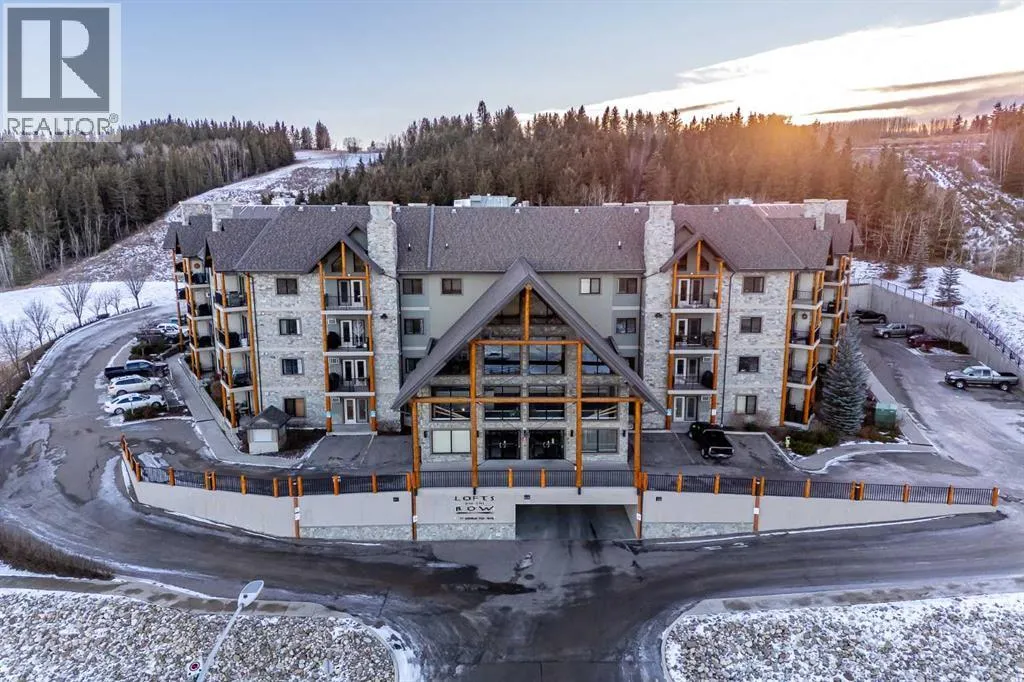 Welcome to Cochrane's most prestigious condo complex. Situated along George Fox Trail, Lofts on the Bow overlooks soccer fields, a playground area, the Bow River and the Big Hill. This two bedroom, two bathroom condo plus a Den is an end unit and features a private patio adjoining the 7,000 square foot Courtyard. The patio comes with a gas hookup for your BBQ and also has a storage room included. Inside, this unit features Hardwood floors throughout except in the bathrooms and Laundry room. The Kitchen has Gleaming granite counter tops and lots of cabinets . The lower cabinets have pullout shelving. The ceilings are 9 feet tall . New lighting throughout and unit has all new paint. All appliances are included and are just 1 year old with 3 years of extended warranty transferable to the NEW OWNER. This condo is secluded and sheltered and great for bird watching. This complex is a 55+ building and has many amenities including a pool table for those who like that, a workout room with various machines, a meeting room/ quilting room, a full kitchen and banquet facilities. There are also two guest suites that can be rented for your guests comfort. One Titled and heated underground parking space is included and there is a car wash in the Parkade. There are also lots of outside parking spaces on either side of the condo building and extra ones at the back of the building for those oversized vehicles. With easy access you can enter this PRESTINE property showing PRIDE OF OWNERSHIP THROUGHOUT . (id:27476)