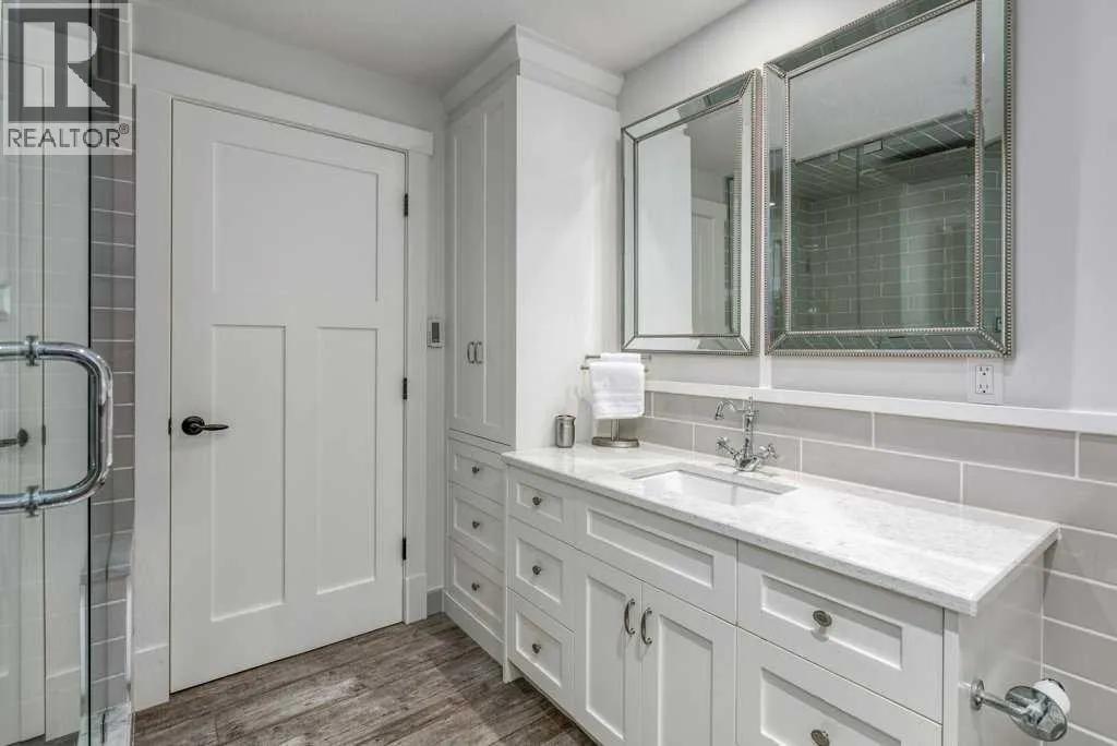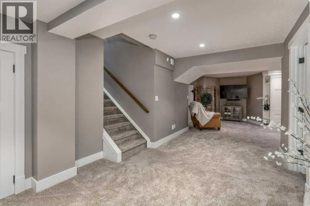 Discover a luxury lifestyle where quality, convenience and nature collide. This fully renovated family home is located directly across from the tri-schools and backs onto the historic Cochrane Ranche in the town's most sought-after community, Cochrane Heights. Exquisitely appointed, this home was completely transformed in 2014 and new shingles were just done in 2025. Its tasteful selections and high end finishes include a solid wood front door, oak hardwood and ceramic tile flooring throughout the main level. A vaulted ceiling spans the living room and formal dining area for a dramatic first impression. The kitchen boasts an upscale farmhouse esthetic with beaded panel shaker cabinets, a lit panel valence, granite perimeter counters, butcher block island with a vintage tin detail and a gorgeous apron front farm sink. There is a top of the line stainless appliance package including an induction stove and ample storage. A sunken family room is the perfect place to unwind in front of the wood burning fireplace (with gas assist) while taking in the beautiful views behind. Also on the main level is a cozy office with an elegant privacy window, while down the hall a practical powder room and laundry combo is appointed with tile wainscotting. Upstairs you will find three bedrooms, including the primary suite with its stunning mountain views, a walk-in closet and luxurious ensuite bathroom featuring a vintage inspired vanity, free standing shower, heated floors and incredible Victoria + Albert soaking tub. The main bathroom that serves the kids bedrooms includes granite counter top, subway tile around the bath/shower and heated tile floors. The basement is fully developed and includes fabulous built-ins and millwork including a pull down murphy bed. A generously sized 4th bedroom is ideal for guests who will love the exquisite bathroom with heated tile floors, a spacious steam shower with rain shower head and a bench seat. The outside of this home is equally as impressive with acrylic stucco and cedar accents, defining this home's presence and mountain inspired appeal. There is a fantastic exposed aggregate driveway with a poured concrete walkway that surrounds the house, providing both front and back patio areas to enjoy the birds singing and the rustling of the leaves in your yard. The heated garage has Swisstrax flooring and a man door to the side yard. This property is truly a gem offering an unparalleled level of privacy, access to recreation, schools and is walking distance to downtown. The extensive trail system behind the house connects all of Cochrane, through to the Big Hill Springs and a remarkable bird preserve area where nature lovers study this ecologically rich landscape. Don't miss your opportunity to own a move-in-ready home on one of Cochrane's most sought-after streets, thoughtfully designed for your family's enjoyment for years to come. (id:27476)