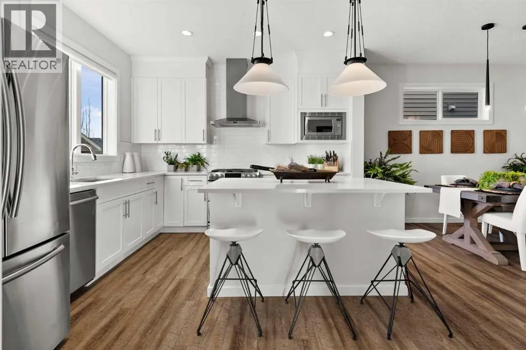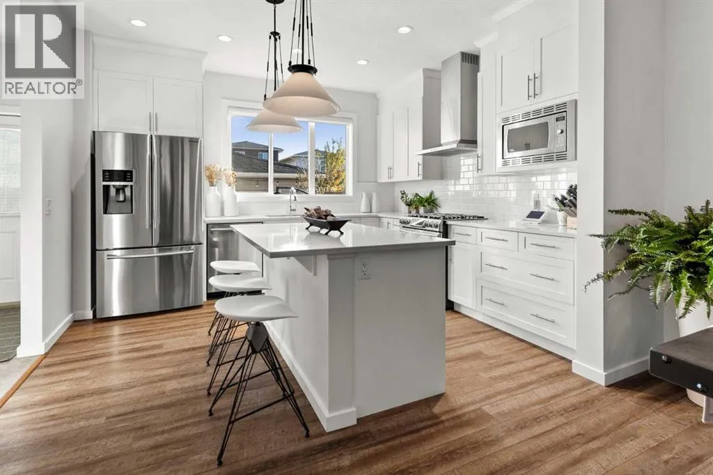 Welcome to this stunning 3 bedroom, 2.5 bathroom home in the desirable west Cochrane community of Heritage Hills. Combining modern comfort with timeless charm, this property offers the perfect balance of style, functionality, and location. From the inviting front porch to the thoughtfully designed interior, every detail has been carefully considered. The open concept main floor is filled with natural light, creating a warm and welcoming atmosphere. The spacious living room flows seamlessly into the dining area and modern kitchen complete with sleek stainless steel appliances including a gas range, ample cabinetry, and plenty of counter space â perfect for family meals or entertaining guests. Upstairs, youâll find three generous bedrooms, including a primary suite featuring a walk-in closet and private ensuite bathroom. Two additional bedrooms, full laundry room and a full bath provide plenty of room for family or guests. The basement offers endless potential to customize the space to suit your needs â whether itâs a recreation room, home office, gym or additional living area. Outdoors, enjoy a low maintenance landscaped rear yard with a patio ideal for relaxing or hosting summer barbecues. The oversized detached double garage provides ample parking and storage space, and features a secondary overhead garage door offering convenient backyard access. Located just steps from a playground and minutes from amenities and scenic walking trails, with exceptional access to the majestic Rocky Mountains, this home perfectly blends convenience and community. Experience the best of Cochrane living in this exceptional Heritage Hills home. (id:27476)