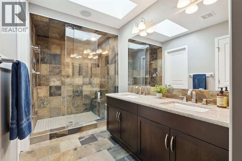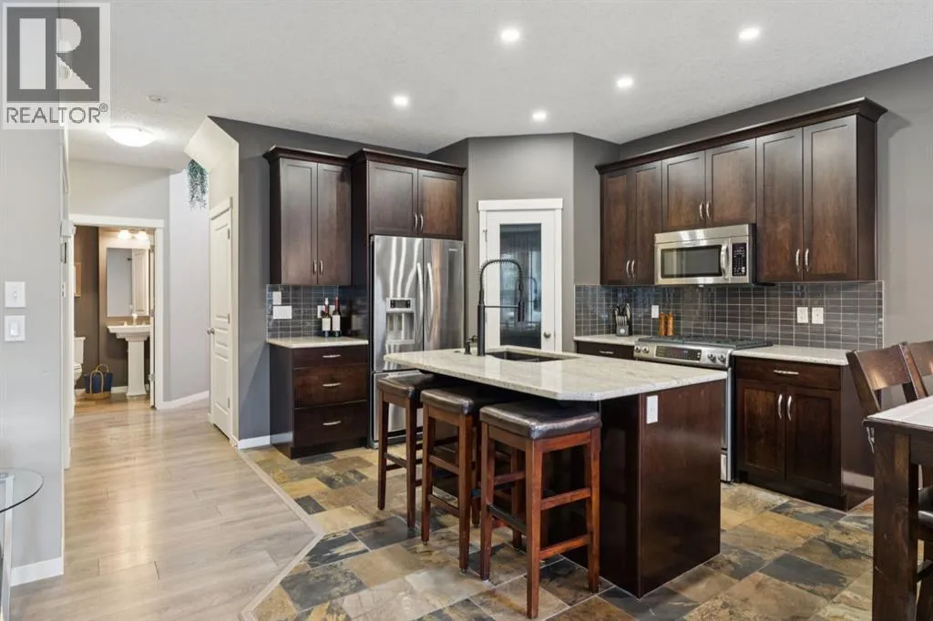 Welcome to 453 River Heights Drive, a thoughtfully designed family home offering just over 2,000 sq. ft. of refined living space, paired with high-end comfort features and exceptional outdoor enjoyment.The main floor is both functional and welcoming, featuring a private home office, a bright open-concept layout, and heated tile floors in the kitchen, entry, and all bathroomsâperfect for year-round comfort. The kitchen anchors the space and flows effortlessly into the dining and living areas, making it ideal for everyday living and entertaining alike.Upstairs, youâll find three generous bedrooms, including a relaxing primary retreat complete with a steam shower ensuite. A spacious bonus room with a future bar rough-in adds flexibilityâwhether you envision a media room, games space, or second lounge.The undeveloped basement offers impressive 9â ceilings and hydronic in-floor heating, providing a warm and versatile canvas to create additional living space tailored to your needs. The in-floor heated garage with floor drain delivers practical convenience through all seasons.Outside, the property truly stands out. Enjoy a 25â x 14â deck, stamped concrete patio and walkways, a private putting green, artificial turf front yard, and a beautifully treed backyard designed for low maintenance and maximum enjoyment.Additional features include central air conditioning, a whole-home boiler heating system, and scenic views of Cochrane Hill from the front of the home. Ideally located close to schools, pathways, and the Spray Lakes Recreation Centre, this home offers the perfect balance of comfort, lifestyle, and location.A well-rounded opportunity for todayâs buyer seeking quality, space, and long-term valueâbook your private showing today. (id:27476)