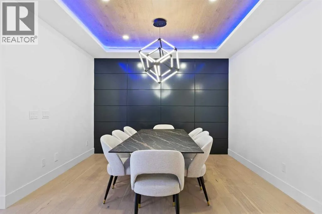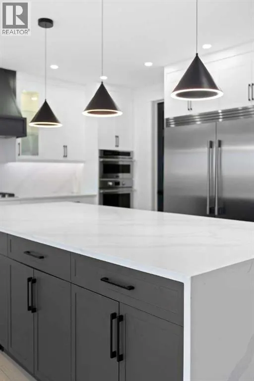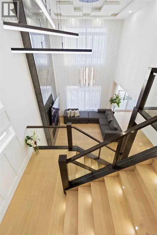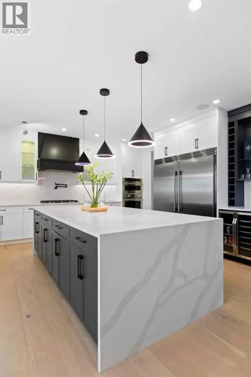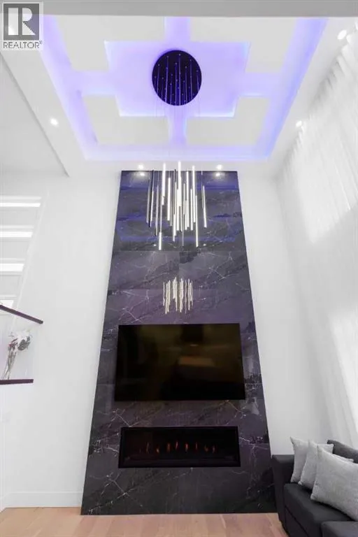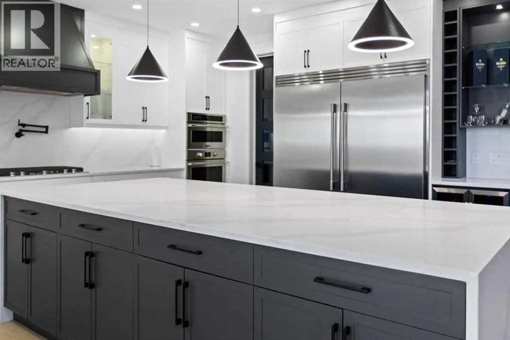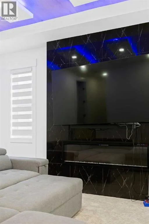 This home is currently under construction. Photos are for representation purposes only and are not of the actual property. Finishes, features, and specifications may vary.Welcome to a truly exceptional Modern Beach Houseâinspired luxury residence, perfectly situated on a large pie-shaped lot and backing refined design with resort-style living. Featuring a triple car garage, expansive outdoor spaces, and a fully developed basement, this home is thoughtfully crafted for elevated family living and entertaining.The main level makes an immediate impression with its open-to-above family room, soaring ceilings, and abundant natural light. Designed with 9-foot ceilings and 8-foot doors, this floor includes a main-floor bedroom and full bathroom, ideal for guests or multigenerational living. The chefâs kitchen is a showpiece, equipped with custom cabinetry, quartz countertops, built-in wall oven and microwave, gas cooktop, oversized fridge/freezer, and dishwasher. A spice kitchen with pantry enhances functionality, while a custom island with a flush eating bar and architectural ceiling detail anchors the space. A separate dining area features a designer accent wall and custom ceiling treatment, while the living area is warmed by a built-in gas fireplace. Practical touches include custom mudroom cabinetry with bench seating and MDF shelving throughout all main-floor closets. Step outside to an expansive deck, perfect for outdoor entertaining.The upper level is designed for comfort and connection, offering four bedrooms, three full bathrooms, a dedicated laundry room, and a spacious bonus room overlooking the open-to-below living area. The bonus room features tray ceilings and custom media built-ins, creating an ideal family lounge. Secondary bedrooms are connected by a Jack & Jill bathroom, while the primary retreat is a true sanctuaryâcomplete with tray ceiling, private balcony with glass railing, and oversized patio doors. The spa-inspired ensuite includes a double va nity, freestanding soaker tub, steam shower with full tile surround and glass doors, heated floors, and a striking two-sided fireplace, paired with a custom walk-in closet featuring MDF shelving.The fully developed basement expands the homeâs versatility with two large bedrooms, a full bathroom, a theatre room, a home gym, wet bar, and generous storage, all complemented by approximately 9-foot ceilingsâperfect for entertaining, guests, or extended family living.The exterior showcases a sophisticated blend of Hardie Board board-and-batten detailing, stone masonry, upgraded front entry, and LED lighting, enhancing curb appeal from every angle. Multiple outdoor living spacesâincluding a covered deck and balcony with glass railingsâcomplete this resort-inspired design.Bold. Refined. Unforgettable.This home delivers architectural presence, luxury finishes, and thoughtful designâsetting a new standard for modern living. (id:27476)