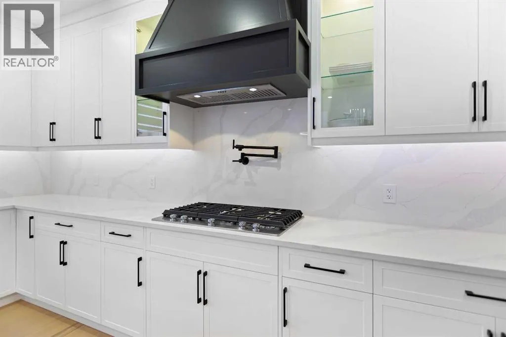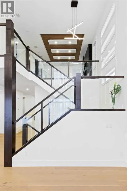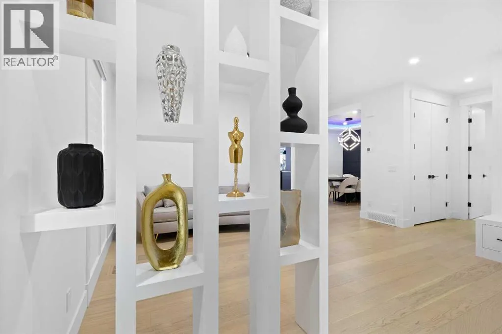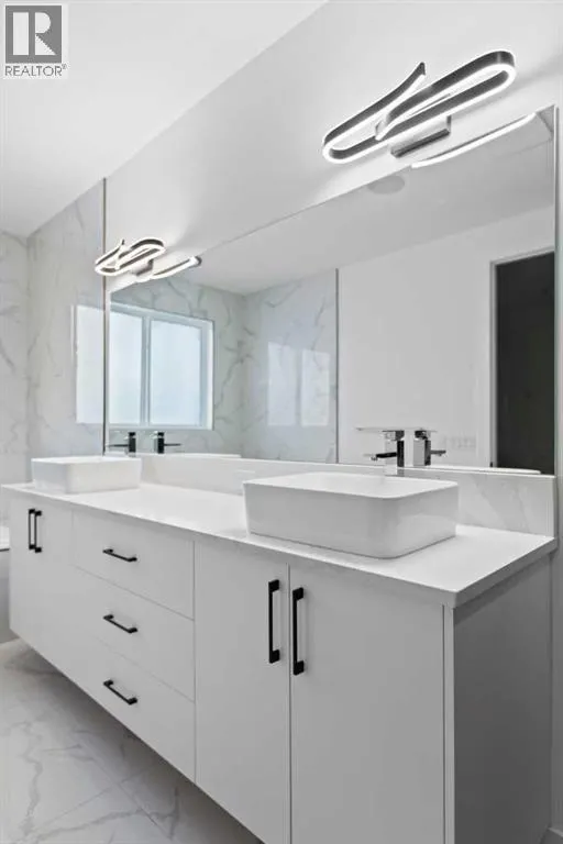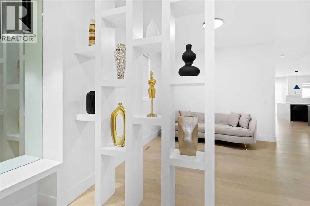 This home is currently under construction. Photos are for representation purposes only and are not of the actual property. Finishes, features, and specifications may vary.Welcome to a truly exceptional Modern Beach Houseâinspired luxury residence, perfectly situated on a large pie-shaped lot and backing refined design with resort-style living. Featuring a triple car garage, expansive outdoor spaces, and a fully developed basement, this home is thoughtfully crafted for elevated family living and entertaining.The main level makes an immediate impression with its open-to-above family room, soaring ceilings, and abundant natural light. Designed with 9-foot ceilings and 8-foot doors, this floor includes a main-floor bedroom and full bathroom, ideal for guests or multigenerational living. The chefâs kitchen is a showpiece, equipped with custom cabinetry, quartz countertops, built-in wall oven and microwave, gas cooktop, oversized fridge/freezer, and dishwasher. A spice kitchen with pantry enhances functionality, while a custom island with a flush eating bar and architectural ceiling detail anchors the space. A separate dining area features a designer accent wall and custom ceiling treatment, while the living area is warmed by a built-in gas fireplace. Practical touches include custom mudroom cabinetry with bench seating and MDF shelving throughout all main-floor closets. Step outside to an expansive deck, perfect for outdoor entertaining.The upper level is designed for comfort and connection, offering four bedrooms, three full bathrooms, a dedicated laundry room, and a spacious bonus room overlooking the open-to-below living area. The bonus room features tray ceilings and custom media built-ins, creating an ideal family lounge. Secondary bedrooms are connected by a Jack & Jill bathroom, while the primary retreat is a true sanctuaryâcomplete with tray ceiling, private balcony with glass railing, and oversized patio doors. The spa-inspired ensuite includes a double va nity, freestanding soaker tub, steam shower with full tile surround and glass doors, heated floors, and a striking two-sided fireplace, paired with a custom walk-in closet featuring MDF shelving.The fully developed basement expands the homeâs versatility with two large bedrooms, a full bathroom, a theatre room, a home gym, wet bar, and generous storage, all complemented by approximately 9-foot ceilingsâperfect for entertaining, guests, or extended family living.The exterior showcases a sophisticated blend of Hardie Board board-and-batten detailing, stone masonry, upgraded front entry, and LED lighting, enhancing curb appeal from every angle. Multiple outdoor living spacesâincluding a covered deck and balcony with glass railingsâcomplete this resort-inspired design.Bold. Refined. Unforgettable.This home delivers architectural presence, luxury finishes, and thoughtful designâsetting a new standard for modern living. (id:27476)