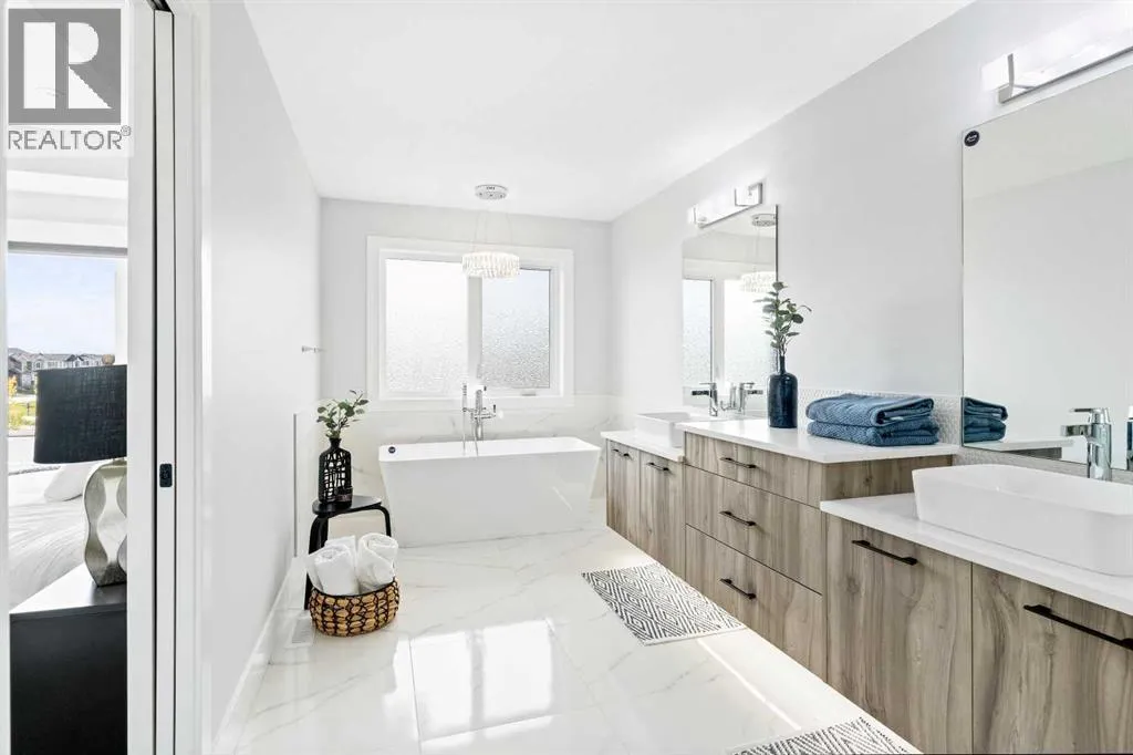 This home is currently under construction. Photos are for representation purposes only and are not of the actual property. Finishes, features, and specifications may vary.Welcome to Sunset Ridge, where luxury meets lifestyle in this beautifully crafted home by Green Cedar Homes. Offering approximately 3,000 sq. ft. of thoughtfully designed living space, this residence features 4 bedrooms, 4 bathrooms, a walk-out basement, and a triple attached garage, all set against Cochraneâs iconic mountain backdrop.The main floor is bright, open, and designed for both connection and comfort. At the heart of the home is a chef-inspired kitchen with premium finishes, sleek cabinetry, and seamless flow into the dining and living areasâperfect for entertaining and everyday living. The living room is anchored by a gas fireplace, adding warmth and sophistication to the space.A versatile flex room on the main floor offers the ideal setup for a home office, study, or formal sitting area, while the walk-through pantry and mudroom enhance functionality and organization for busy households.Upstairs, the primary suite is a true retreat, featuring a spa-style ensuite with dual vanities, a freestanding soaking tub, and an oversized shower, along with a generous walk-in closet. Three additional bedrooms, each with access to full bathrooms, and a spacious bonus room complete the upper levelâbalancing comfort, privacy, and style.The undeveloped walk-out basement provides endless possibilities to create a custom entertainment space, home gym, or guest suite, all with direct backyard access and abundant natural light.Located in one of Cochraneâs most desirable communities, Sunset Ridge offers scenic walking trails, parks, schools, and breathtaking Rocky Mountain views, just minutes from everyday amenities.Built with precision and care by Green Cedar Homes, this property captures the essence of modern family livingâelegant, spacious, and designed to impress. (id:27476)
