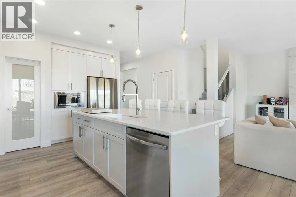 Welcome to Heartland, a friendly community on the west side of Cochrane known for its walkable streets, established pathways, and access to parks and green spaces. Its location makes getting out of town quick and easy, with a short 15-minute drive to Ghost Lake and just 50 minutes to Canmore for weekend adventures. A future school site, multiple parks, including a new off-leash dog park and a pathway connecting Heartland to the trails leading to the ponds at Mitford and the Bow River round out the community.This Daytona-built home offers over 3,000 sq ft of potential living space. The main floor features a bright front entry, a dedicated home office thatâs perfect for working from home or main floor workout space, plus a large mudroom with a walk-through pantry. The kitchen is finished with white shaker cabinets, granite countertops, stainless steel appliances, a gas stove, and a big island thatâs great for gathering with family and friends. The open layout keeps the main floor bright and welcoming, and the electric fireplace adds a cozy touch to the living room. Youâll also appreciate the air conditioning, new blinds throughout, and the upgraded 200-amp panel thatâs ready for an EV charger or a future hot tub or sauna.Upstairs, thereâs a spacious bonus room at the front of the home with a potential to convert to a fourth bedroom if needed. The primary bedroom looks out over the greenspace and includes a large ensuite with a soaker tub, separate shower, and double vanity. Two more bedrooms with generous closets, a full bathroom (also with double vanity), and a conveniently located laundry room finish off the upper level.The unfinished basement is ready for your ideas, with plumbing and radon rough-ins already in place. Out back, the yard backs onto a future school site with views of the Mount St Francis Hillside, offering extra space and long-term value. A great home in a great community, this one is definitely worth a look. (id:27476)