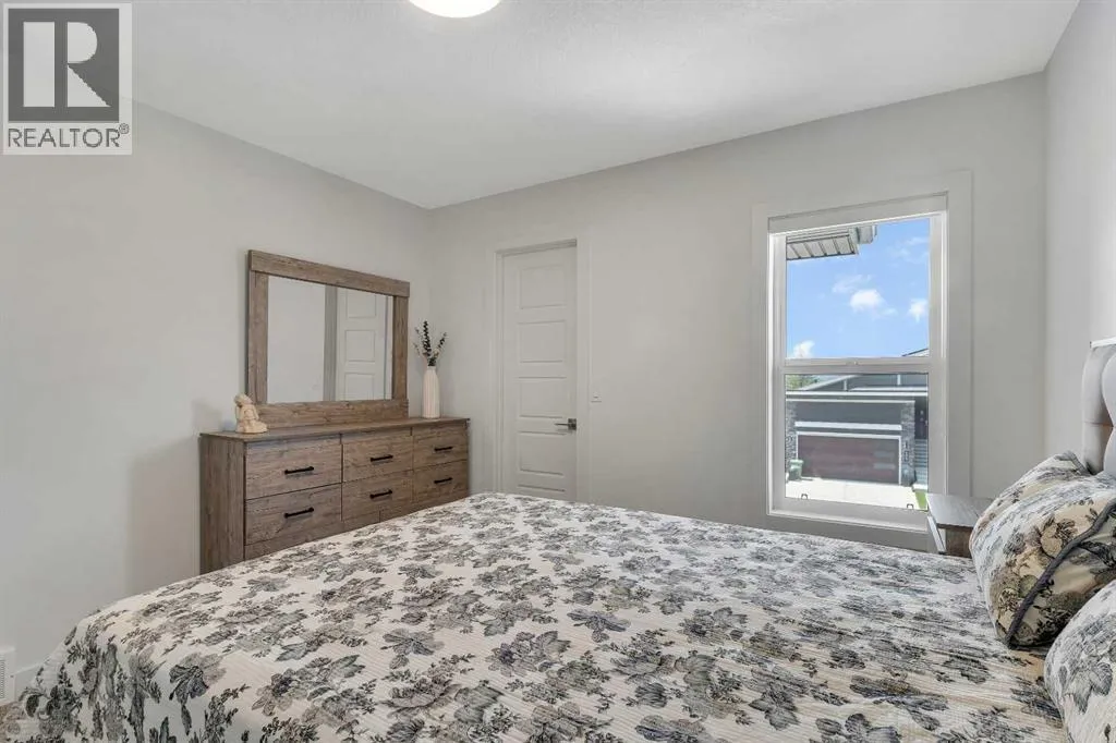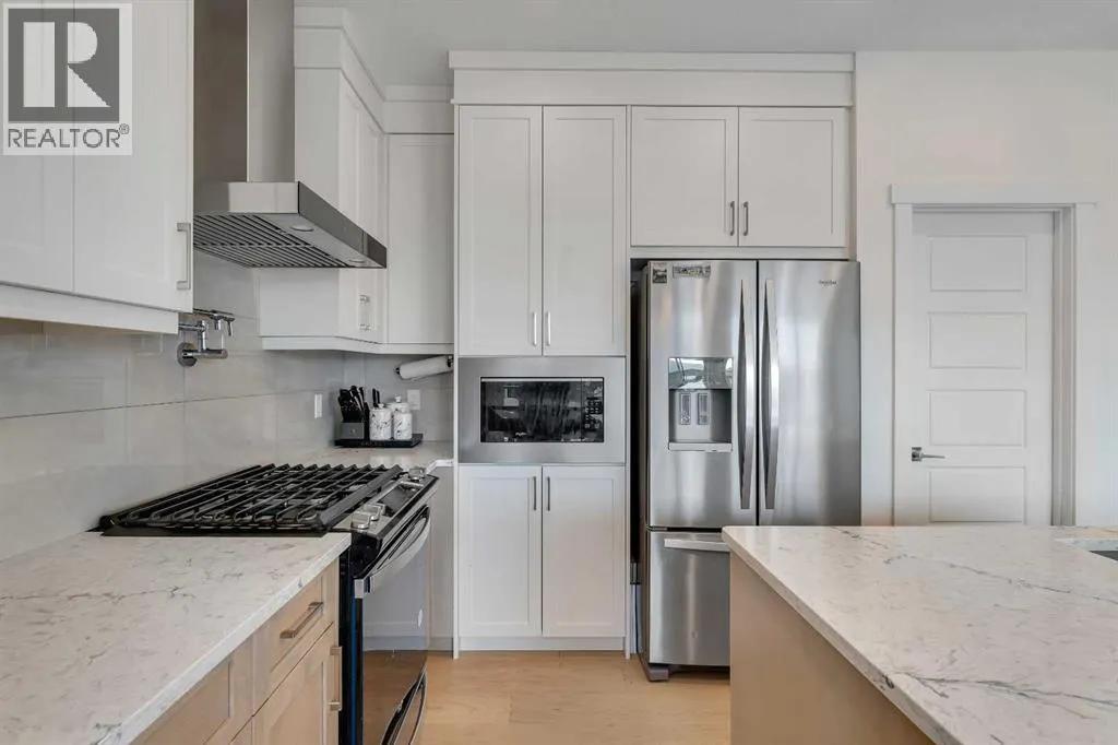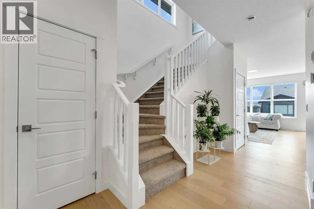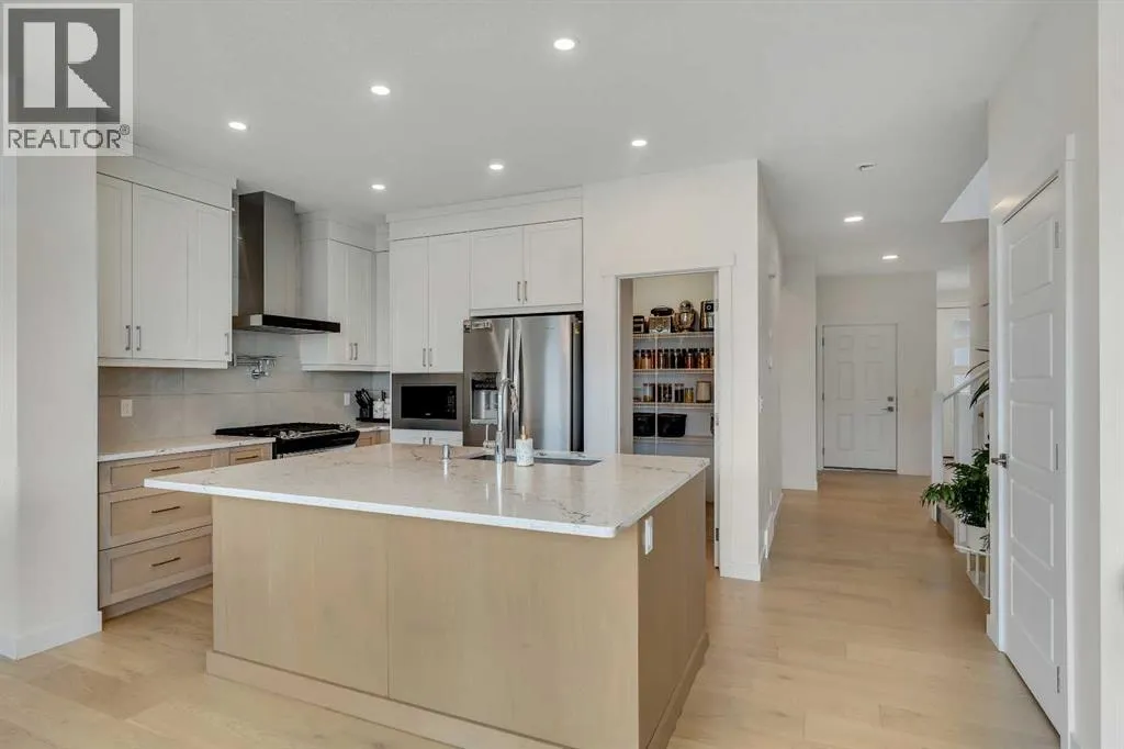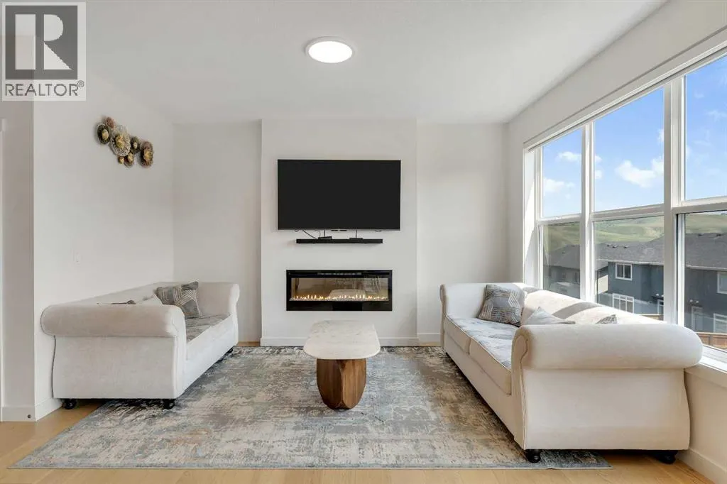 Welcome to this stunning, newly built 2-storey home (2024) in the highly desirable community of Precedence, where breathtaking mountain views and exceptional craftsmanship come together. From the moment you step inside, youâre greeted by an expansive foyer that flows seamlessly into a bright, open-concept main floor featuring 9â ceilings, engineered hardwood flooring, and elegant tile throughout.Designed with versatility in mind, the main level offers a full bedroom and bathroomâperfect for guests, extended family, or multigenerational living. The chef-inspired kitchen is the heart of the home, showcasing sleek quartz countertops, a large central island with breakfast bar, gas range with custom hood fan, built-in microwave, and a convenient walk-through pantry for added storage and functionality.The adjacent living room is filled with natural light and anchored by a modern electric fireplace, creating a warm and inviting space while framing spectacular mountain views. The dining area flows effortlessly from the living room and opens onto the rear deck through patio doorsâideal for entertaining or enjoying peaceful outdoor moments.Upstairs, a cozy bonus room provides the perfect space for relaxation or a home media area, along with a full 4-piece bathroom and three spacious bedrooms. The primary suite is a true retreat, offering panoramic views, a luxurious 5-piece ensuite with dual vanities, a standalone soaker tub, a glass-enclosed tiled shower, and a walk-in closet with custom built-in shelving.The unfinished walk-out basement presents endless opportunities to create a space tailored to your lifestyleâwhether itâs a home gym, additional living space, or entertainment area. Ideally located near scenic walking trails, a dog park along the Bow River, and just minutes from Spray Lakes Recreation Centre, this home is perfectly suited for active families and outdoor enthusiasts alike.Combining modern luxury, thoughtful design, and an unbeatable location, this exceptional home is one you wonât want to miss. (id:27476)