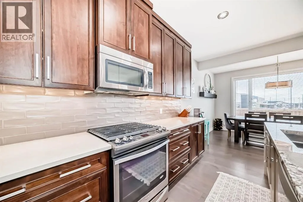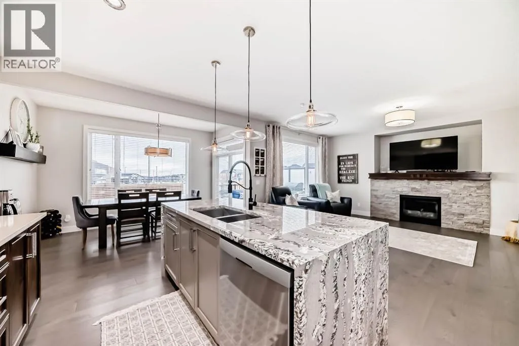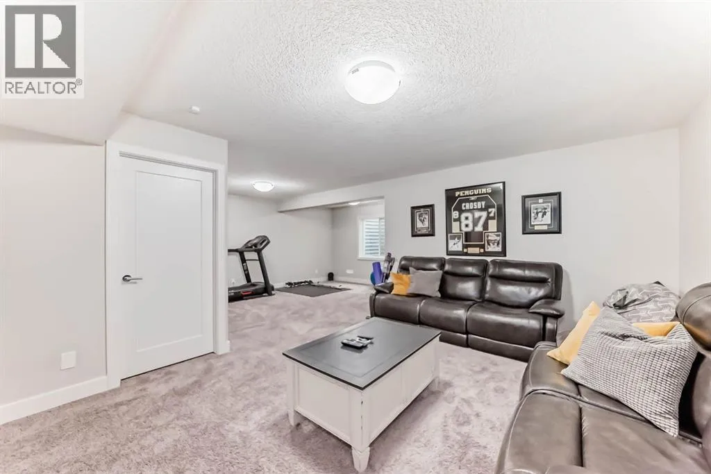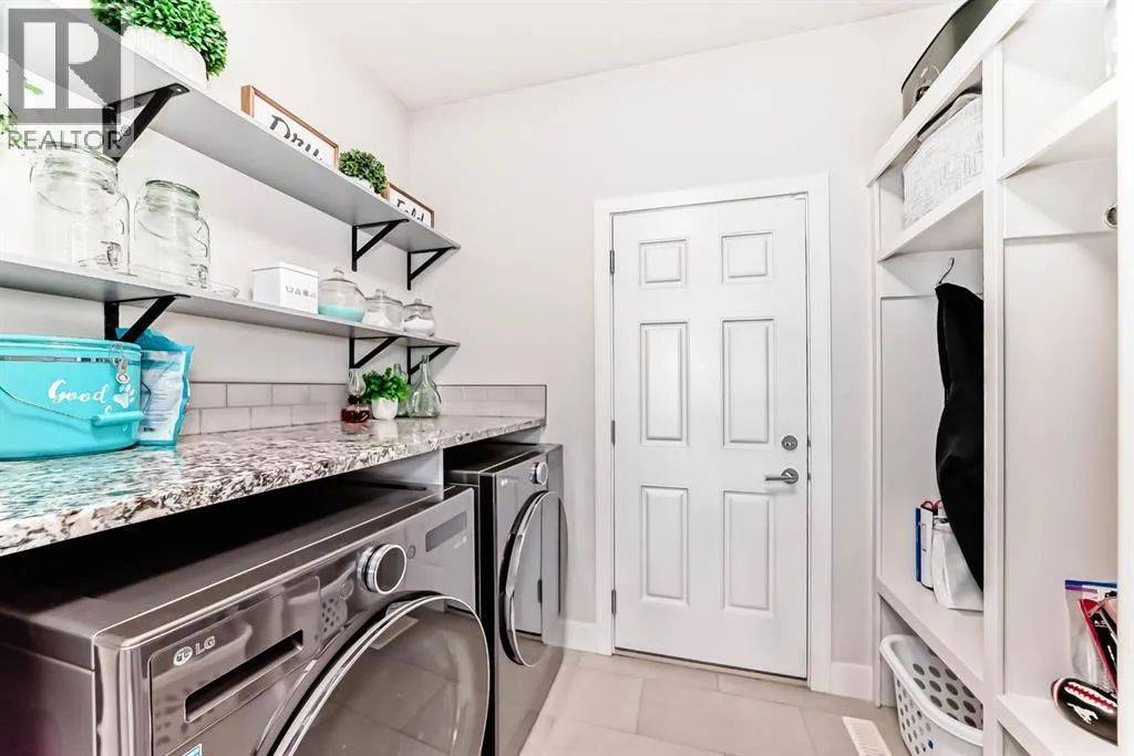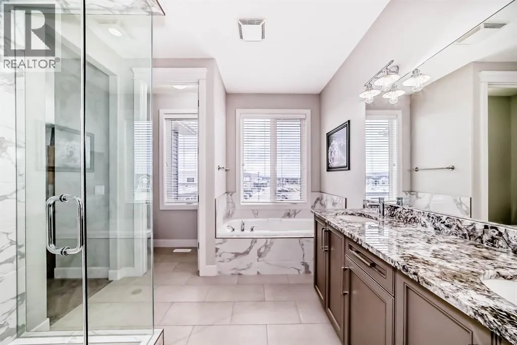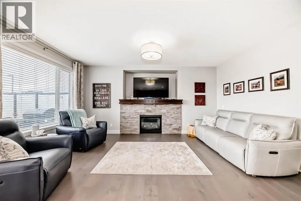 **This home is a true 10/10âpride of ownership is evident throughout!**Originally a Janssen Showhome and still with the original owners, this impeccably maintained property has it all! Step into the spacious foyer and immediately notice the soaring 9-foot ceilings and impressive 8-foot doors on both the main and upper levels. Rich hardwood flooring flows seamlessly into the open-concept living and kitchen areas. The kitchen features custom wood cabinetry with under-cabinet lighting, a brand-new stainless steel appliance package including a gas stove, and a stunning granite waterfall island. The large dining nook leads out to a beautifully landscaped backyard. Enjoy outdoor living with a new composite deck, privacy fencing, a stamped concrete patio, and a hot tubâperfect for entertaining or relaxing. A 6-foot wooden fence provides exceptional privacy all around. Back inside, the walk-through pantry conveniently connects to the oversized, heated garage, which offers ample storage options. Upstairs, the central bonus roomâwith peak-a-boo mountain viewsâcreates a great separation between two spacious front bedrooms, a 4-piece bathroom, a 3rd bedroom currently used as a home office, and the impressive primary retreat at the rear. The luxurious 5-piece ensuite includes a glass-enclosed, heated shower and a walk-in closet outfitted with custom built-ins.The fully finished lower level offers a 5th bedroom, another full 4-piece bath, and a spacious family room with additional flex spaceâperfect for a home gym, media room, or play area.Additional upgrades and features include: Gemstone exterior lighting, Central A/C, Full irrigation system (front & back), Extended driveway, Custom Hunter Douglas blinds throughoutThis home is move-in ready with nothing left to doâjust unpack and enjoy! (id:27476)