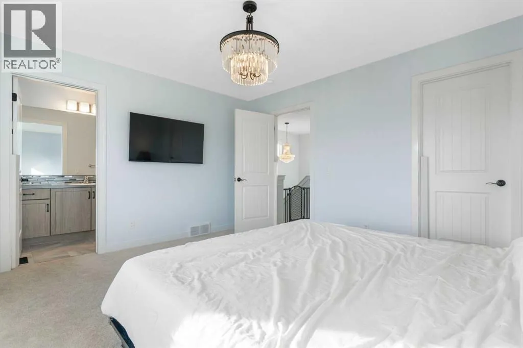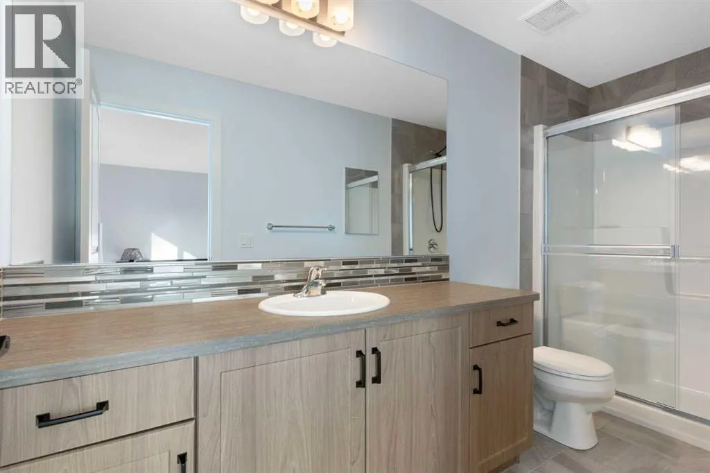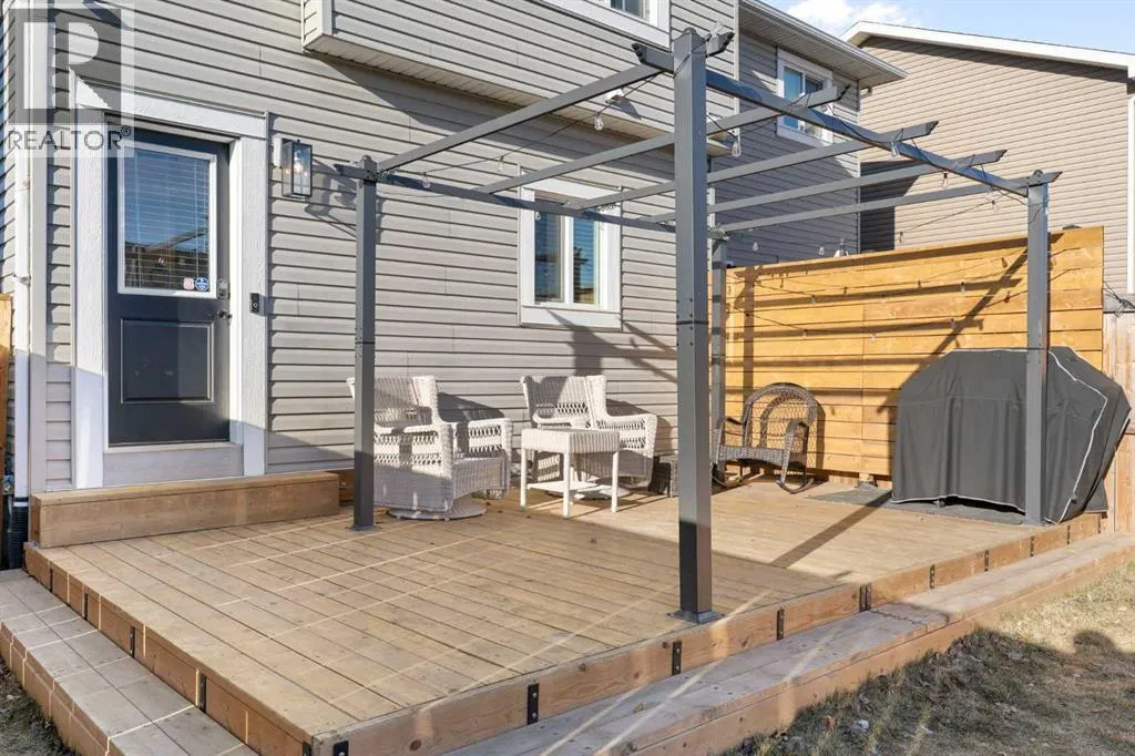 Welcome to Heartland, a friendly community on the west side of Cochrane known for its walkable streets, established pathways, parks, green spaces and a new off-leash dog park! Its location makes getting out of town quick and easy, with a short 15-minute drive to Ghost Lake and just 50 minutes to Canmore for weekend adventures. This 4 bedroom 3.5 bath home has over 2000 sq ft of developed living space that has been well cared for and recently updated with luxury porcelain tile on the main floor, new carpets upstairs with top of the line underlayment, and the entire home has been recently painted. The main level is open and bright with extra recessed lighting added, crown molding and a rear kitchen with quartz countertops with a breakfast bar, a corner pantry and a large under mount sink looking out to the spacious backyard. Upstairs features the primary bedroom with 3 piece ensuite and walk in closet, two additional well-sized bedrooms, a full 4-piece bathroom with dual sinks, and convenient upstairs laundry. Downstairs youâll find a large recreation area, a beautiful 4-piece bathroom, and a spacious bedroom, making it perfect for extended family, visitors, or simply extra room to spread out. The home also has air conditioning to keep the whole family comfortable in the summer months.The east-facing backyard is a private retreat, thoughtfully set up for both relaxing and entertaining. Enjoy the 12â x 22â floating deck tucked behind a privacy wall and covered by a retractable pergola, complete with a gas line for your BBQ or a patio heater. The rest of the yard is fully fenced, landscaped with soft, low-maintenance grass, and a wide pathway leading to the oversized 20â x 22â detached garage . Most attached garages fall short in size with the width being 17-18'. The garage has been customized with impressive storage solutions including rafters, pegboard, shelving, overhead I-beams with extensive bin storage, and tire racks. Enjoy the sunset in the evenings on the 8 'x9' deck at the front of the house, a short pathway connecting you to the boulevard, perfect for a relaxing spot in the evenings. A truly turn-key home that works for a wide range of lifestyles Daily conveniences of a daycare, mexican restaurant, a pharmacy, Tim Hortons and a gas station are just a 2 min walk, plus a future commercial area with a new grocery store coming within the community just a 4 min walk , future school site 5 min walk away, 2 playgrounds within a 6 min walk and access to the Bow River pathway system only a 15 min walk away round out the community. Highway 1A is a mere minute away giving you quick access to Cochrane or to head west to the mountains. With the new interchange completed commuting into downtown Calgary can take as little as 35 minutes, with access to Stoney Trail in only 20 minutes. (id:27476)