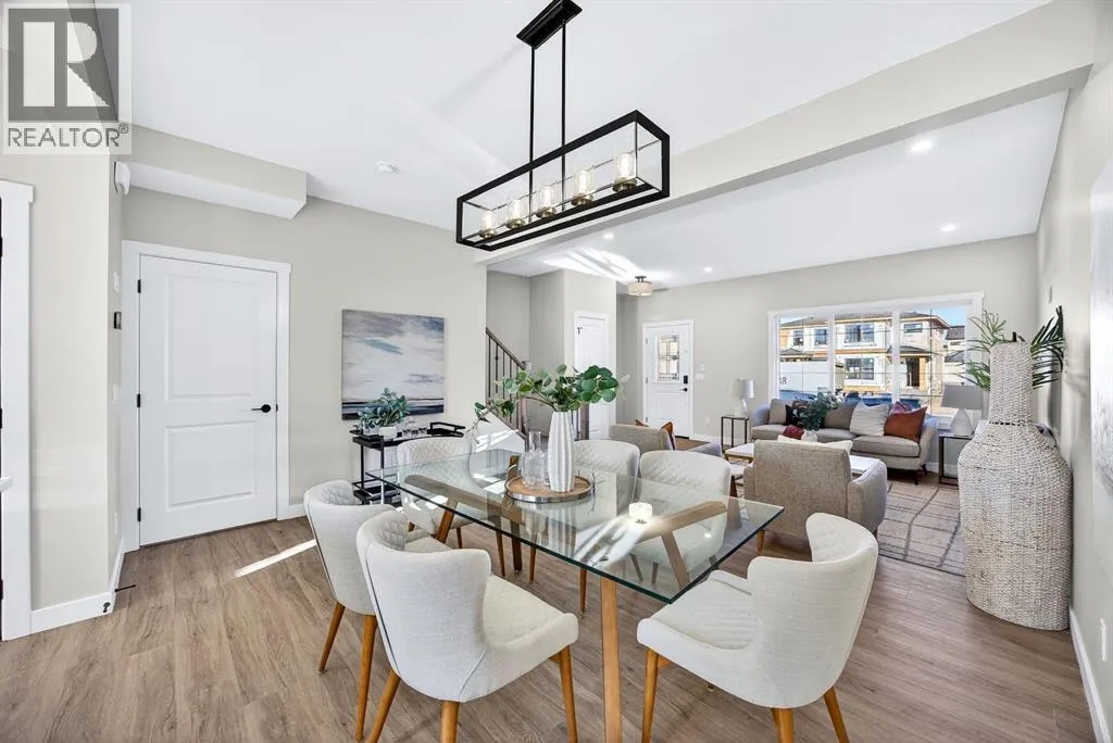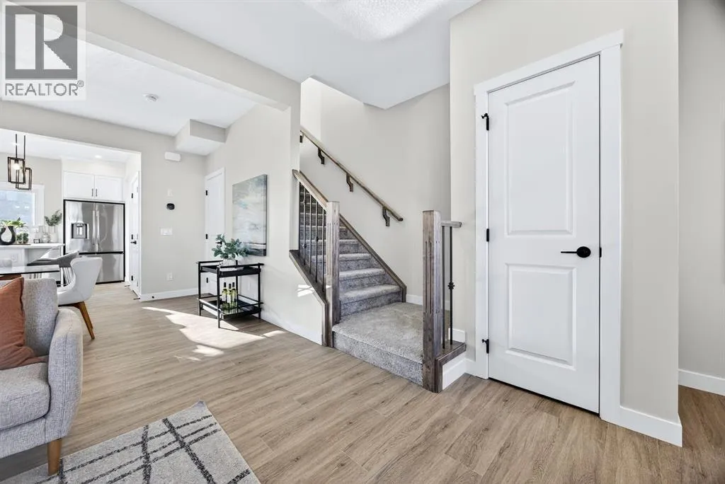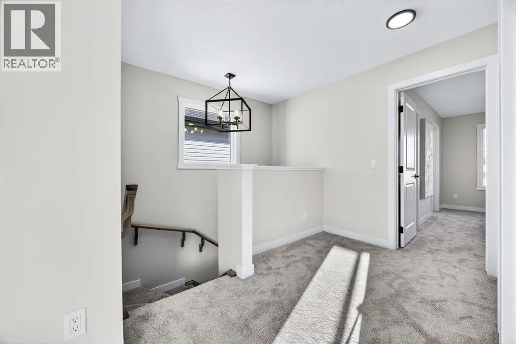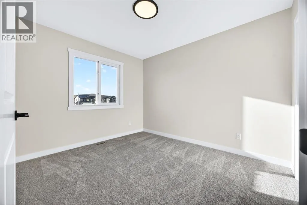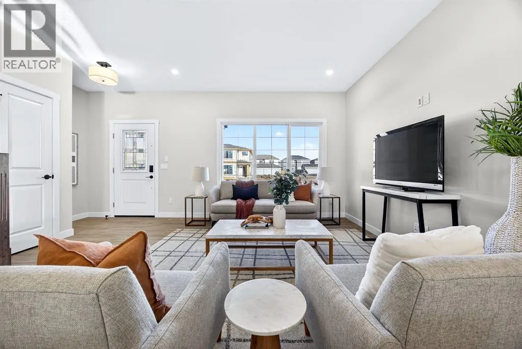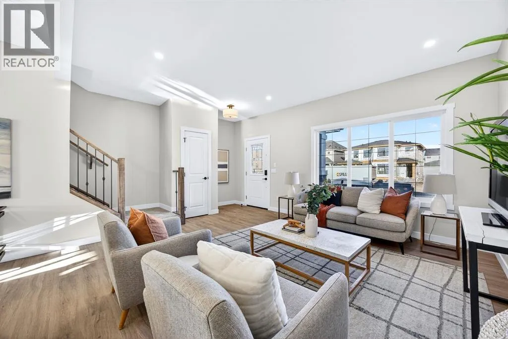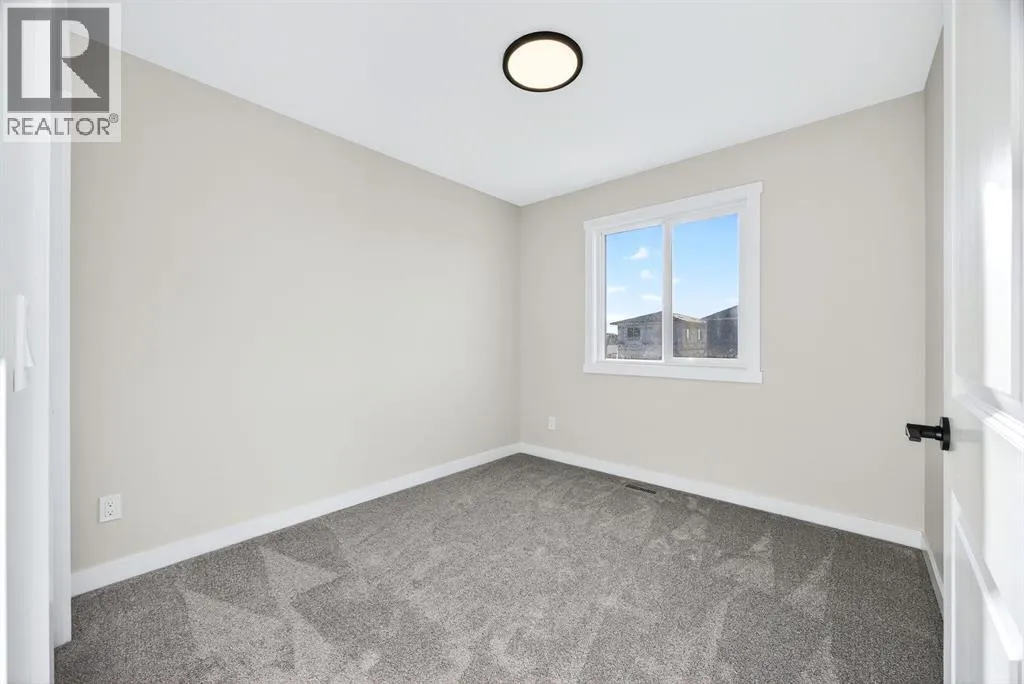 Welcome to this stunning, brand-new Genesis Builders duplex. The "Oscar" offers modern design, functional living, and exceptional future potential with basement suite rough-ins "legal suite subject to approval and permitting by the city/municipality", all complemented by a warm, inviting colour palette that creates a welcoming atmosphere throughout the home. Featuring 3 bedrooms and 2.5 bathrooms, this home is thoughtfully crafted and offers over 1400 sq ft. The main floor showcases a bright, sun-filled floorplan with 9' ceilings and a seamless open-concept layout, connecting the spacious living room, central dining area, and stylish kitchen. The kitchen is beautifully appointed with quartz countertops, two-toned cabinetry, a large central island, and a sleek stainless steel appliance package, complete with a gas line to the range. A convenient powder room completes the main level. Upstairs, the primary suite is a private retreat featuring a generous walk-in closet and a spa-inspired ensuite with his-and-hers sinks and an oversized shower. Two additional well-sized bedrooms, a full bathroom, and convenient upper-floor laundry complete the second level. The unfinished basement offers incredible flexibility with 9' ceilings, a separate SIDE ENTRANCE, and BASEMENT SUITE ROUGH INs, making it ideal for additional living space or future income potential. Outside, the backyard is a blank canvas, ready for your personal touch and offering the opportunity to build your dream garage. Located in the vibrant and family-friendly community of Fireside, this home offers the perfect balance of small-town charm and modern convenience. Fireside is known for its extensive pathway system, parks, playgrounds, and green spaces, ideal for walking, biking, and outdoor enjoyment. Residents love the easy access to schools, shops, restaurants, and everyday amenities, all just minutes away. With quick access to Highway 22 and Highway 1, commuting to Calgary or heading west to the mountains is effortless. *Taxes have not been assessed. Photos are representative of the same model. This property's colour palette is included in the pictures. RMS has been applied to the builder's construction drawings. (id:27476)