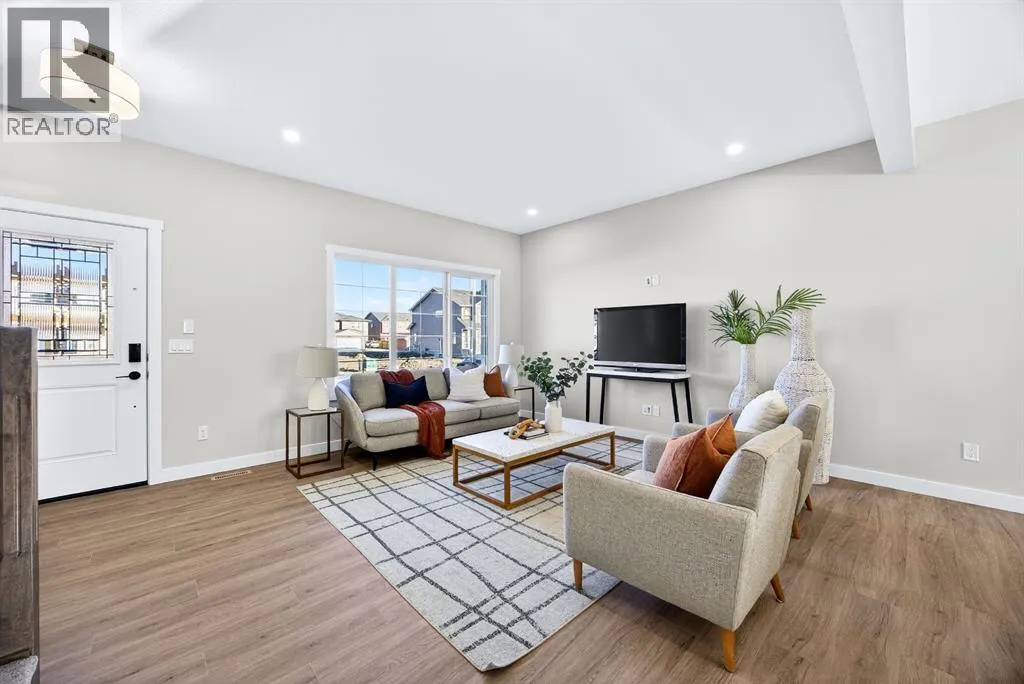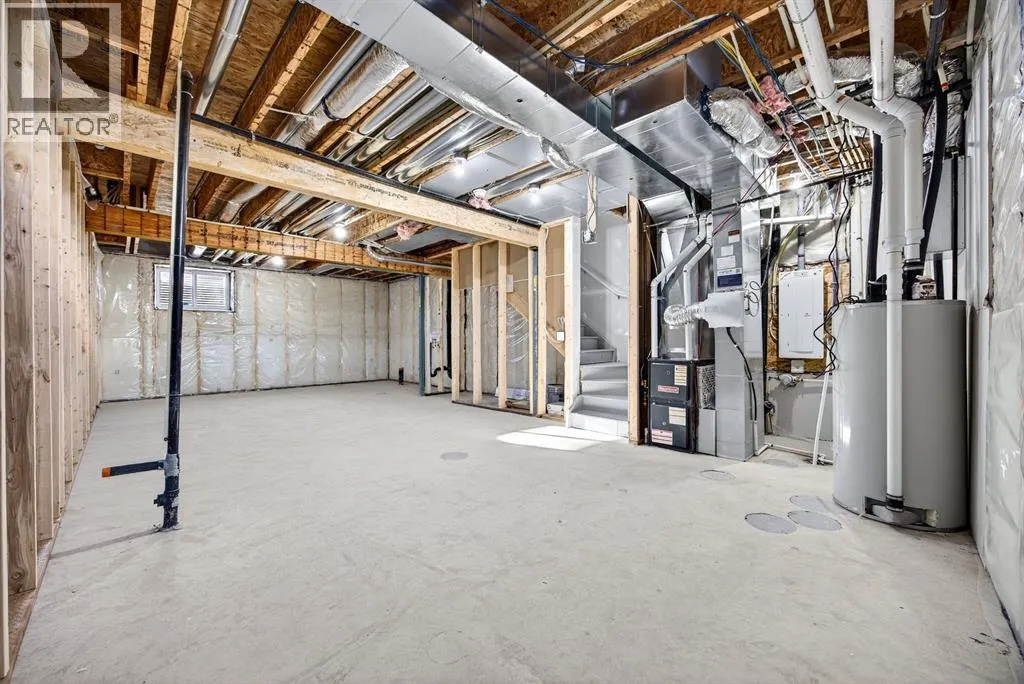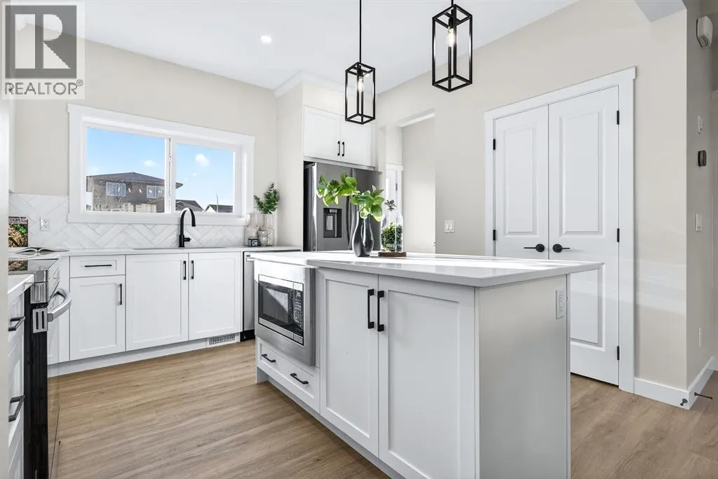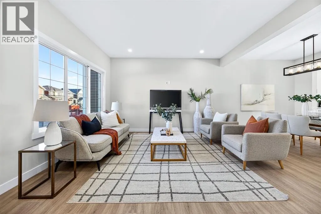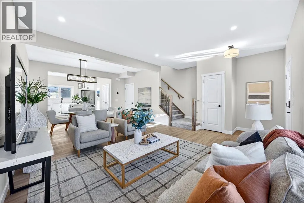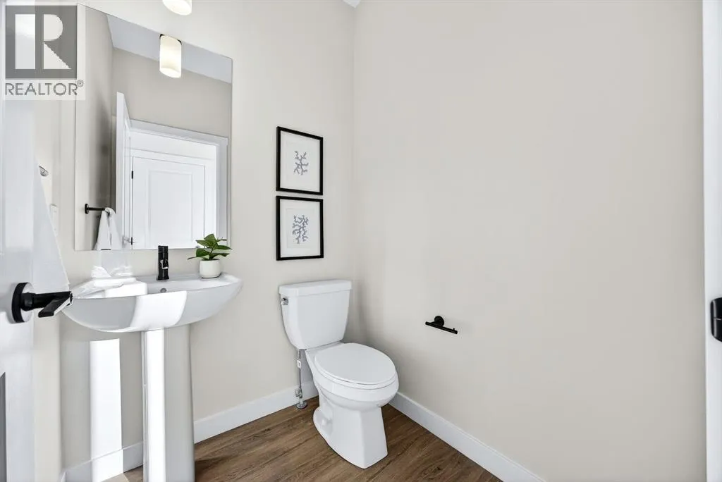 Welcome to this stunning, brand-new Genesis Builders duplex. The "Oscar" offers modern design, functional living, and exceptional future potential with basement suite rough-ins "legal suite subject to approval and permitting by the city/municipality", all complemented by a warm, inviting colour palette that creates a welcoming atmosphere throughout the home. Featuring 3 bedrooms and 2.5 bathrooms, this home is thoughtfully crafted and offers over 1400 sq ft. The main floor showcases a bright, sun-filled floorplan with 9' ceilings and a seamless open-concept layout, connecting the spacious living room, central dining area, and stylish kitchen. The kitchen is beautifully appointed with quartz countertops, two-toned cabinetry, a large central island, and a sleek stainless steel appliance package, complete with a gas line to the range. A convenient powder room completes the main level. Upstairs, the primary suite is a private retreat featuring a generous walk-in closet and a spa-inspired ensuite with his-and-hers sinks and an oversized shower. Two additional well-sized bedrooms, a full bathroom, and convenient upper-floor laundry complete the second level. The unfinished basement offers incredible flexibility with 9' ceilings, a separate SIDE ENTRANCE, and BASEMENT SUITE ROUGH INs, making it ideal for additional living space or future income potential. Outside, the backyard is a blank canvas, ready for your personal touch and offering the opportunity to build your dream garage. Located in the vibrant and family-friendly community of Fireside, this home offers the perfect balance of small-town charm and modern convenience. Fireside is known for its extensive pathway system, parks, playgrounds, and green spaces, ideal for walking, biking, and outdoor enjoyment. Residents love the easy access to schools, shops, restaurants, and everyday amenities, all just minutes away. With quick access to Highway 22 and Highway 1, commuting to Calgary or heading west to the mountains is effortless. *Taxes have not been assessed. Photos are representative of the same model. This property's colour palette is included in the pictures. RMS has been applied to the builder's construction drawings. (id:27476)
