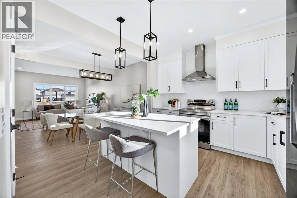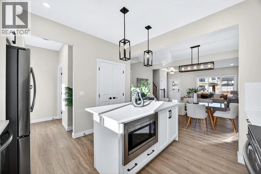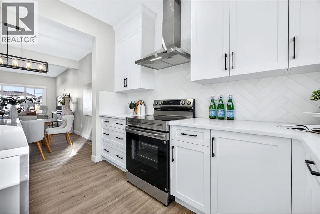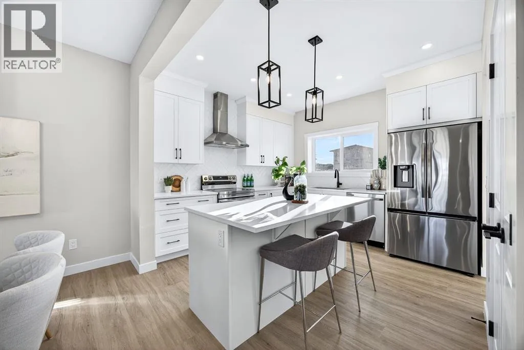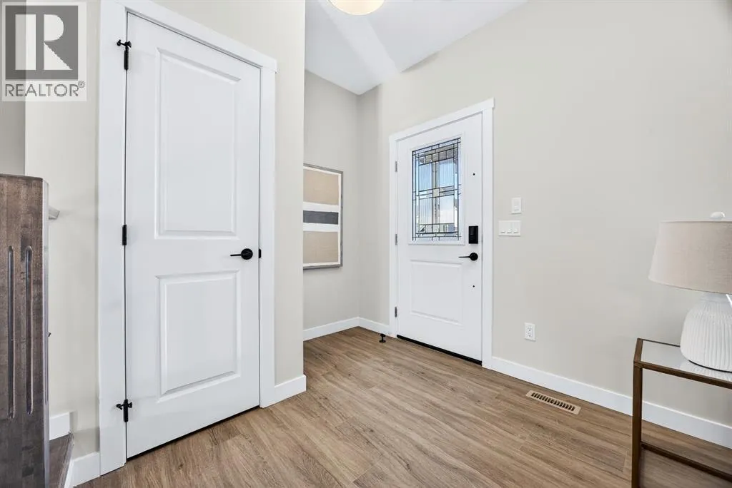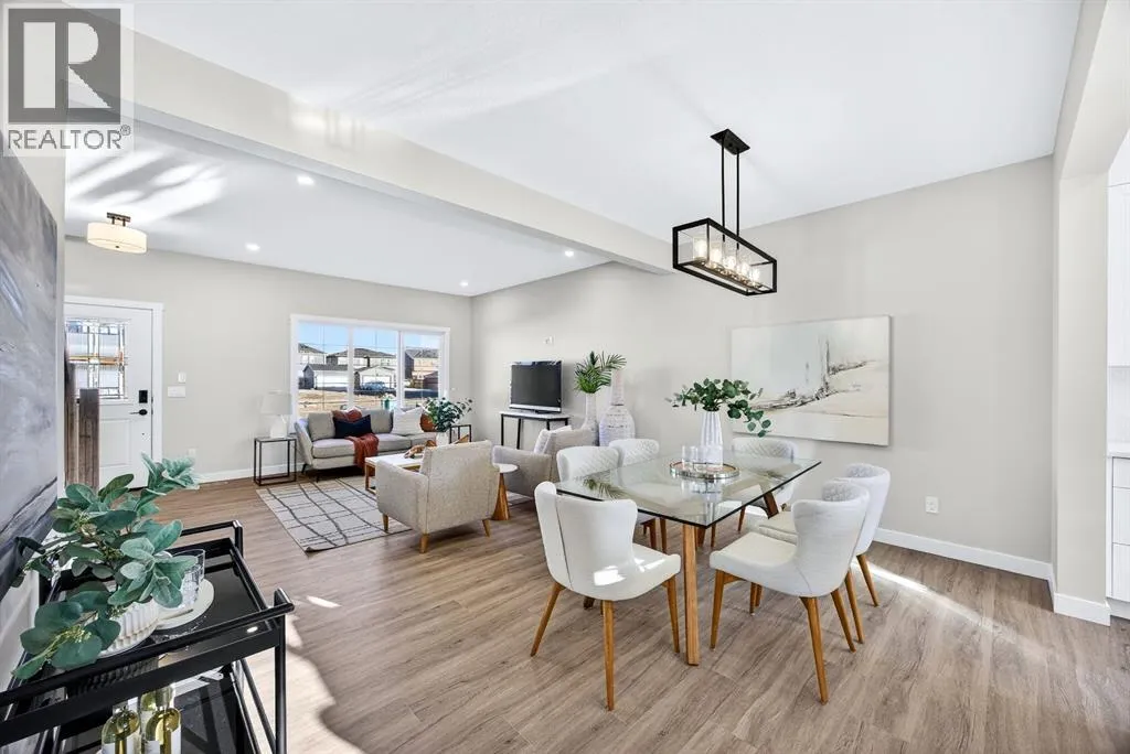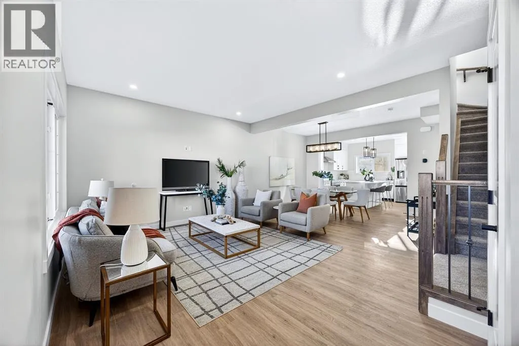 Welcome to this stunning, brand-new Genesis Builders duplex. The "Oscar" offers modern design, functional living, and exceptional future potential with basement suite rough-ins "legal suite subject to approval and permitting by the city/municipality", all complemented by a warm, inviting colour palette that creates a welcoming atmosphere throughout the home. Featuring 3 bedrooms and 2.5 bathrooms, this home is thoughtfully crafted and offers over 1400 sq ft. The main floor showcases a bright, sun-filled floorplan with 9' ceilings and a seamless open-concept layout, connecting the spacious living room, central dining area, and stylish kitchen. The kitchen is beautifully appointed with quartz countertops, two-toned cabinetry, a large central island, and a sleek stainless steel appliance package, complete with a gas line to the range. A convenient powder room completes the main level. Upstairs, the primary suite is a private retreat featuring a generous walk-in closet and a spa-inspired ensuite with his-and-hers sinks and an oversized shower. Two additional well-sized bedrooms, a full bathroom, and convenient upper-floor laundry complete the second level. The unfinished basement offers incredible flexibility with 9' ceilings, a separate SIDE ENTRANCE, and BASEMENT SUITE ROUGH INs, making it ideal for additional living space or future income potential. Outside, the backyard is a blank canvas, ready for your personal touch and offering the opportunity to build your dream garage. Located in the vibrant and family-friendly community of Fireside, this home offers the perfect balance of small-town charm and modern convenience. Fireside is known for its extensive pathway system, parks, playgrounds, and green spaces, ideal for walking, biking, and outdoor enjoyment. Residents love the easy access to schools, shops, restaurants, and everyday amenities, all just minutes away. With quick access to Highway 22 and Highway 1, commuting to Calgary or heading west to the mountains is effortless. *Taxes have not been assessed. Photos are representative of the same model. This property's colour palette is included in the pictures. RMS has been applied to the builder's construction drawings. (id:27476)