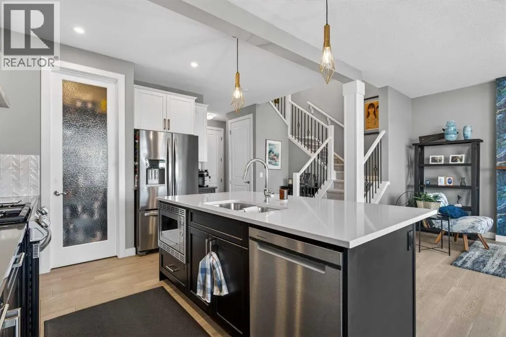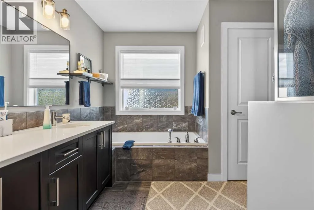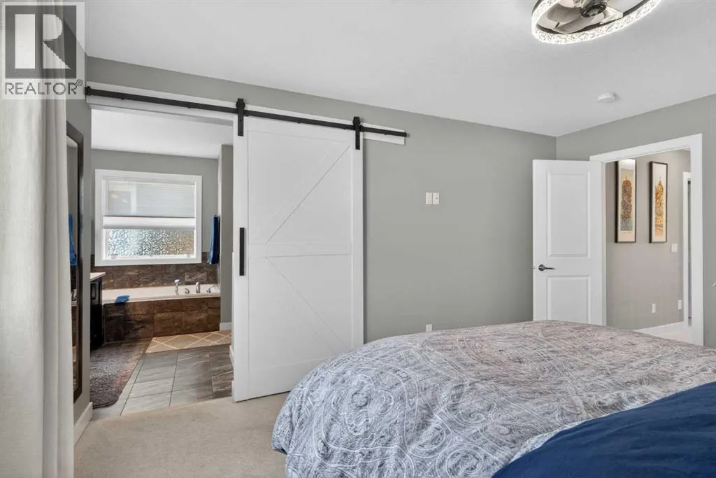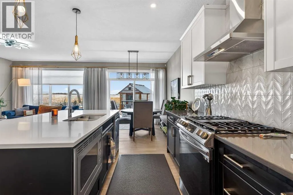 Backing onto a greenbelt & future school site is where youâll find this truly wonderful home in Cochraneâs popular Sunset Ridge neighbourhood, tucked away on this quiet crescent within walking distance to community playgrounds & parks. Original owners of this Douglas Homesâ two storey, which enjoys engineered hardwood floors & solar panels, total of 3 bedrooms + bonus room, stylish designer kitchen with quartz counters & beautifully landscaped backyard with winding gardens & greenhouse. Bathed in warm natural light, youâll love the bright & inviting feel of the main floor with its 9ft ceilings & expanse of windows, gracious living room with sleek contemporary fireplace, open concept dining room & outstanding custom kitchen with walk-in pantry, large centre island & stainless steel appliances which includes a Samsung dual-fuel gas range/electric convection oven. Upstairs there are 3 lovely bedrooms & 2 full bathroomsâ¦highlighted by the ownerâs retreat with great-sized walk-in closet, views of the greenbelt & soothing soaker tub ensuite with barn door, quartz-topped double vanities & separate shower. Away from the bedrooms is the terrific air-conditioned bonus room with vaulted ceilingsâ¦the perfect space to unwind or relax with the family. The unspoiled lower level â with separate side entrance, has roughed-in plumbing for another bathroom & large windows, & offers fantastic potential for future living space. Additional features include the 2nd floor laundry room with Whirlpool washer & dryer, built-in bench in the foyer, roughed-in for radon detector, finished garage with wall-slats, Tesla solar panel system with battery back-up & the piece-de-resistance is the dream backyard oasis complete with deck & stone patio, ornamental pond & fountain, low-maintenance landscaping & greenhouseâ¦which would also make a great place for your hot tub! Leisurely stroll to a playground & the tranquil 6 acre freshwater pond surrounded by winding trails & gazebos, just minutes to the K -8 RanchView School & St Timothy Junior/Senior High, shopping at The Trading Post & quick easy access to downtown Cochrane. (id:27476)
