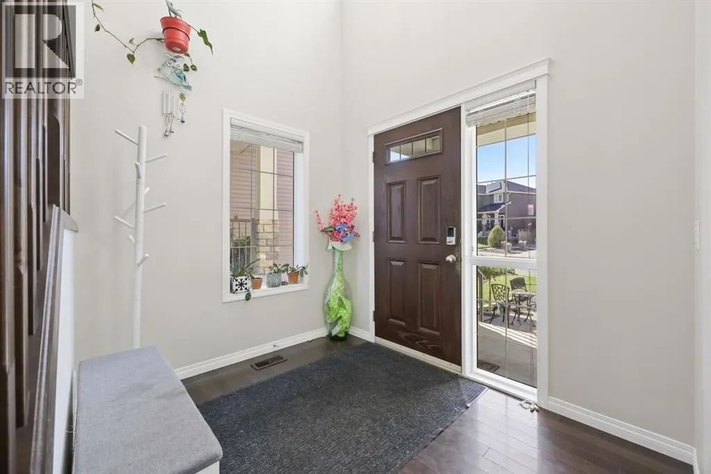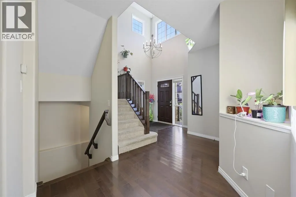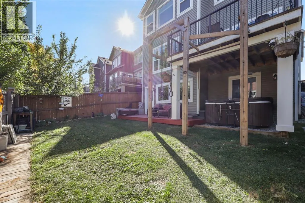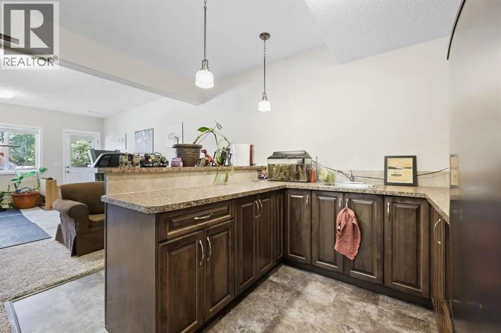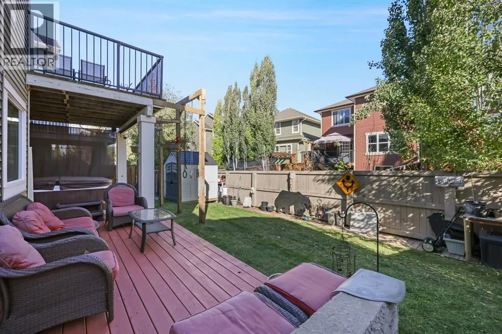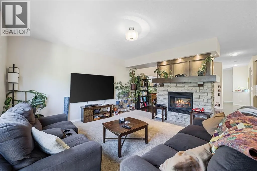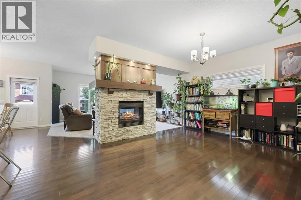 This executive two story WALK OUT home has 3 bedrooms, laundry, and a family room on the upper level with large windows to let in lots of natural light. The main floor features an open concept layout with a kitchen hosting granite countertops, a walk though pantry a spacious living room and a formal dining room, all enhanced by a double sided gas fireplace framed in exquisite stonework. A deck adjacent to the kitchen suitable for an outdoor patio, includes a gas BBQ hook up. The kitchen is equipped with a gas stove, refrigerator featuring a water/ice dispenser with an illuminated front door, and a newly installed dishwasher. The basement contains a private "mother in law" living area with its own laundry facilities, private entrance and privacy door from upstairs. The residence is warmed with forced air heating and cools you with AC! It also offers an attached heated double car garage with spacious back entry coat area and a significant storage room in the basement. The lower patio brings some privacy space, and a cozy sitting area Nearby walking path lead to Jumping Pound Creek, and paths to downtown. (id:27476)