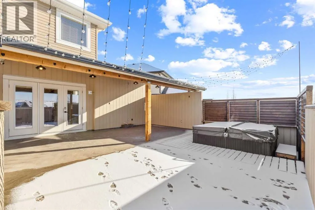 Welcome to 110 Heritage Place, a truly one-of-a-kind, custom-built Assured Home set on an expansive 8,600 sq. ft. lot in a quiet cul-de-sac. With breathtaking mountain views, a private yard, RV storage, and a massive heated oversized attached double garage, this thoughtfully designed home offers exceptional features for every lifestyle.Step inside to a spacious ceramic tile foyer where pride of ownership is immediately evident. Just off the entry is a convenient 2-piece powder room and direct access to the heated oversized double garage, complete with built-in cabinetry, workbenches, and extensive storage â a dream space for car enthusiasts and lift-ready.And just when you think this home couldnât get any more thoughtful⦠meet the dog door ??. Located beside the garage entrance, this premium smart dog door is activated by your dogâs collar and leads to a covered ramp and fully fenced dog run â because every family member deserves a little luxury, paws included.Continue through the walk-through pantry and into the heart of the home. The chef-inspired kitchen offers ample counter and cupboard space, a Whirlpool fridge/freezer combo, and a Samsung induction oven, perfect for everyday living and entertaining. The open dining area leads to a spectacular 700 sq. ft. deck â an entertainerâs paradise complete with a built-in hot tub and wiring for sound and heat for year-round enjoyment. The inviting living room is anchored by a cozy gas fireplace.Upstairs, brand-new carpet leads to a bright open hallway and elegant French doors opening into the primary suite â a true hotel-style retreat featuring a custom built-in king-size bed with integrated lighting and breathtaking mountain views. The spa-inspired ensuite includes a corner soaker tub, granite countertops, and a double vanity. Two generously sized bedrooms share a 3-piece Jack & Jill bathroom, along with a dedicated laundry room and a massive bonus room overlooking the cul-de-sac with soaring ceilings and an abu ndance of natural light.The walk-out basement offers excellent flexibility with a functional living area, microwave, stove, fridge & freezer, in-suite washer and dryer, and a 3-piece bathroom with a soaker tub. A secondary suite would be subject to approval and permitting by the City/Municipality. Step outside to the expansive backyard with room for a large garden, outdoor living, and rare on-site RV storage.Thoughtfully designed and meticulously maintained, this is more than a home â itâs a lifestyle. (id:27476)