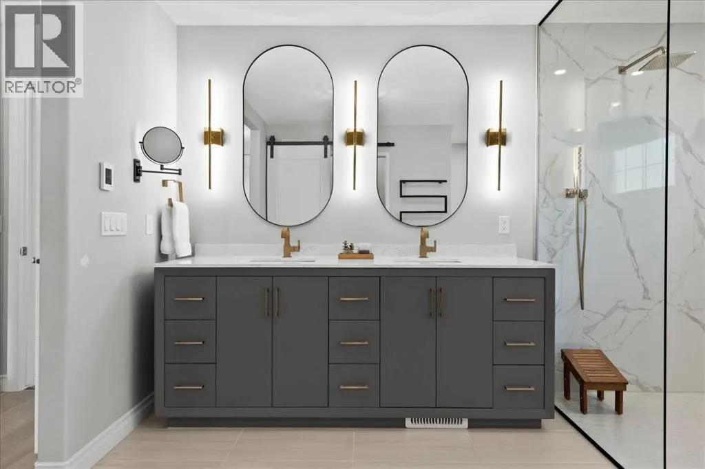 Beautiful two-storey family home in Gleneagles offering over 3,800 sq. ft. of developed living space on large fenced lot overlooking the 14th fairway. The heart of this home is the fully renovated contemporary kitchen, featuring a quartz central island, built-in cabinetry, central vac with kitchen sweep inlet, and stainless-steel appliancesâperfect for everyday living and entertaining. A stylish coffee bar with new wine fridge sits adjacent to the kitchen, while the spacious dining area is surrounded by windows overlooking the expansive yard and golf course. The inviting living area showcases an updated fireplace mantel and tile surround. The main floor is complete with a large, bright front den, hardwood flooring throughout, and a fully renovated 2-piece bath. Note the spacious back entry cupbaords and customized built-in locker cubbies.Upstairs, retreat to the breathtaking primary bedroom with gas fireplace and access to a private balconyâthe ideal place to enjoy your coffee at sunrise or take in the mountain views at sunset. The ensuite is a stunning 7 pce spa-like retreat with underfloor heating. Two additional bedrooms, a beautifully renovated 4-piece bath, over sized family/media room and convenient upper-level laundry complete this level. The fully developed lower level offers additional living space including a fourth bedroom, generous family room, work out area and a renovated 3-piece bathroomâideal for guests or growing families.Upgrades and renovations over $330,000 include complete kitchen , cabinets, a large island, updated lighting, fresh paint, stainless-steel appliances, flooring throughout (lava oak), carpeting, main-floor 2-piece bath, main floor fireplace -mantel and tile surround. Upstairs, 4-piece bathroom , primary bedroom and ensuite have been extensively upgraded, including a fully renovated 6-piece ensuite. The lower level renovations include family room and fireplace, 3-piece bathroom, mechanical and utility upgrades-furnace, re verse osmosis system, hot water tank (2023). The cedar shake roof was inspected and repaired as required (2025). Just move in and enjoy the breathtaking views, privacy of rear yard, bike/ walking paths and just minutes to town to restaurants and every amenity for your family. (id:27476)