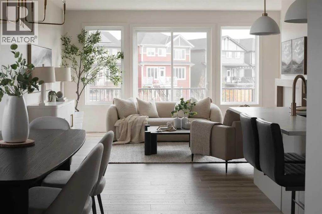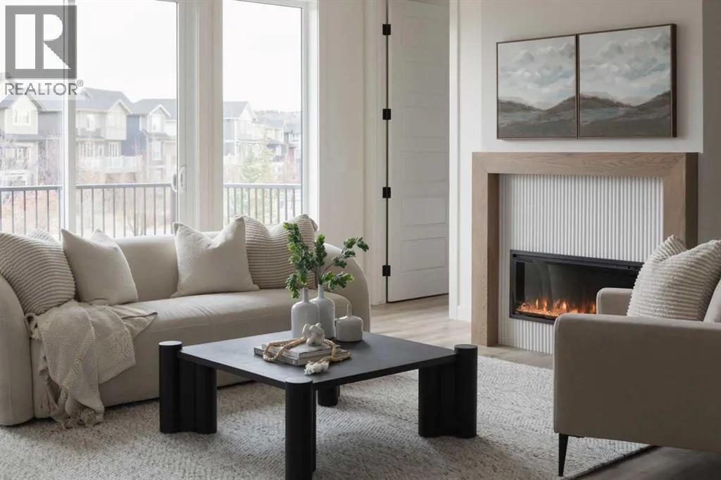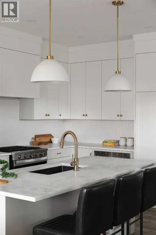 Experience the ideal mix of location, luxury, and lifestyle in this fully developed walkout bungalow in the family-friendly community of Sunset Ridge. Situated on a pie-shaped lot backing onto a green-space pathway and playground, this move-in-ready home is built by award-winning Aspen Creek Designer Homes and features the popular Ethan model. The open-concept main floor offers a beautiful kitchen with quartz countertops, large island, custom cabinetry, and stainless steel appliances, flowing into a bright living room with a cozy fireplace and access to a 17x10 deck. The primary suite is a private retreat with elegant wainscoting, soaker tub, glass shower, dual vanities, and a custom walk-in closet with direct access to the laundry room. The walkout lower level includes a spacious family/games area, wet bar, two bedrooms, 4-piece bath, and ample storage. Enjoy the east-facing, fully sodded backyard. Close to schools, parks, pathways, and minutes from downtown Cochrane and the Bow River. (id:27476)