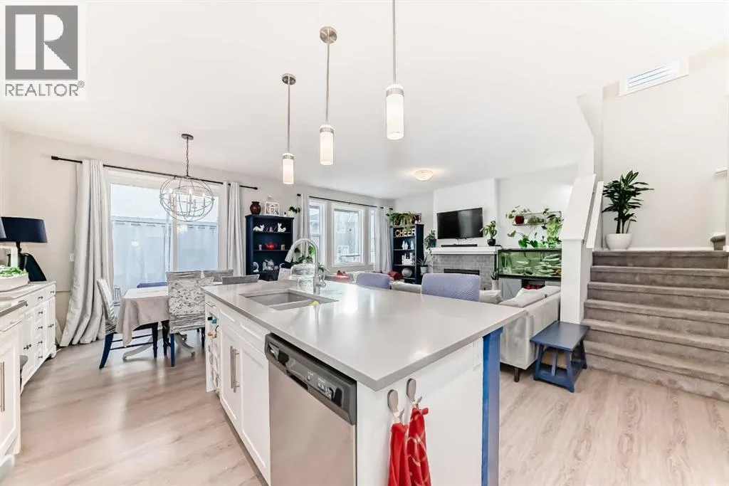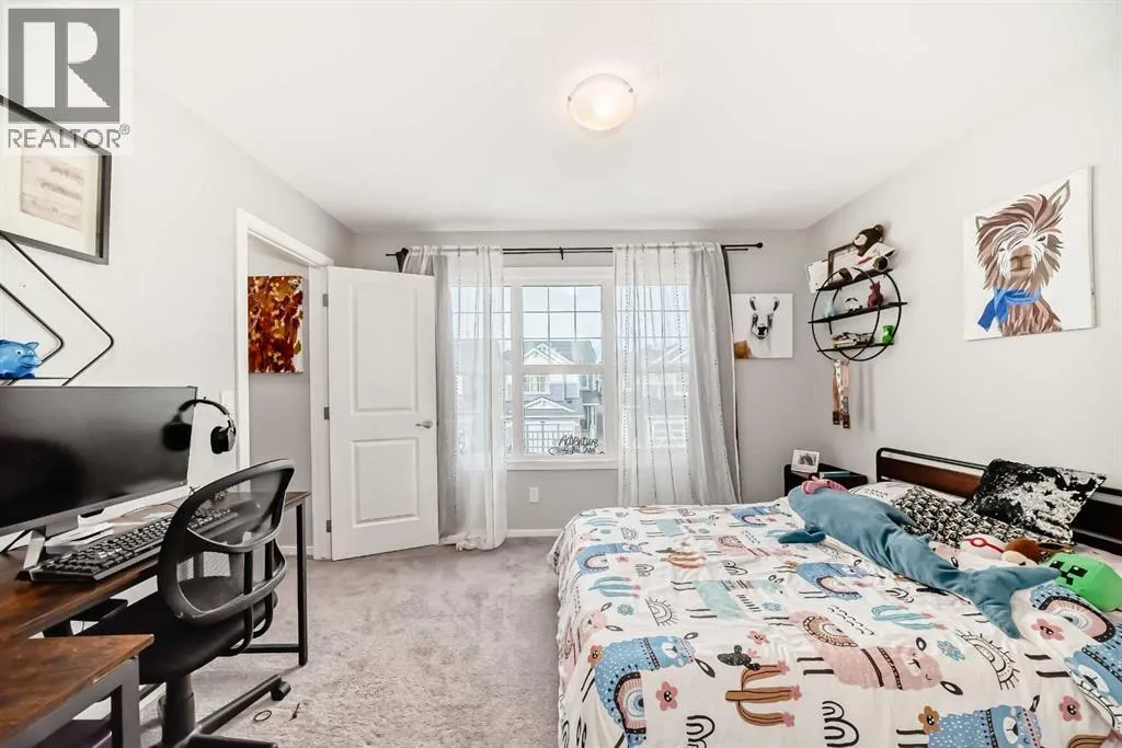 Immaculate and truly move in ready, this beautifully maintained home offers a desirable south facing backyard and is perfectly situated in the sought after community of Sunset Ridge. With 2,176 sq. ft. of thoughtfully designed living space, this modern 5 bedroom, 3.5 bathroom residence has clearly been lovingly cared for and enjoyed as a long term family home. From the moment you enter, you will appreciate the pride of ownership and attention to detail throughout. The main level features 9 foot ceilings and stylish luxury vinyl plank flooring, creating a bright and welcoming atmosphere. A spacious foyer sets the tone and leads to a dedicated home office, ideal for working from home, studying, or managing a busy household. The open concept layout is filled with natural light from expansive windows and flows seamlessly into the elegant living room, anchored by a cozy natural gas fireplace that makes this space perfect for everyday living and family gatherings. At the heart of the home is the sleek, gourmet kitchen, designed with both function and style in mind. It features stainless steel appliances, a corner pantry, grey quartz countertops, a large center island for casual meals or homework time, and modern full height white cabinetry offering ample storage. The adjacent dining area opens onto the south facing deck and patio, providing a private outdoor extension of the living space that is ideal for entertaining, playtime, or simply unwinding. The covered sunroom adds a versatile, sheltered area that can be enjoyed throughout the year. Upstairs, you will find four generously sized bedrooms, a full 4 piece bathroom, and a centrally located bonus or media room that works perfectly as a family lounge, playroom, or movie space. The primary retreat is a true escape, complete with a spacious walk in closet and a luxurious 5 piece ensuite featuring a soaker tub and separate stand up shower. The fully finished lower level, completed by the developer, adds exceptional flexib ility with a large and bright great or media room, a convenient kitchenette, a fifth bedroom, and a 5 piece bathroom, making it ideal for guests, teens, or extended family. Every level of this home reflects thoughtful planning and long term enjoyment. Located close to schools, parks, playgrounds, and all essential amenities, this is a home where families can truly settle in and grow. Well cared for, beautifully presented, and ready for its next chapter, this exceptional property is a must see. Book your private showing today, you will not be disappointed. (id:27476)