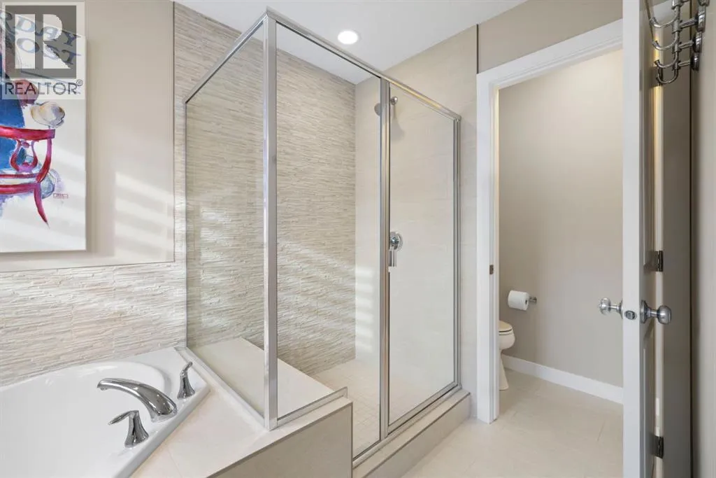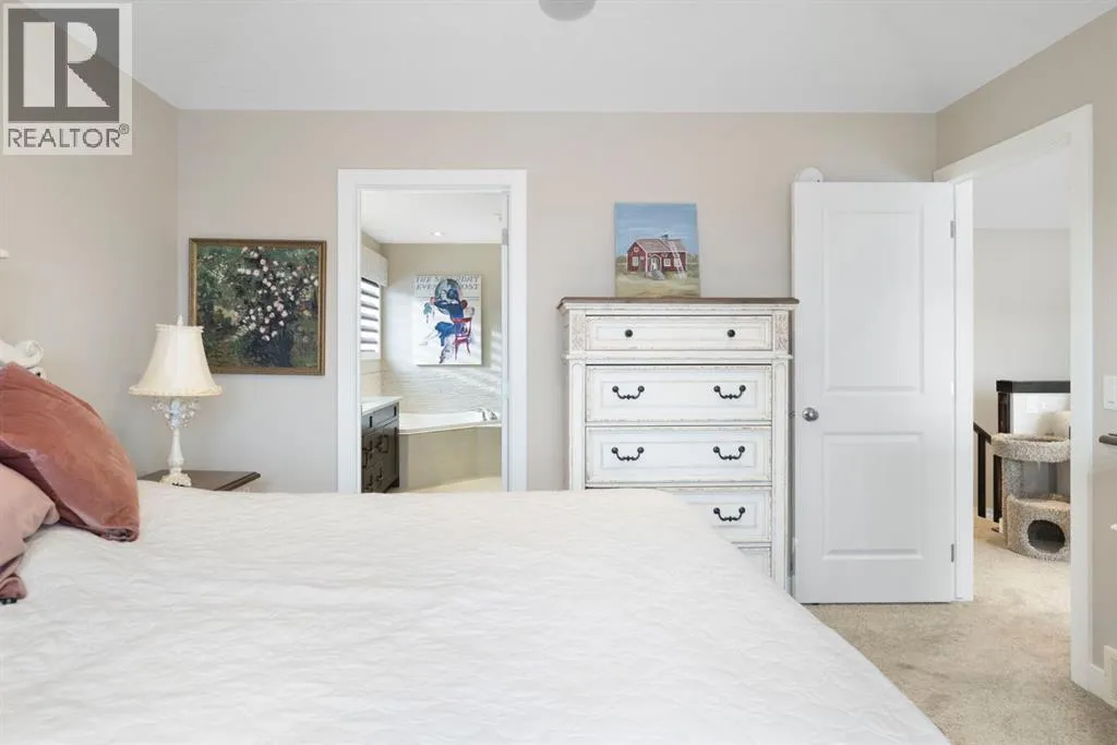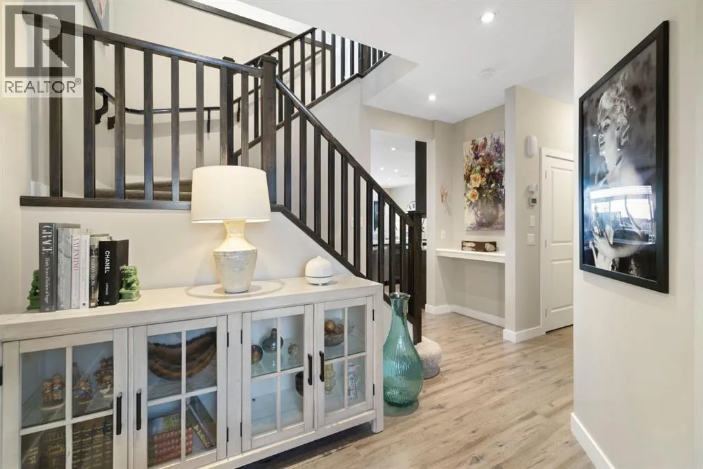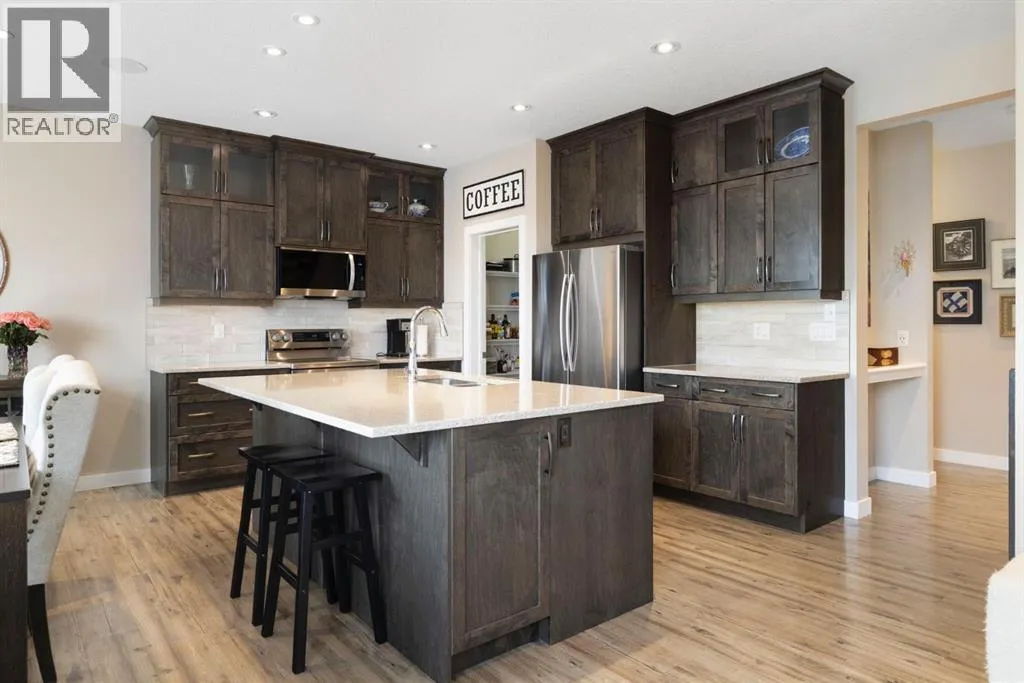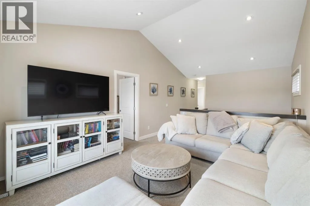 Welcome to 8 Emberside Glen! This beautifully finished two-storey former show home offers style, functionality, and an unbeatable family-friendly location backing directly onto the Holy Spirit Catholic School grounds. Stepping inside you are greeted by a spacious front entry and striking open-riser staircase that anchors the main level. The open-concept layout features durable hardwood flooring and a warm, inviting living room centered around a stone-surround gas fireplace with rich wood mantle. Some of the upgrades include a built in speaker system outfitted across the main level, upgraded tile backsplashes, and Hunter Douglas blinds adorning the windows throughout the home. The kitchen is a true standout â showcasing ceiling-height cabinetry complete with display windows, quartz countertops, stainless steel appliances, tile backsplash, and a large central island. A walk-through pantry provides exceptional storage and connects conveniently to the double attached garage Upstairs, youâll find a bright vaulted bonus room ideal for relaxing or family movie nights. The primary suite offers a walk-in closet and a well-appointed ensuite complete with dual vanity, a corner soaker tub, and separate glass shower. Two additional bedrooms each with their own walk-in closets and a full bathroom complete the upper level. The fully finished basement adds even more living space with a recreation room, an additional bedroom, office, full bathroom, and generous storage. The backyard is designed for both privacy and enjoyment, featuring a spacious upper deck with stairs leading down to a fully fenced yard with in-ground sprinkler system and private lower patio with hot tub. Backing directly onto the school means no rear neighbours and convenient access to playgrounds and green space. Close to parks, pathways, shopping, and everyday amenities â this move-in-ready home checks all the boxes for growing families. (id:27476)
