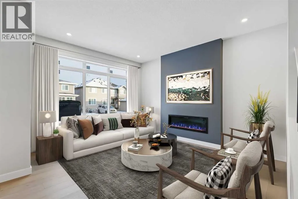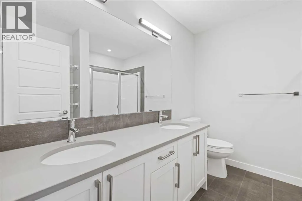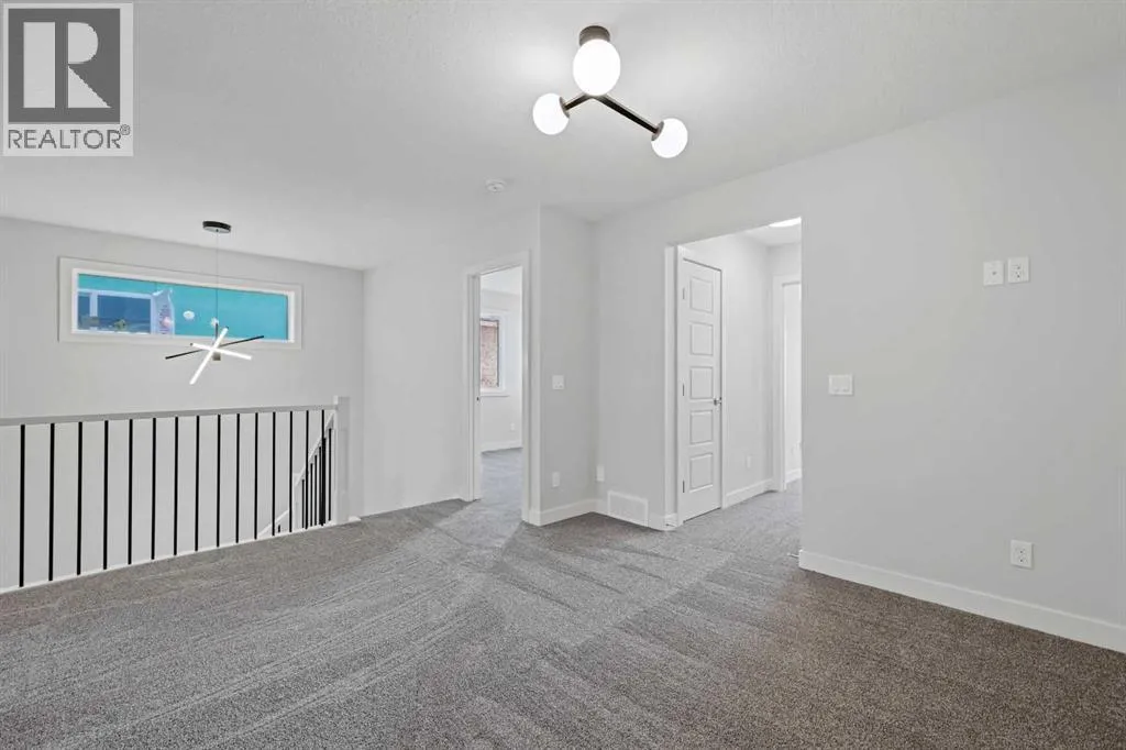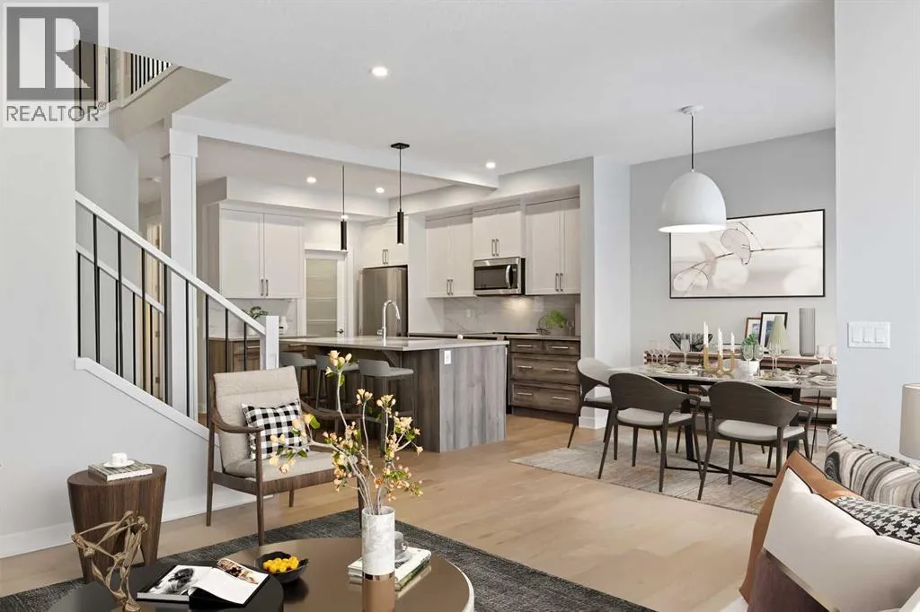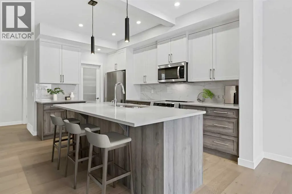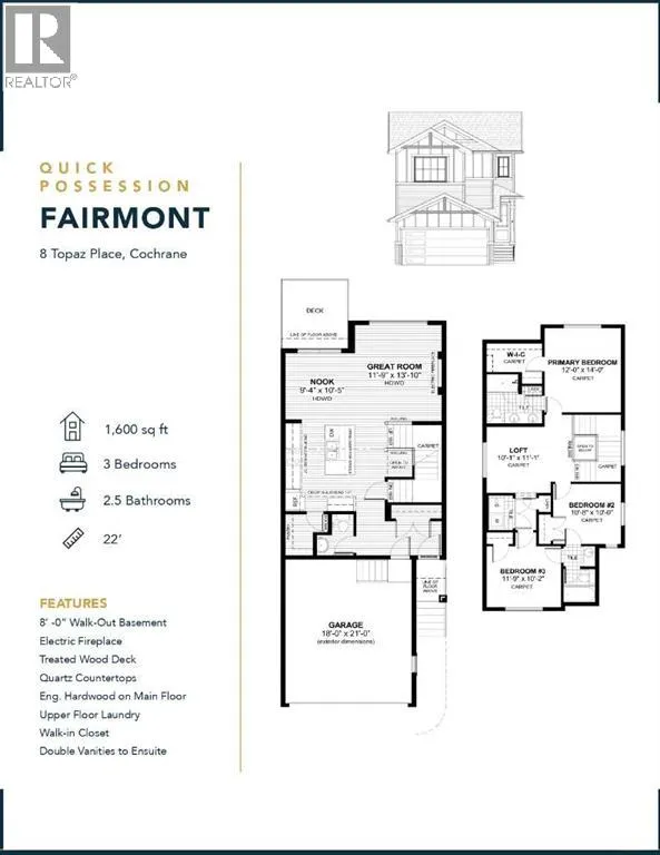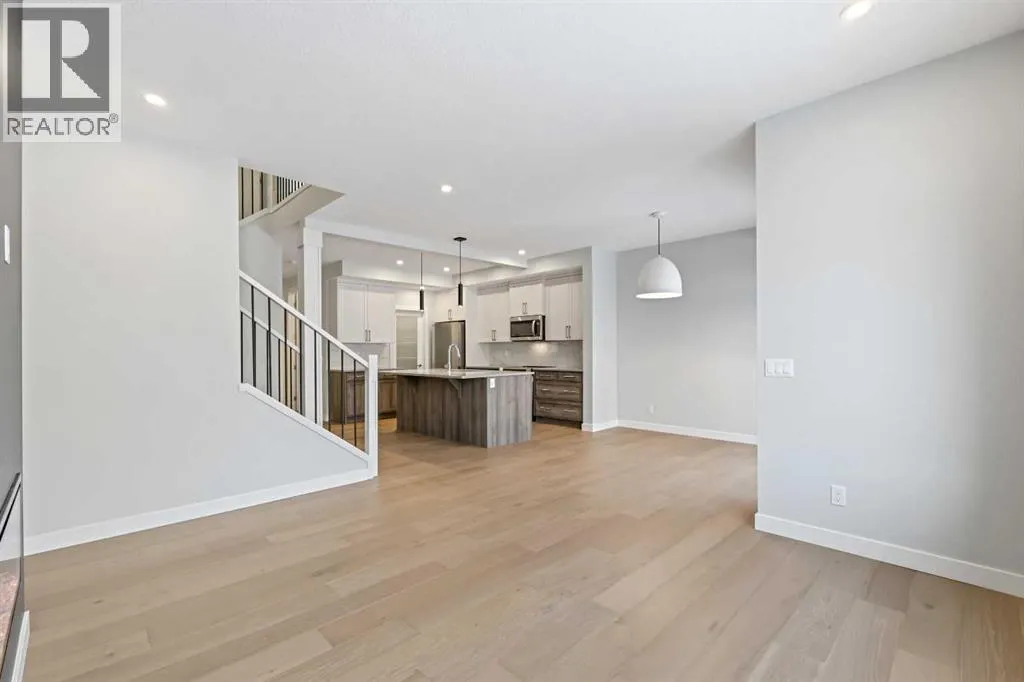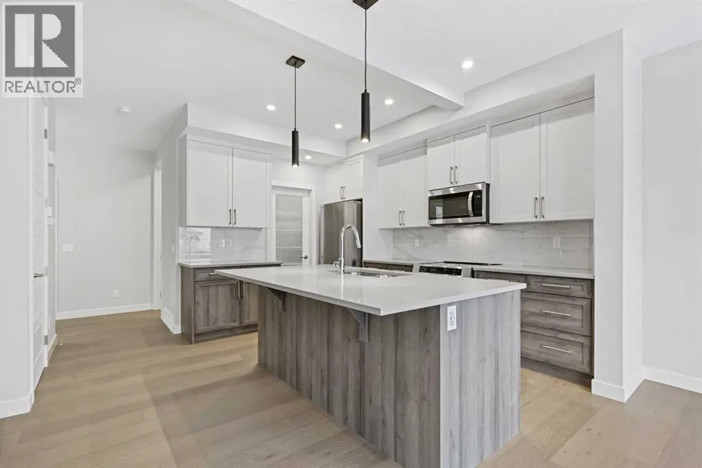 BRAND NEW HOME by Douglas Homes, Master Builder in central Greystone, short walking distance to parks, the Bow River, major shopping & interconnected pathway system. Featuring the Fairmont with a south facing back yard, walkout basement, deck off the main floor accented by built out columns on an R-MX zoned lot for POTENTIAL future lower level suite. NOTE: a secondary suite would be subject to approval and permitting by the city/municipality. Located on a quiet street, very close two Children's Play Parks & paved back lane. This gorgeous 3 bedroom, 2 & 1/2 half bath home offers 1600 sq ft of living space. Loads of upgraded features in this beautiful, open floor plan. The main floor greets you with a grand glazed 8' front door, soaring 9' ceilings, oversized windows , & 8' 0" passage doors. Distinctive Engineered Hardwood floors flow through the Foyer, Hall, Great Room, Kitchen & Nook adding a feeling of warmth & style. The Kitchen is completed with an oversized entertainment island (7'0" single level island) & breakfast bar, roomy closet pantry with 8'0" French Door , Quartz Countertops, 42" Cabinet Uppers accented drop bulkhead, Pots & Pans Drawers, soft close doors & drawers throughout, new stainless appliance package including Side by Side Fridge with Ice & Water Feature, Microwave/Hood Fan combo over the stove , Gas Range, Fridge & built-in Dishwasher. The main floor is completed with an expansive, open Great Room & Nook finished with over height windows & Napoleon "Entice" fireplace. Upstairs you'll find a generous Primary Bedroom with 4 piece Ensuite including dual Quartz vanities with undermounted sinks, oversized 5'0" x 3'0" shower, Linen cubby, & ceramic tile flooring. There is also a nicely sized walk-in closet accessed from the Primary Bedroom. The 2nd floor is completed by a spacious, centralized family Loft & 2 good size additional bedrooms with double door closets. The 2nd & 3rd bedrooms have the convenience of a Jack & Jill main bath with Quartz count ertop, undermounted sink & tile flooring. You're certain to love the convenience of the 2nd Laundry Room completed with large access doors, light & tile flooring. Spacious, Beautiful and Elegant! The perfect place for your perfect home. Call today! Photos are from prior build & are reflective of fit, finish & included features. Note: Front elevation of home & interior photos are for illustration purposes only. Actual elevation style, interior colors/finishes, & upgrades may be different than shown & the Seller is under no obligation to provide them as such. Directions: Come to the Show Home first located at 500 River Avenue. (id:27476)