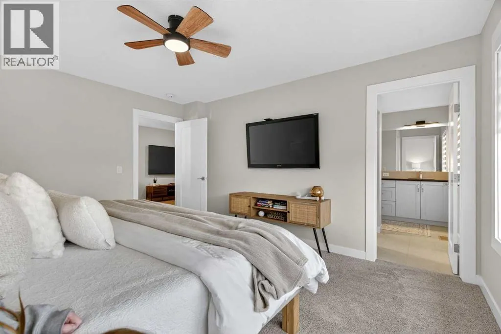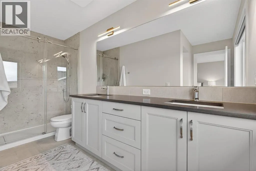 NO BACKYARD NEIGHBOURS | LANDSCAPED YARD | FINISHED BASEMENT | AIR CONDITIONING Welcome to this stunning 2023 Renova-built home located in the desirable community of Precedence. Thoughtfully designed with modern living in mind, this home offers a bright open-concept main floor featuring an updated kitchen with quartz countertops, a spacious pantry and seamless flow into the living and dining areasâperfect for everyday living and entertaining. The renovated mudroom offers custom storage and functionality for busy households, while 2023 custom window coverings add both style and privacy throughout the home.Upstairs, youâll find a versatile bonus flex room, an updated laundry room, and three generous bedrooms, including a beautiful primary retreat with a walk-in closet and a fully updated ensuite showcasing tile flooring and custom tiled shower with glass shower. In total, the home offers 4 bedrooms and 3.5 bathrooms, including a fully finished basement with a fourth bedroom and full bathâideal for guests or extended family.Notable upgrades include 2026 renovated ensuite shower, 2025 air conditioner, 2024 water filtration tap with ice hookup, 2023 water softener, 2023 custom blinds and 2023 landscaping. Step outside to enjoy the raised back deck with stairs, a fully fenced backyard, and the added privacy of no neighbours behind.Located within walking distance to the Bow River and the Riversong walking paths and trails, this home perfectly blends comfort, style, and outdoor lifestyleâan exceptional opportunity in one of the areaâs most sought-after communities. (id:27476)