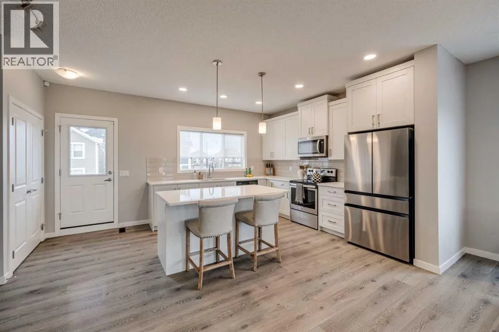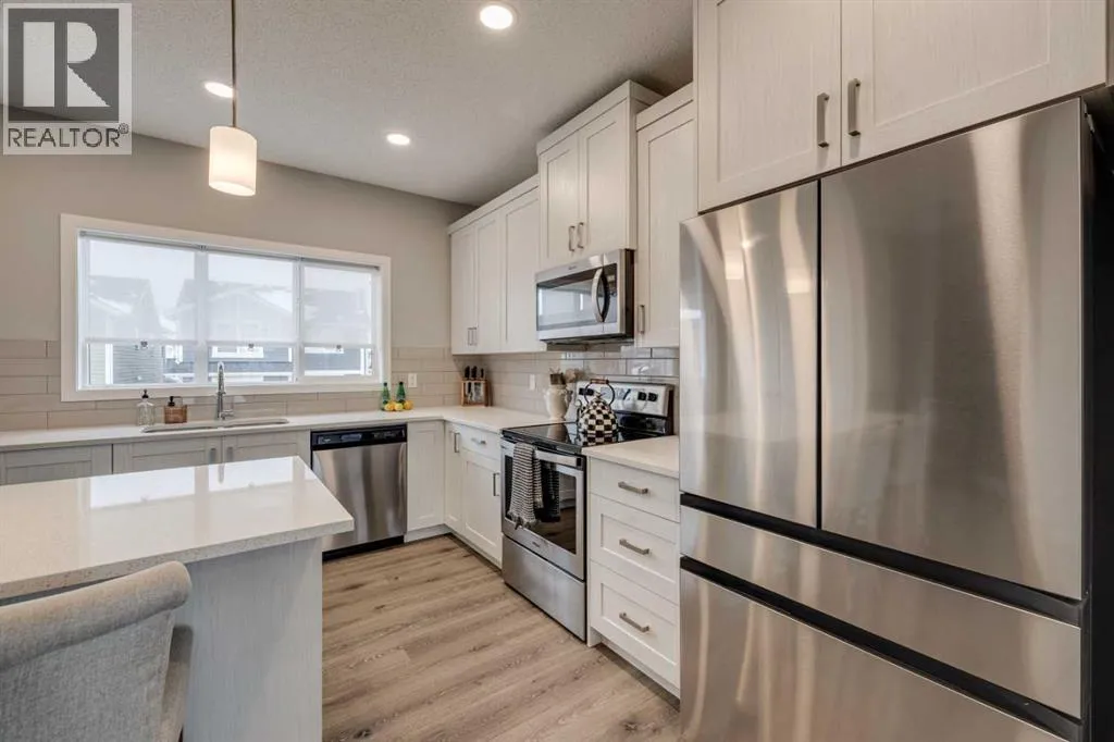 Welcome to this bright and spacious end-unit townhome located in the desirable community of Sunset Ridge. Enjoy the added privacy of an end unit, abundant natural light, and a rare 3 car tandem garage perfect for vehicles, storage, or a home gym. The open concept main living area features stainless steel appliances, and a functional layout ideal for both everyday living and entertaining. Step outside to your fully fenced yard, with mature trees creating a perfect retreat for relaxing, gardening or hosting guests. Ideally situated within walking distance to schools, playgrounds and nearby shops, this home offers exceptional convenience for families, professionals and investors alike. There are No condo fees! (id:27476)