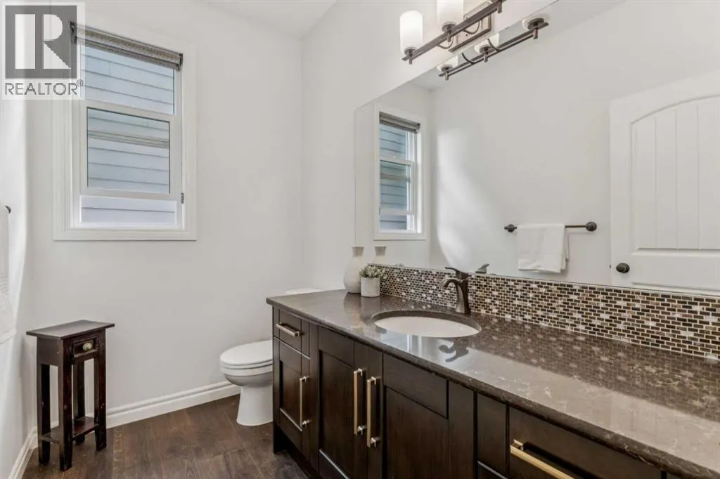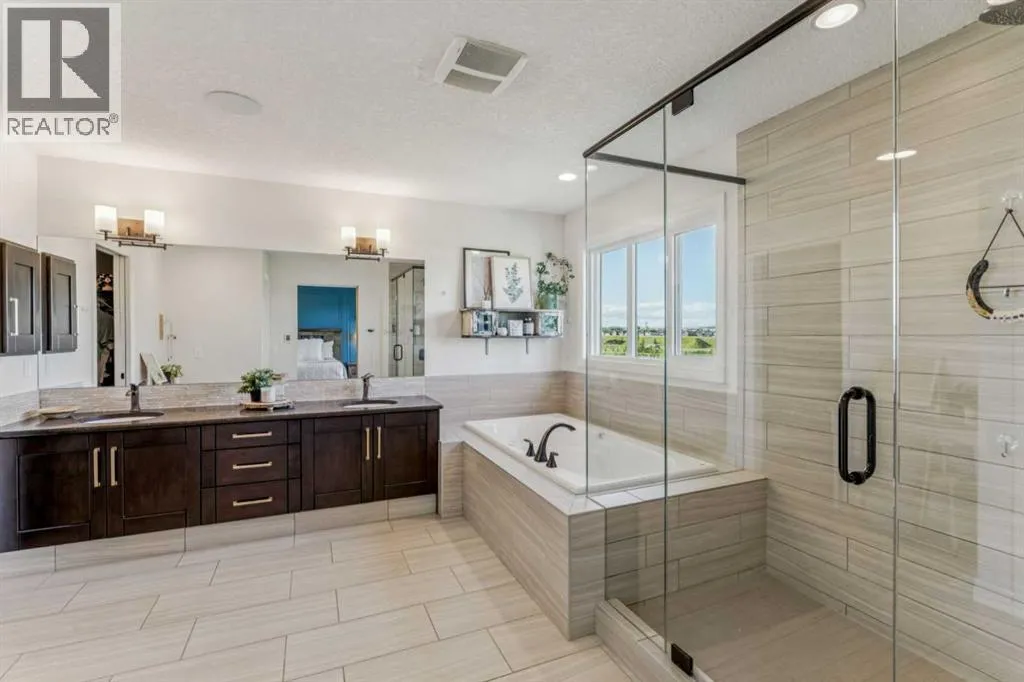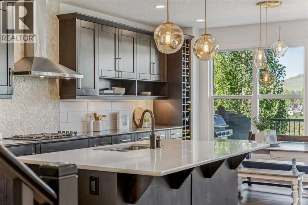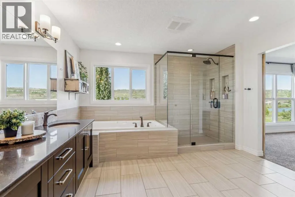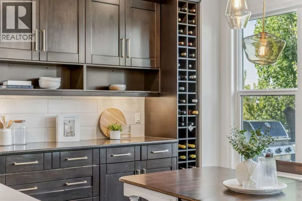 Welcome to your RIVERFRONT RETREAT in the prestigious COMMUNITY of RIVIERA! This former Trico SHOW HOME is perfectly positioned to showcase UNOBSTRUCTED VIEWS of the Bow River, Rocky Mountains, and natural reserve, with NO NEIGHBOURS BEHINDâjust tranquility and nature at your doorstep.From the curb, the EXTRA-WIDE CUSTOM PAVING STONE DRIVEWAY and elegant exterior create a striking first impression. Inside, the grand foyer with OPEN-TO-BELOW CEILINGS, 7 ½â OIL-RUBBED HARDWOOD FLOORS, and FLOOR-TO-CEILING WINDOWS fills the space with natural light while framing the stunning river valley vistas.The chef-inspired kitchen is both stylish and functional, featuring an OVERSIZED ISLAND, QUARTZ COUNTERTOPS, MAPLE CABINETRY with a BUILT-IN WINE RACK, stainless steel appliances, and a GAS COOKTOP. The open living room, anchored by a STONE-SURROUND GAS FIREPLACE, is perfect for entertaining, and the FULL-WIDTH REAR DECK invites you to unwind while taking in the breathtaking scenery.Upstairs, a central BONUS ROOM separates the kidsâ bedrooms from the private PRIMARY BEDROOM, which boasts sweeping views, a spa-like ENSUITE with SOAKER TUB, 10MM TILE & GLASS SHOWER, DUAL VANITIES, and a WALK-THROUGH CLOSET connecting directly to the laundry room with sink and storage.The FULLY FINISHED WALK-OUT BASEMENT offers additional living space with RIVER VIEWS, a KITCHENETTE WITH ISLAND, 9â ceilings, full-height windows, GAS FIREPLACE, bedroom, bathroom, and laundryâideal for extended family, guests, or multi-generational living.Additional highlights include:-Quartz countertops throughout-Custom drapery & upgraded carpets-8â main floor doors & built-in speakers-Dual furnaces & two A/C units for year-round comfort-Double attached garage with 8â doors, extra-high ceiling, LED lighting, and 220V wiringLiving in Riviera offers access to the natural reserve, walking paths, the Bow River, golf, a local farmers market, and a pedestrian bridge to the off-leash dog park.This is a rare opportunity to own a luxury riverside home that perfectly combines style, comfort, and locationâdonât miss your chance to make it yours! (id:27476)