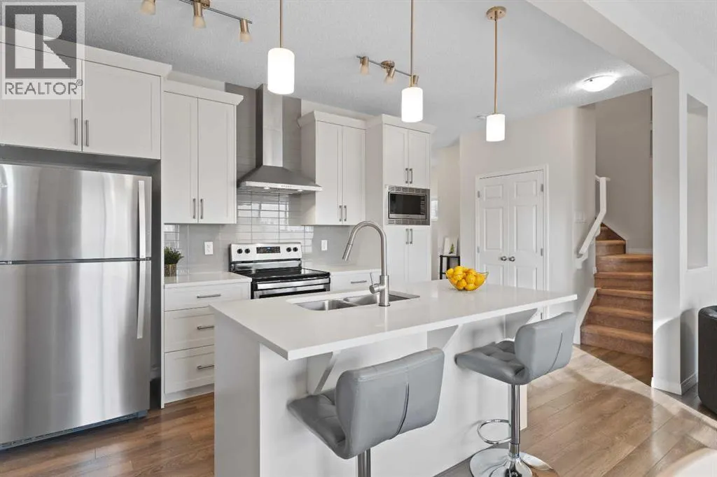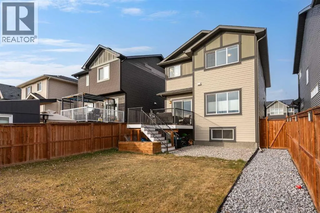 OPEN HOUSE: SUNDAY, FEB. 15TH, 12-2 PM | Welcome to 169 Buckskin Way in the vibrant community of Heartland, one of Cochraneâs most family-oriented neighbourhoods. With over 1,800 sq. ft. of developed living space and a fully fenced, landscaped backyard backing directly onto the walking path, this two-storey offers the space, layout, and setting that growing families appreciate. The main level features 9-foot ceilings, wide-plank flooring, and an open-concept design that feels bright and connected, with natural light filling the living room. The kitchen is thoughtfully finished with stone countertops, soft-close cabinetry, stainless steel appliances, and a central island that naturally becomes the hub for casual meals and conversation. The dining area opens onto a composite deck, ideal for summer BBQs and easy indoor-outdoor living. A convenient powder room and functional mudroom complete the main floor. Upstairs, the bonus room provides valuable additional living space for movie nights or a play area. The primary bedroom includes a walk-in closet and private 4-piece ensuite, complemented by two additional well-sized bedrooms, a full bathroom, and the convenience of upper-level laundry. The basement was built with a large upgraded window and bathroom rough-in, offering excellent potential for future development tailored to your needs. Located close to parks, pathways, and playgrounds, with quick access to Ghost Lake, Calgary, and the mountains, this is a home that balances everyday comfort with weekend adventure. A well-maintained property in a strong community, 169 Buckskin Way is ready to welcome you home. (id:27476)