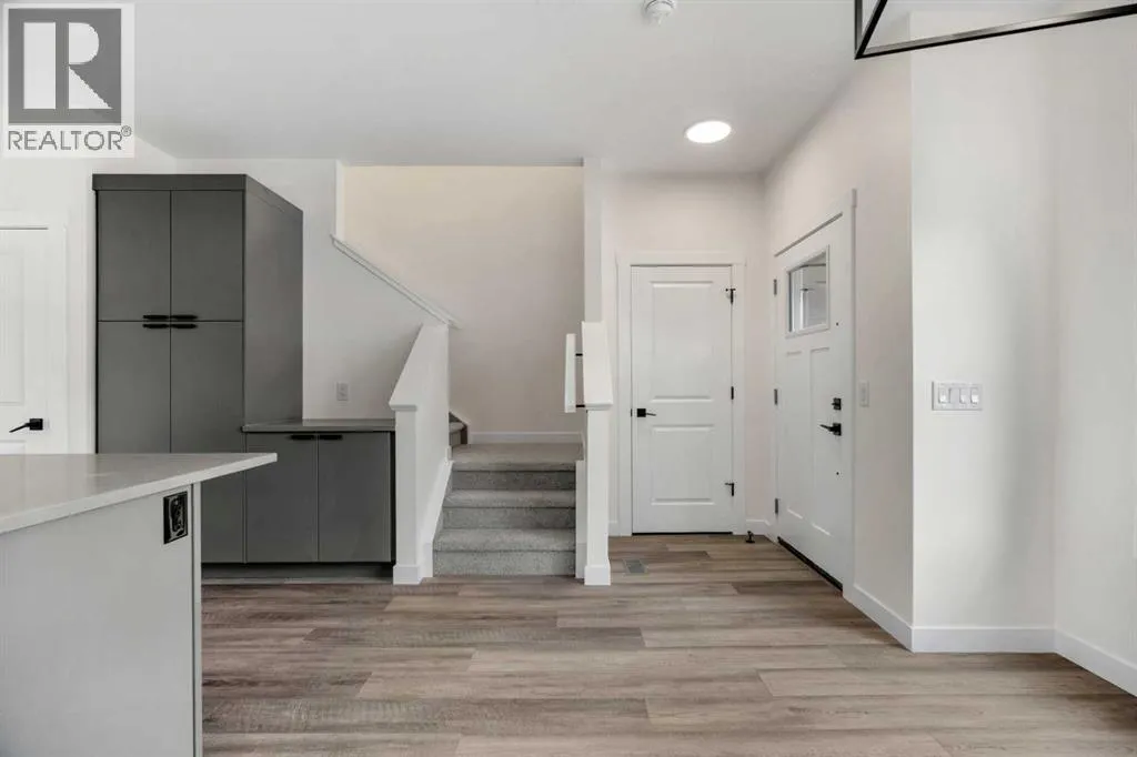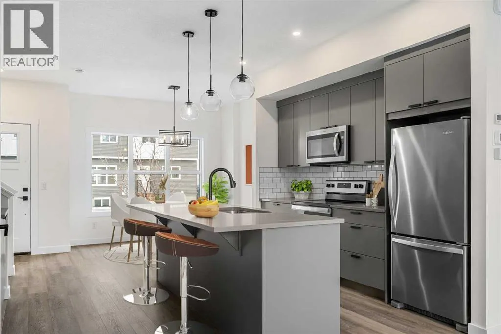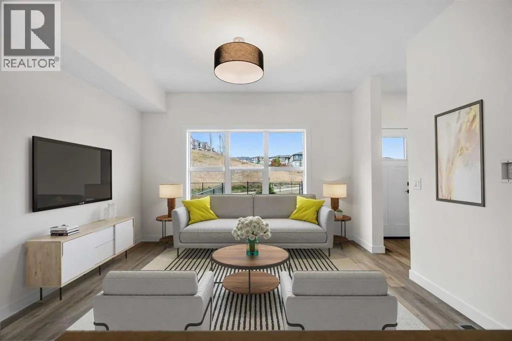 Welcome to the NEWLY BUILT #1206, 525 RIVER HEIGHTS DRIVE, a beautiful townhome that includes a NEW HOME WARRANTY and could offer a GST REBATE FOR QUALIFIED BUYERS. Enjoy a LARGE FENCED BACKYARD backing WEST that provides the feel of a single-family home. Step inside to a bright, airy main floor featuring a MODERN OPEN-CONCEPT LAYOUT that is both stylish and functional. At the heart of the home is a SLEEK CONTEMPORARY KITCHEN with QUARTZ COUNTERTOPS, MATTE BLACK HARDWARE, WHIRLPOOL STAINLESS STEEL APPLIANCES, SOFT-CLOSE CABINETRY, and a CENTRAL ISLAND WITH SEATING, ideal for casual dining or entertaining. The kitchen flows seamlessly into the dining and living areas, where LARGE WINDOWS and LUXURY VINYL PLANK FLOORING create a bright and inviting atmosphere. A POWDER ROOM and a DEDICATED MUDROOM off the back entrance provide added convenience and organization for daily living. Upstairs, the SPACIOUS PRIMARY BEDROOM includes a WALK-IN CLOSET and a PRIVATE 3-PIECE ENSUITE. Two additional bedrooms offer flexible space for children, guests, or a home office. A FULL 4-PIECE BATHROOM and a CENTRALLY LOCATED LAUNDRY AREA make busy routines easier and more efficient. The UNFINISHED BASEMENT provides exciting potential for future development, additional storage, or a customized space that fits your lifestyle. Designed with comfort and sustainability in mind, the home includes DUAL-PANE WINDOWS, a HIGH-EFFICIENCY HVAC SYSTEM, and an HRV UNIT for consistent comfort and performance year-round. Outside, you can relax on your PRIVATE REAR PATIO or enjoy a quiet morning on the COVERED FRONT PORCH. Two ASSIGNED PARKING STALLS add convenience, and with LANDSCAPING AND SNOW REMOVAL INCLUDED, this property offers truly LOW-MAINTENANCE LIVING. Located in the well-established community of RIVERSONG, you are just minutes from SCHOOLS, SCENIC WALKING PATHS, PARKS, CO-OP and the SPRAY LAKE SAWMILLS FAMILY SPORTS CENTRE. QUICK ACCESS TO HIGHWAY 1 and 22 makes it easy to reach CALGARY or esc ape to the MOUNTAINS for a weekend getaway. With QUALITY FINISHES, a SMART LAYOUT, and a VIBRANT NEIGHBORHOOD, this home is designed for modern, comfortable living. CONTACT to view the home TODAY as this home is MOVE IN READY! The FREESTONE SHOWHOME AT 525 RIVER HEIGHTS DRIVE is open on WEEKENDS from 12 â 5pm! (id:27476)