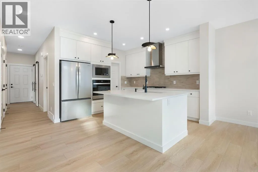 Welcome to your new home in the boutique community of Rivercrest in Cochrane! Built by Trico Homes, this stunning 3 bedroom home is bright, welcoming and has the perfect layout. Upon entering, you'll find a spacious main floor flex room, ideal for a home office, study, or kids playroom. Continuing into the main area, youâre greeted by the large full wall of windows to enjoy amazing sun from your south facing backyard. Your open concept kitchen is complete with a built-in stainless steel appliance package including a gas range and additional drawers, hello storage! Enjoy cooking with ample counter space, a large pantry and spacious island; perfect for your kids to enjoy breakfast or entertain. An inviting electric fireplace adds warmth and coziness to your living room making it perfect for relaxing evenings. Heading upstairs you are greeted by a spacious & centrally located bonus room perfect for family movie nights or kids play space. Your primary suite is spacious & complete with a luxurious ensuite including double sinks, drawers for storage, upgraded tile shower and soaker tub. Conveniently situated just off your ensuite, is your spacious walk-in closet. Enjoy a full upstairs laundry room complete with additional storage and space to hang your clothes. The kids wing of the home is complete with two well appointed spare rooms with walk-in closets and a full spare bath with quartz countertops. In the basement you will find a separate side entrance, 9â foundation, 3-piece bathroom rough-in and 2 basement windows perfect for your future development. Outside, enjoy the full day sun on your back deck and spacious 38â wide future yard. Rivercrest is a quiet boutique community with stunning mountain views and a future school site. Enjoy getting to know your neighbours, on a quiet street and convenient access to everything Cochrane has to offer! Living here means convenient access to Calgary, minutes from Spray Lakes Recreation Centre & downtown Cochrane! You have everyt hing Cochrane has to offer right at your doorstep. Call your Realtor and book your showing today! (id:27476)