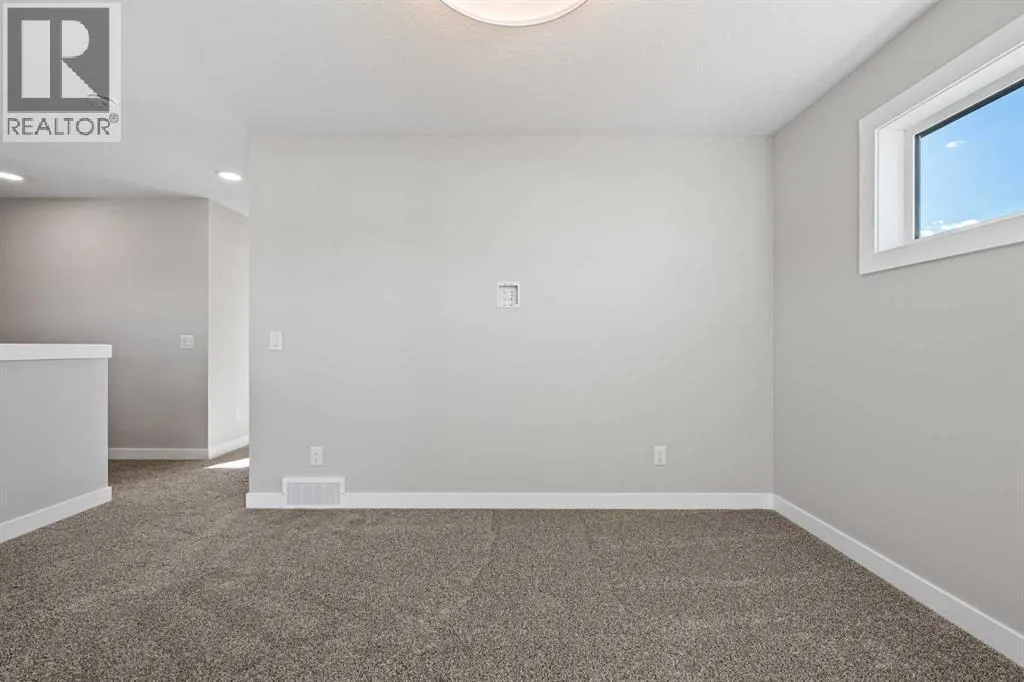 Welcome to 85 Quartz Crescent, Cochrane â an impressive two-storey home offering 1,895 sq. ft. of thoughtfully designed living space in a highly desirable neighbourhood. This property provides both front-drive convenience and rear-lane access, giving you flexibility rarely found in newer communities.Step inside to a welcoming foyer that opens into a bright, airy main floor where large windows flood the space with natural light. The open-concept kitchen, dining, and living areas flow seamlesslyâperfect for everyday living and effortless entertaining. The stylish kitchen features quartz countertops, sleek black hardware, and beautifully crafted MDF built-ins that elevate both function and design. The adjacent living room is anchored by a cozy gas fireplace, creating a warm and inviting atmosphere. A convenient powder room completes this level.Upstairs, youâll find three spacious bedrooms, a full bathroom, and a generous primary suite designed as your private retreat. The primary includes ample space for a king bed and furniture, along with access to a well-appointed ensuite and walk-in closet.The sunshine basement is a true highlight of the homeâfeaturing oversized windows that invite natural light and enhance the sense of space. With a full bathroom rough-in, this level is ready for future development as a recreation area, home theatre, gym, or additional living space.Situated in a sought-after area of Cochrane, this home offers easy access to parks, pathways, schools, and major commuter routes. 85 Quartz Crescent combines modern finishes, a functional layout, and exceptional potentialâperfect for todayâs lifestyle.Donât miss your opportunity to make it your own. Schedule your private showing today! (id:27476)