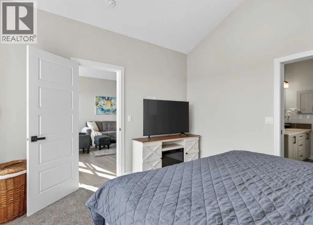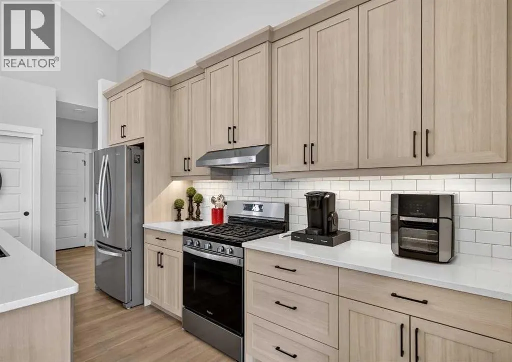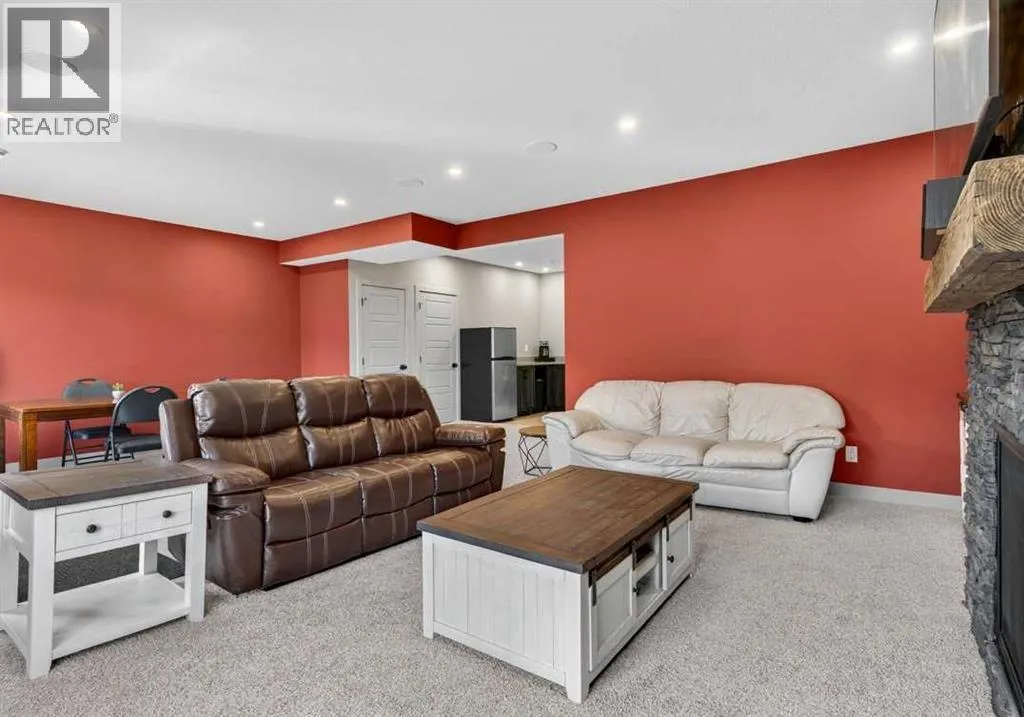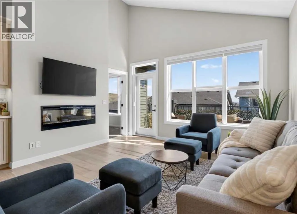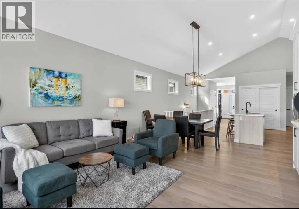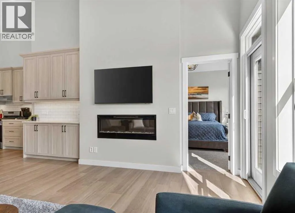 OPEN HOUSE Saturday Feb 14th 1-4pm ~Your NEW HOME awaits.... Stunning 2024 Trico Homes Wynwood 28 Vaulted Ceiling Bungalow with finished Walkout Basement Development by Basement Builders in Scenic Precedence area. This beautifully designed bungalow combines comfort, style, and breathtaking views in one exceptional package. As you step through the front door, you are WELCOMED into the heart of the HOME greeted by soaring VAULTED CEILINGS and an open, light-filled floor plan. The kitchen is a delight to cook in with a large island, gas range, and tall cabinetry with quartz countertops, and pantry. Continuing on the main level is the dining area, and living room with electric fireplace and flatscreen TV making this the perfect space for both everyday living and entertaining. Finishing off this level is the Vaulted Primary Bedroom with 5 piece ensuite with SPECTACULAR walk in shower, walk in closet, second bedroom/office, main bathroom, and laundry room. Another added bonus off the living room is the 10 by 14 deck with gas BBQ hook-up which overlooks the landscaped backyard and North East views of the Cochrane Hills, PLUS a double attached garage with high ceilings.....add more storage. Head downstairs to the beautifully fully finished walkout basement offering even more living space that has been thoughtfully designed for relaxation, entertainment or a man cave. A massive family room centres around a striking floor-to-ceiling stone gas fireplace with mantle, and 75 inch big screen TV with SURROUND SOUND. There are so many added BONUSES including a large BAR area making this level perfect for hosting gatherings. Finishing off the basement you will find two additional bedrooms and 4 piece bathroom plus utility room. The walkout door leads to a covered patio with beautifully landscaped yard, extending the living space outdoors, plus electric hook up for a future hot tub area. This HOME BLENDS a thoughtful layout with high-end finishes and stunning surroundings, making thi s bungalow the best of both worlds! A retreat like setting with easy access to Cochraneâs amenities, schools, and scenic trails. Whether you are entertaining friends or enjoying quiet evenings on the deck, this home truly has it all. DO NOT WAIT... make this HOME yours TODAY! (id:27476)