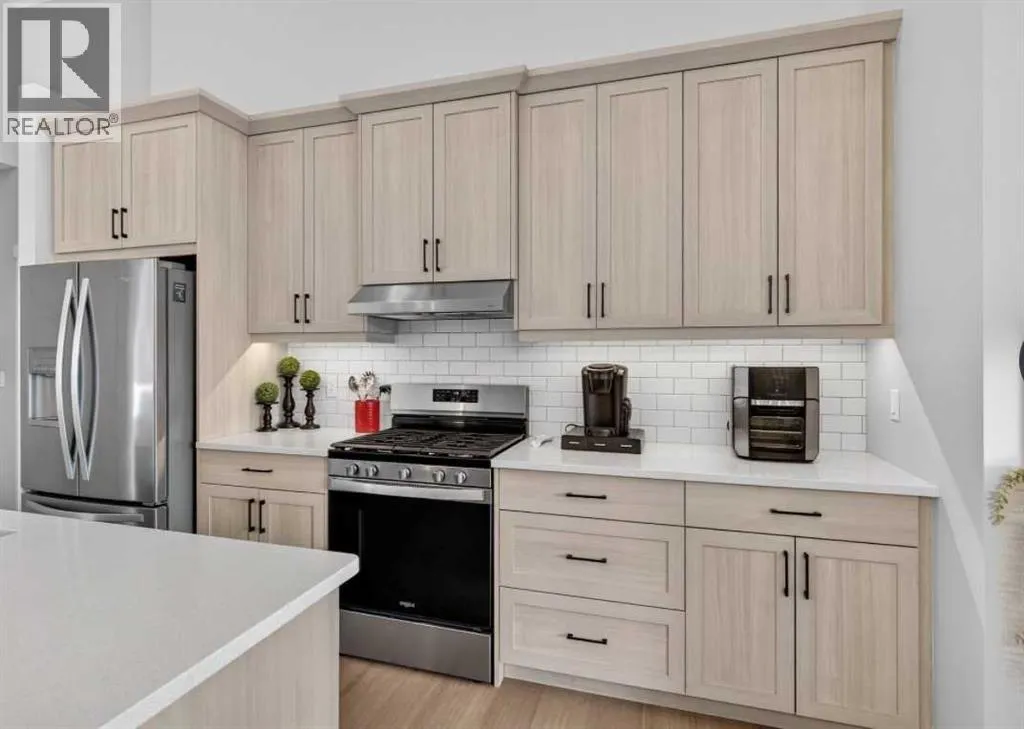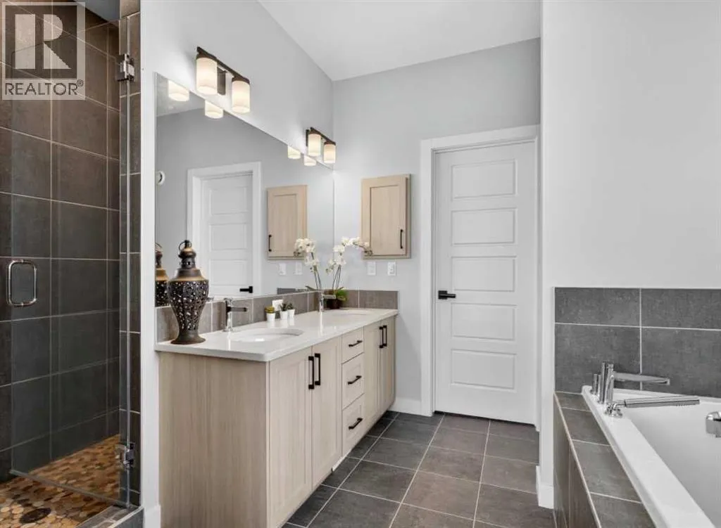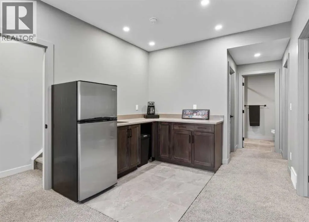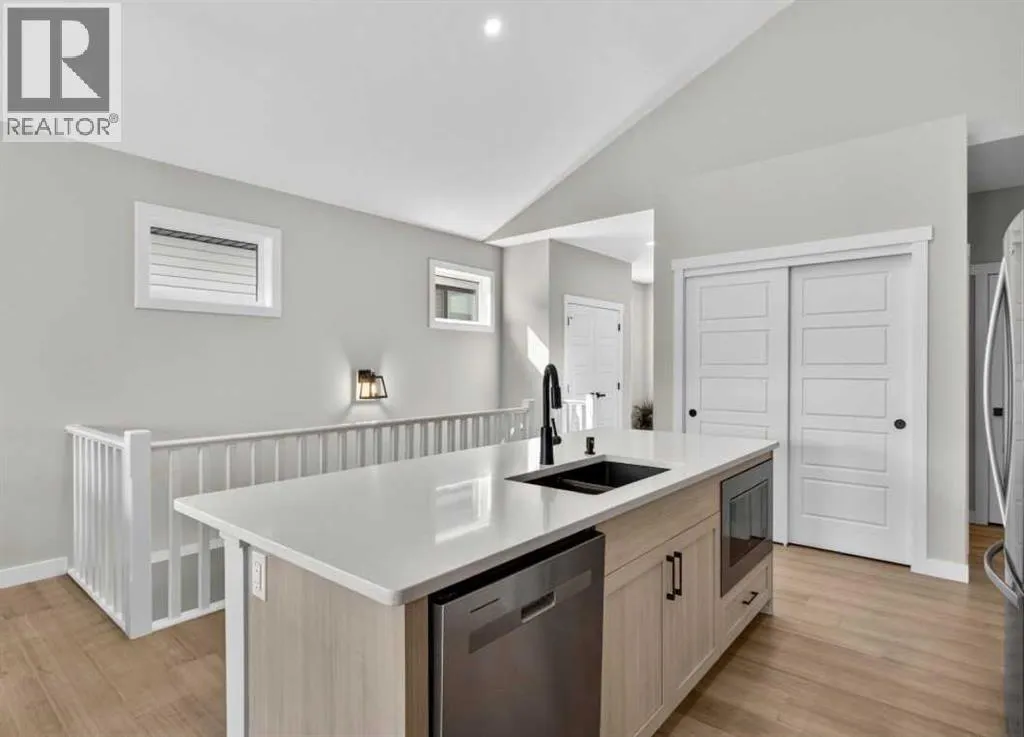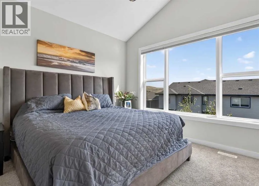 OPEN HOUSE Saturday Feb 14th 1-4pm ~Your NEW HOME awaits.... Stunning 2024 Trico Homes Wynwood 28 Vaulted Ceiling Bungalow with finished Walkout Basement Development by Basement Builders in Scenic Precedence area. This beautifully designed bungalow combines comfort, style, and breathtaking views in one exceptional package. As you step through the front door, you are WELCOMED into the heart of the HOME greeted by soaring VAULTED CEILINGS and an open, light-filled floor plan. The kitchen is a delight to cook in with a large island, gas range, and tall cabinetry with quartz countertops, and pantry. Continuing on the main level is the dining area, and living room with electric fireplace and flatscreen TV making this the perfect space for both everyday living and entertaining. Finishing off this level is the Vaulted Primary Bedroom with 5 piece ensuite with SPECTACULAR walk in shower, walk in closet, second bedroom/office, main bathroom, and laundry room. Another added bonus off the living room is the 10 by 14 deck with gas BBQ hook-up which overlooks the landscaped backyard and North East views of the Cochrane Hills, PLUS a double attached garage with high ceilings.....add more storage. Head downstairs to the beautifully fully finished walkout basement offering even more living space that has been thoughtfully designed for relaxation, entertainment or a man cave. A massive family room centres around a striking floor-to-ceiling stone gas fireplace with mantle, and 75 inch big screen TV with SURROUND SOUND. There are so many added BONUSES including a large BAR area making this level perfect for hosting gatherings. Finishing off the basement you will find two additional bedrooms and 4 piece bathroom plus utility room. The walkout door leads to a covered patio with beautifully landscaped yard, extending the living space outdoors, plus electric hook up for a future hot tub area. This HOME BLENDS a thoughtful layout with high-end finishes and stunning surroundings, making thi s bungalow the best of both worlds! A retreat like setting with easy access to Cochraneâs amenities, schools, and scenic trails. Whether you are entertaining friends or enjoying quiet evenings on the deck, this home truly has it all. DO NOT WAIT... make this HOME yours TODAY! (id:27476)