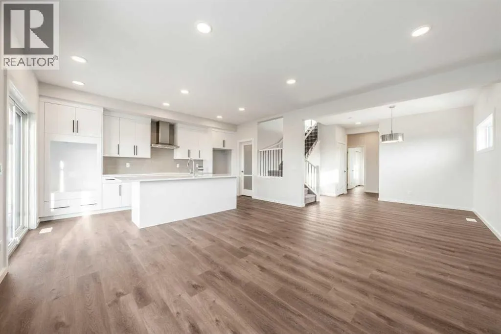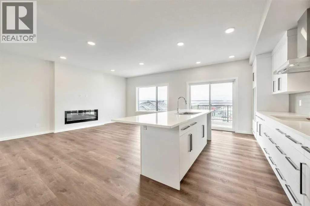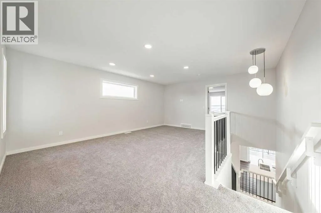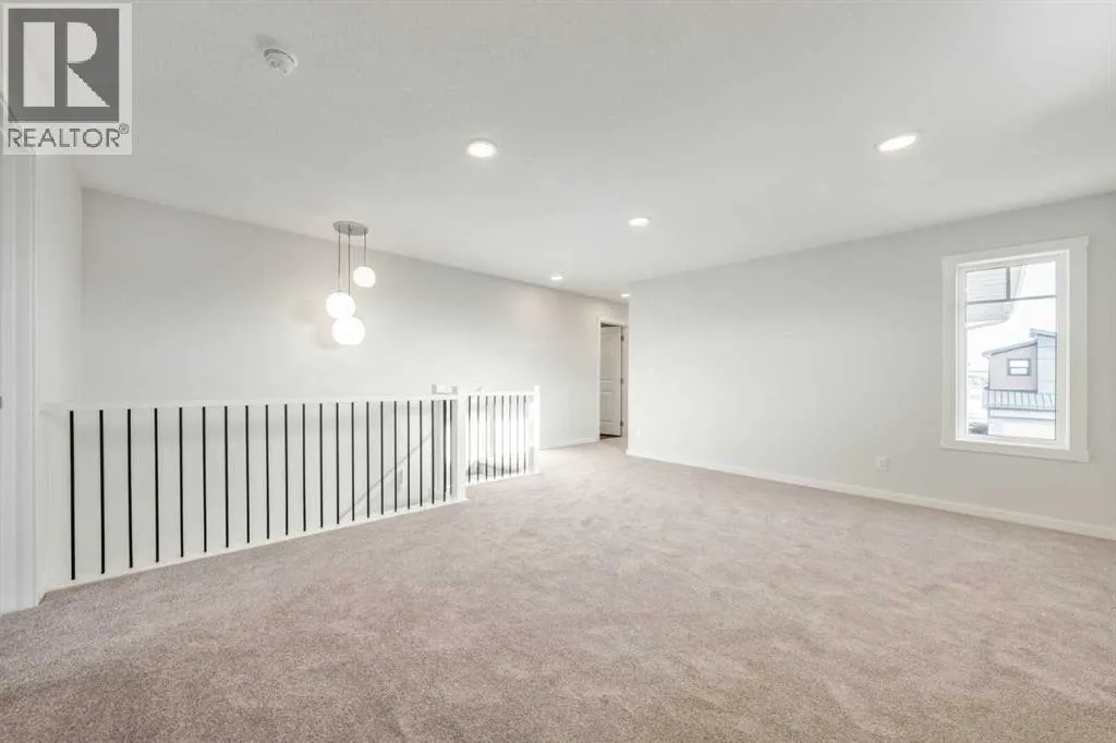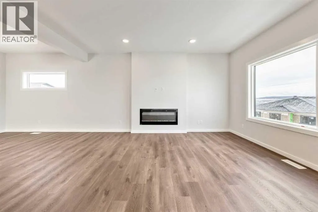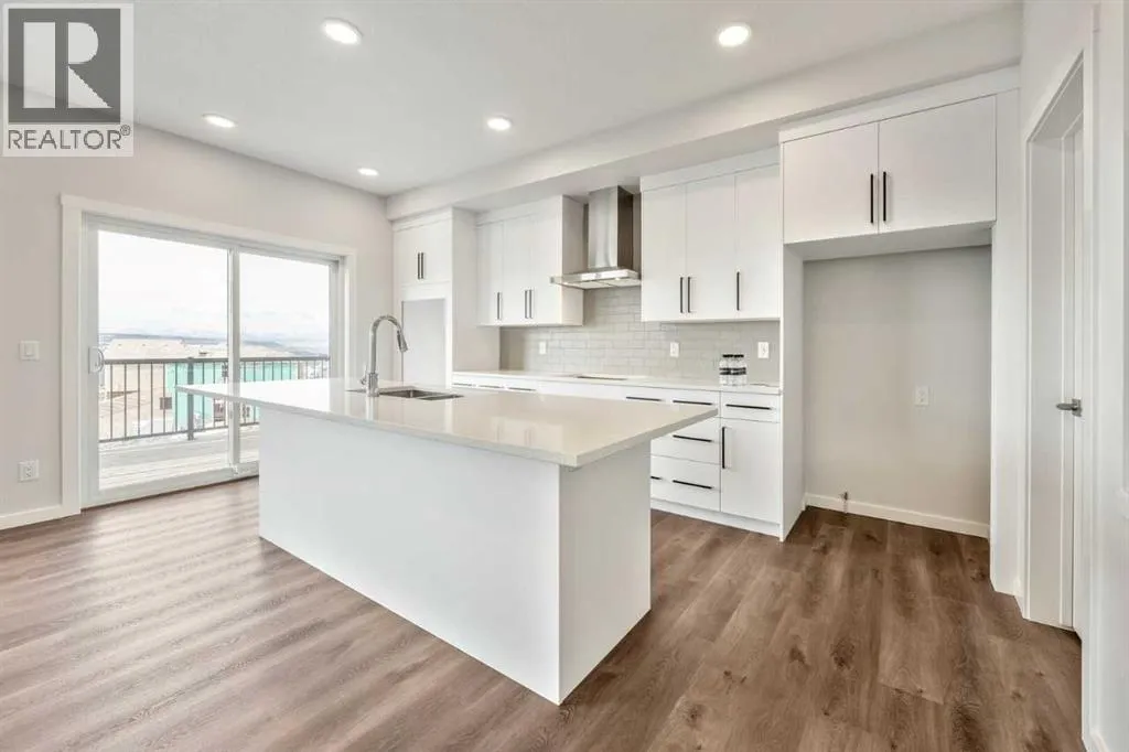 Backing onto sweeping west-facing mountain views, this 3-bed, 2.5-bath walkout home offers 2,328 sq ft of thoughtfully designed living space with an abundance of natural light throughout. The open-concept main floor features 9' knockdown ceilings, an upgraded kitchen with ceiling-height cabinetry, chimney hood fan, and walk-through pantry â all flowing seamlessly to a spacious deck where those views take centre stage. A main floor flex room adds versatility for a home office or guest room, while a large bonus room upstairs provides the perfect family lounge or media retreat. The primary bedroom impresses with dual vanities, a freestanding soaker tub, and a generous walk-in closet. Premium touches include undermount sinks, soft-close cabinetry, added windows, and smart home technology including a smart thermostat and keypad front lock. The walkout basement with 9' foundation and rough-in bath is primed for potential future development. High-efficiency mechanical systems ensure year-round comfort. (id:27476)