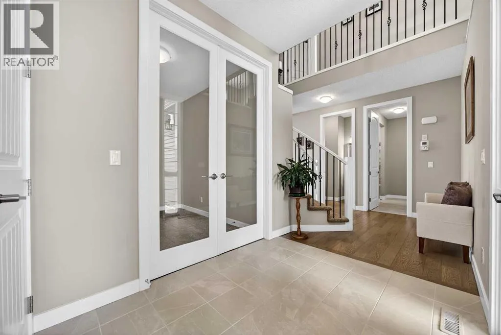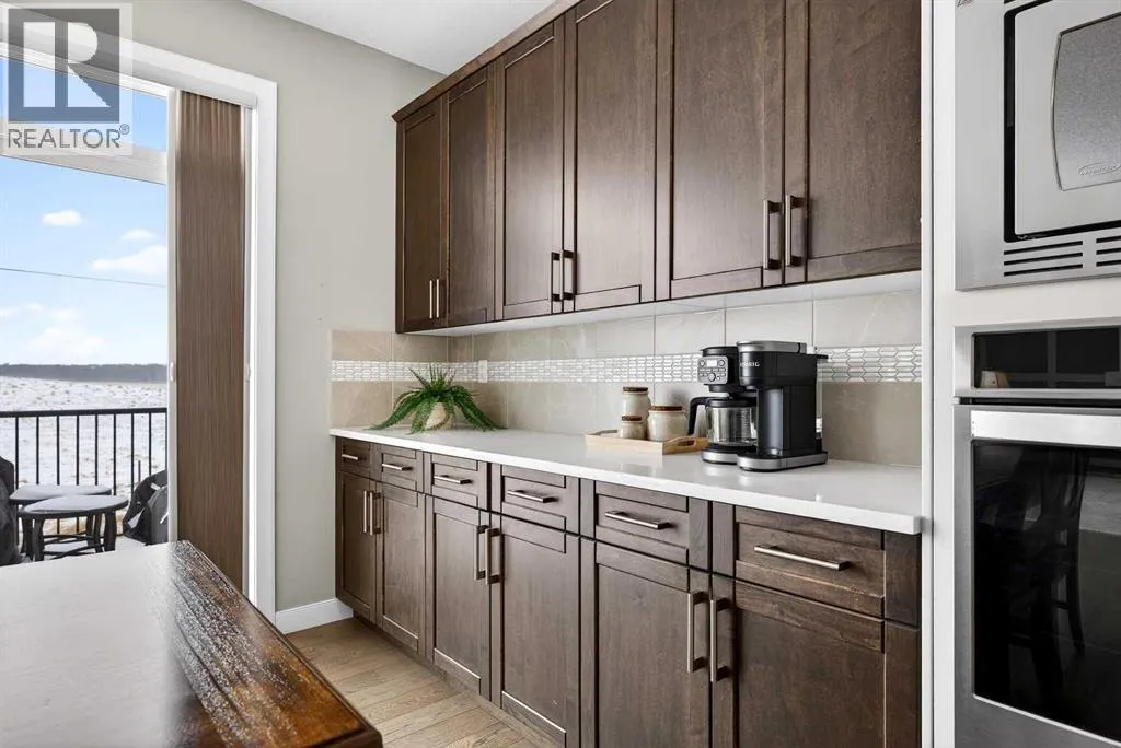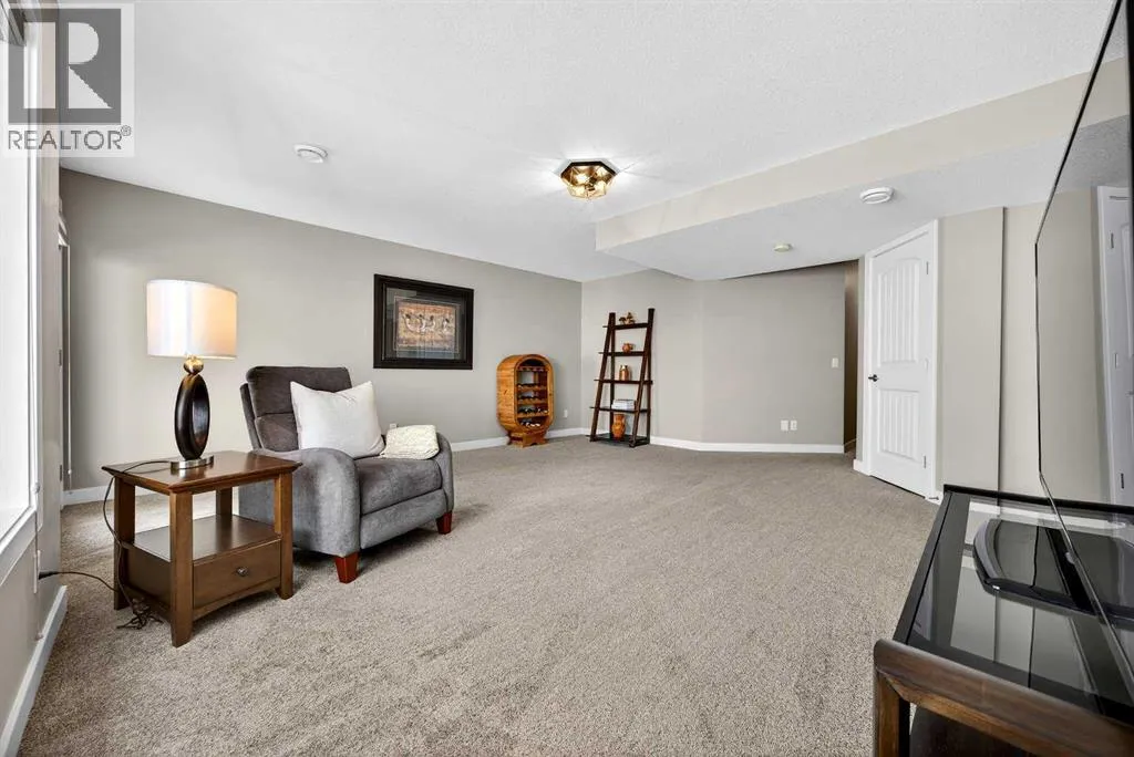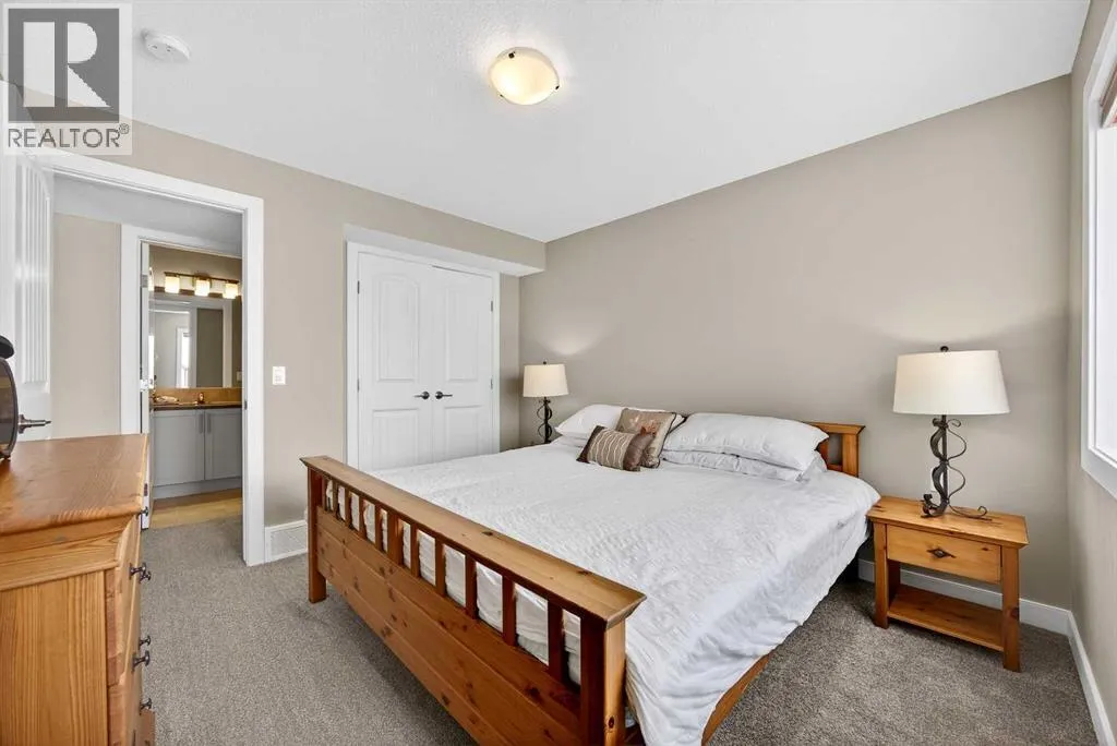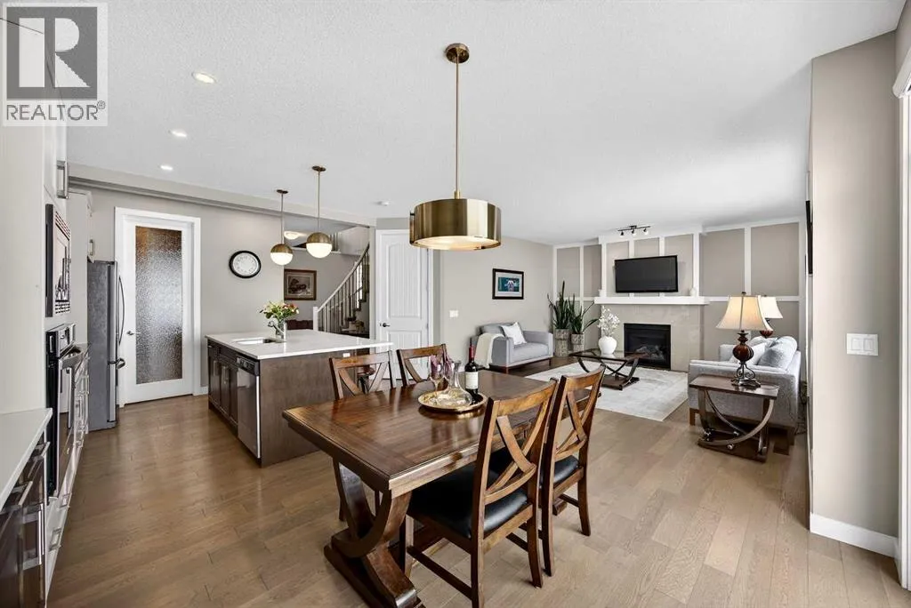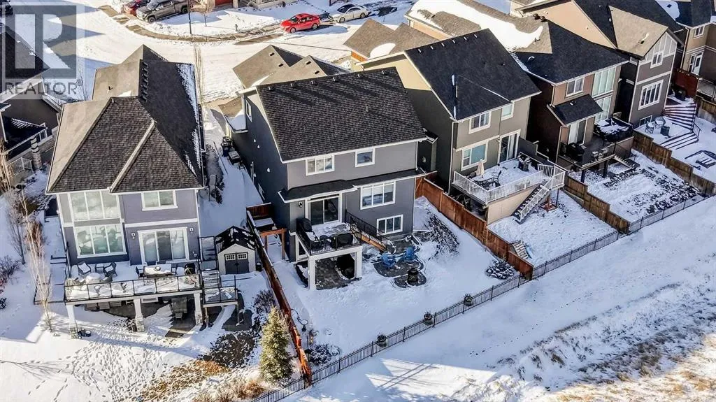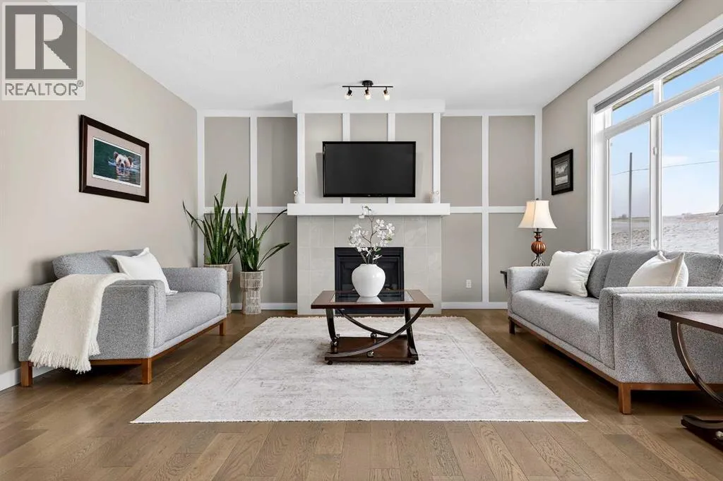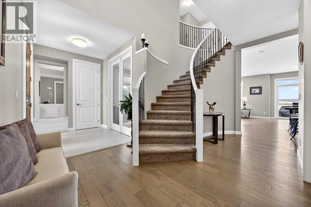 Welcome to the best value in Sunset Ridge! As you step into this beautiful home, youâre welcomed by gleaming hardwood floors and an abundance of natural light. The open-concept floor plan is perfect for entertaining and extends seamlessly to an east-facing balcony and a fenced, irrigated backyard that backs onto expansive green spaceâoffering the privacy of no rear neighbours. The main floor features a private den with glass French doors, ideal for working from home. The chef-inspired kitchen showcases a large island with quartz countertops and bar seating, a stainless steel French-door refrigerator, and built-in microwave and oven. Extended cabinetry into the dining area provides exceptional storage, while the convenient walkthrough pantry connects the mudroom directly to the kitchen. The inviting living room features a cozy gas-burning fireplace, and a two-piece powder room completes the main level. Up the elegant curved staircase with wrought-iron spindles, is the primary bedroom This retreat offers a luxurious five-piece ensuite with dual sinks and a stand-alone soaker tub, along with a walk-through closet that leads directly to the laundry room for ultimate convenience. Two additional bedrooms, a generous bonus room and a four-piece bathroom complete the upper floor. The fully finished walkout basement is designed for entertaining, featuring two additional bedrooms, a four-piece bathroom, and beautiful views of the backyard and surrounding green space. Additional highlights include a double attached garage and central air conditioning. Ideally situated close to schools, parks, scenic walking trails, and shopping, this exceptional home combines comfort, style, and an unbeatable location. (id:27476)