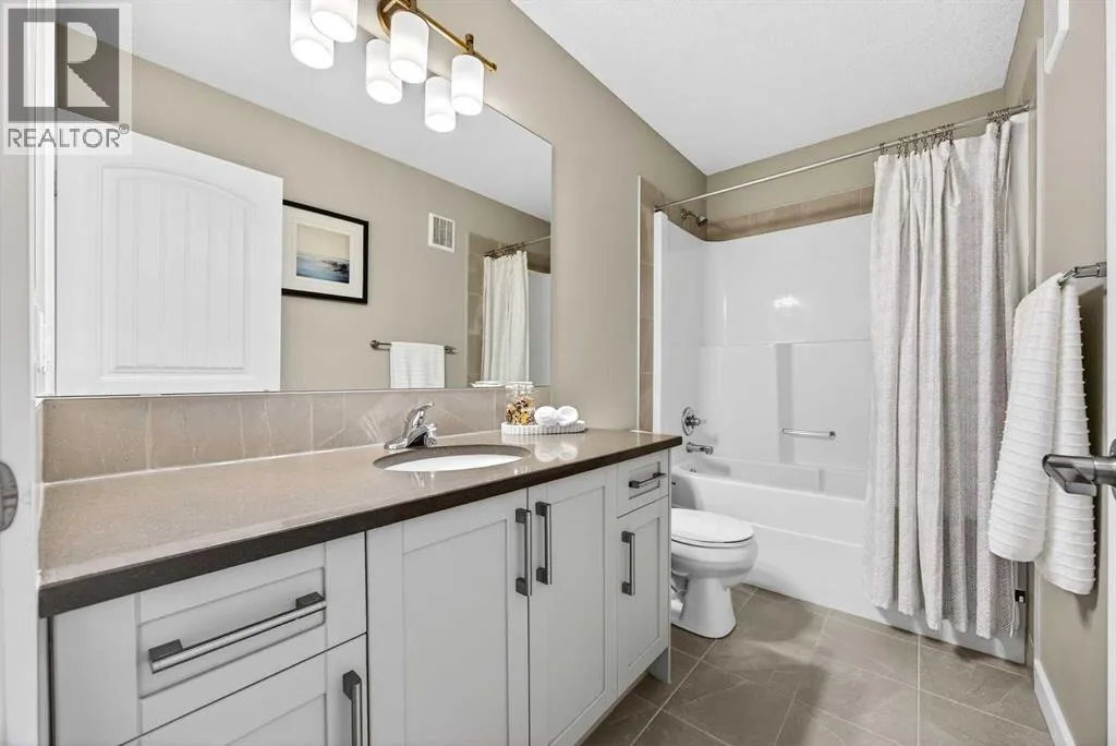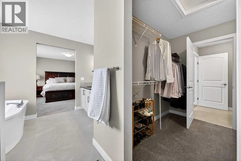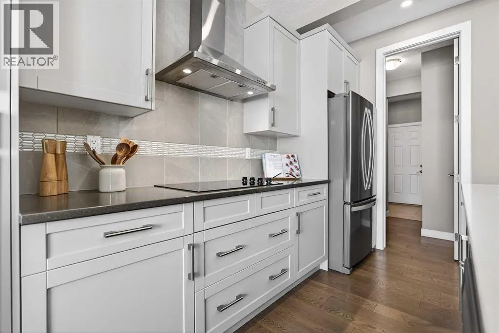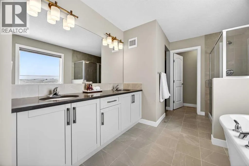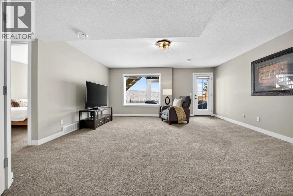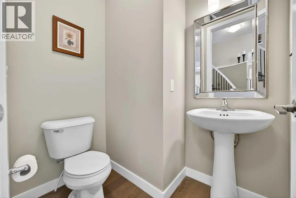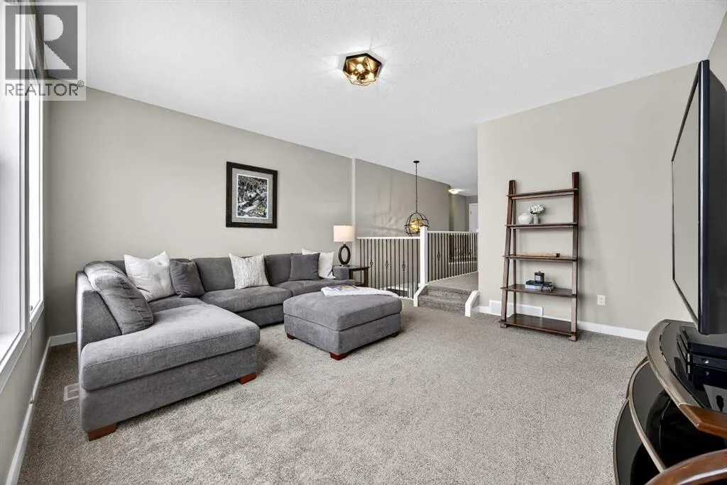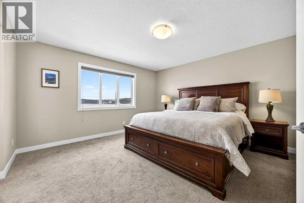 Welcome to the best value in Sunset Ridge! As you step into this beautiful home, youâre welcomed by gleaming hardwood floors and an abundance of natural light. The open-concept floor plan is perfect for entertaining and extends seamlessly to an east-facing balcony and a fenced, irrigated backyard that backs onto expansive green spaceâoffering the privacy of no rear neighbours. The main floor features a private den with glass French doors, ideal for working from home. The chef-inspired kitchen showcases a large island with quartz countertops and bar seating, a stainless steel French-door refrigerator, and built-in microwave and oven. Extended cabinetry into the dining area provides exceptional storage, while the convenient walkthrough pantry connects the mudroom directly to the kitchen. The inviting living room features a cozy gas-burning fireplace, and a two-piece powder room completes the main level. Up the elegant curved staircase with wrought-iron spindles, is the primary bedroom This retreat offers a luxurious five-piece ensuite with dual sinks and a stand-alone soaker tub, along with a walk-through closet that leads directly to the laundry room for ultimate convenience. Two additional bedrooms, a generous bonus room and a four-piece bathroom complete the upper floor. The fully finished walkout basement is designed for entertaining, featuring two additional bedrooms, a four-piece bathroom, and beautiful views of the backyard and surrounding green space. Additional highlights include a double attached garage and central air conditioning. Ideally situated close to schools, parks, scenic walking trails, and shopping, this exceptional home combines comfort, style, and an unbeatable location. (id:27476)