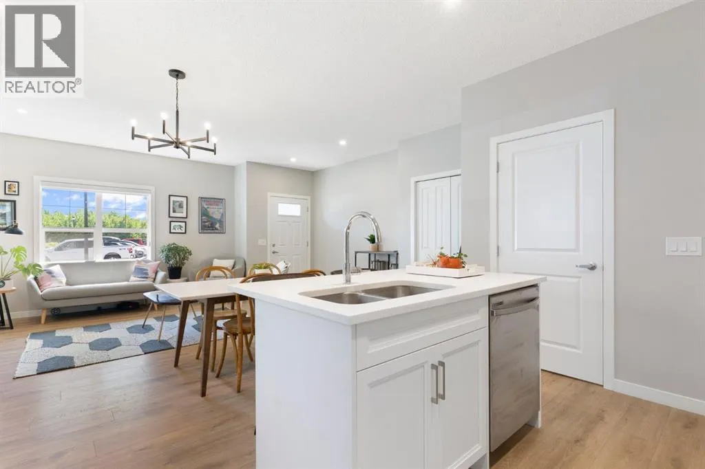 Get ready for a lifestyle of ease in this stunning former Calbridge showhome. This end-unit bungalow is designed for those who want to trade yard work for weekend adventures without sacrificing quality. Enjoy a bright, open-concept layout featuring quartz countertops, premium cabinetry, stainless steel appliances and a central island perfect for morning coffee. The primary living space includes two spacious bedrooms and a full bathroom all on the main floor, offering the convenience of single-level living. In addition, the fully finished basement provides a generous family room, an extra bedroom, an office, a generous storage room, and a laundry room complete with a full size washer and dryer. Leave the car in your titled, partially covered stall just steps from your front door. You are a short walk away from Firesideâs serene pathways, ponds, local shopping, pharmacy, dentist, restaurants, convenience store with gas station, parks and schools. A ten minute drive gets you on to the Trans Canada Highway and off to your adventures in the Rocky Mountains or Calgary. Whether you're heading to the mountains or just down the street to treat yourself to fine dining, this home offers the sophisticated, low-maintenance lifestyle youâve been looking for!Whether youâre downsizing, buying your first home, or simply seeking low-maintenance living with plenty of space, this rare bungalow style condo is a must see! (id:27476)