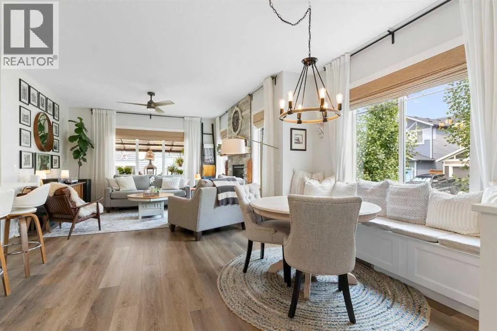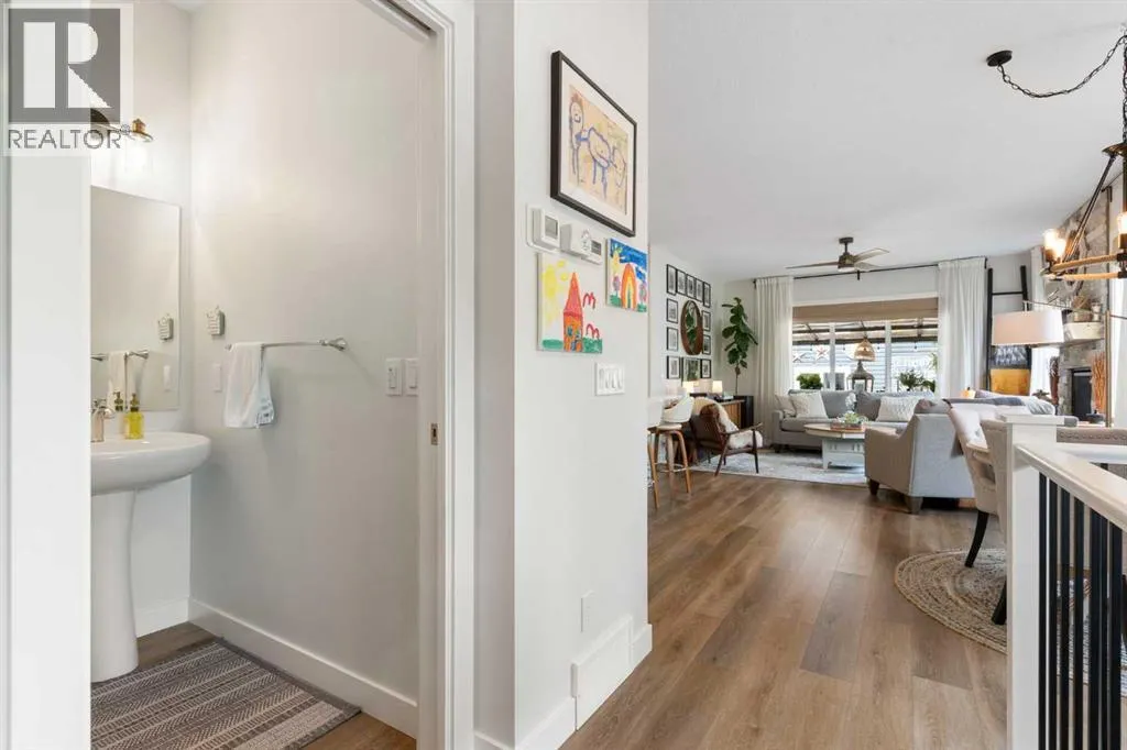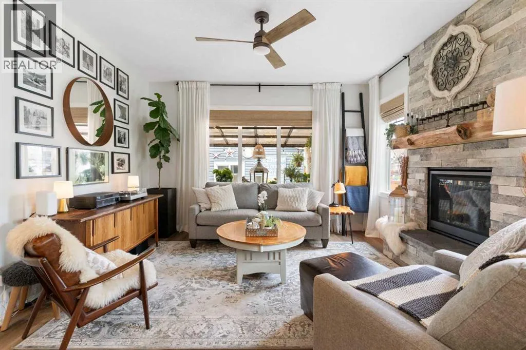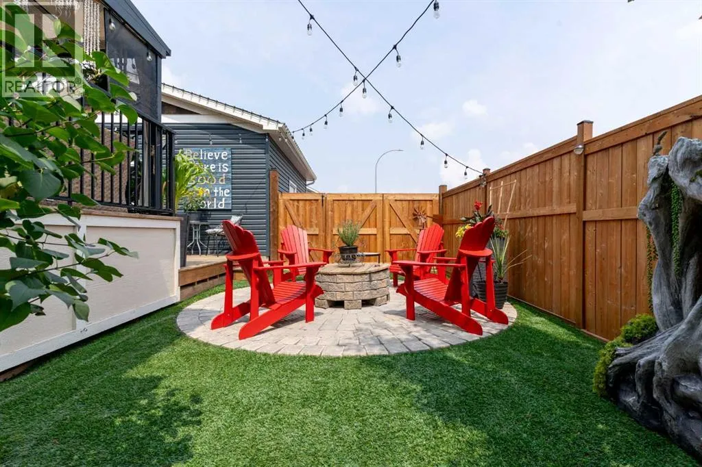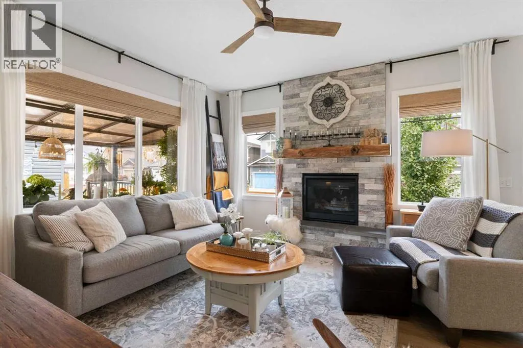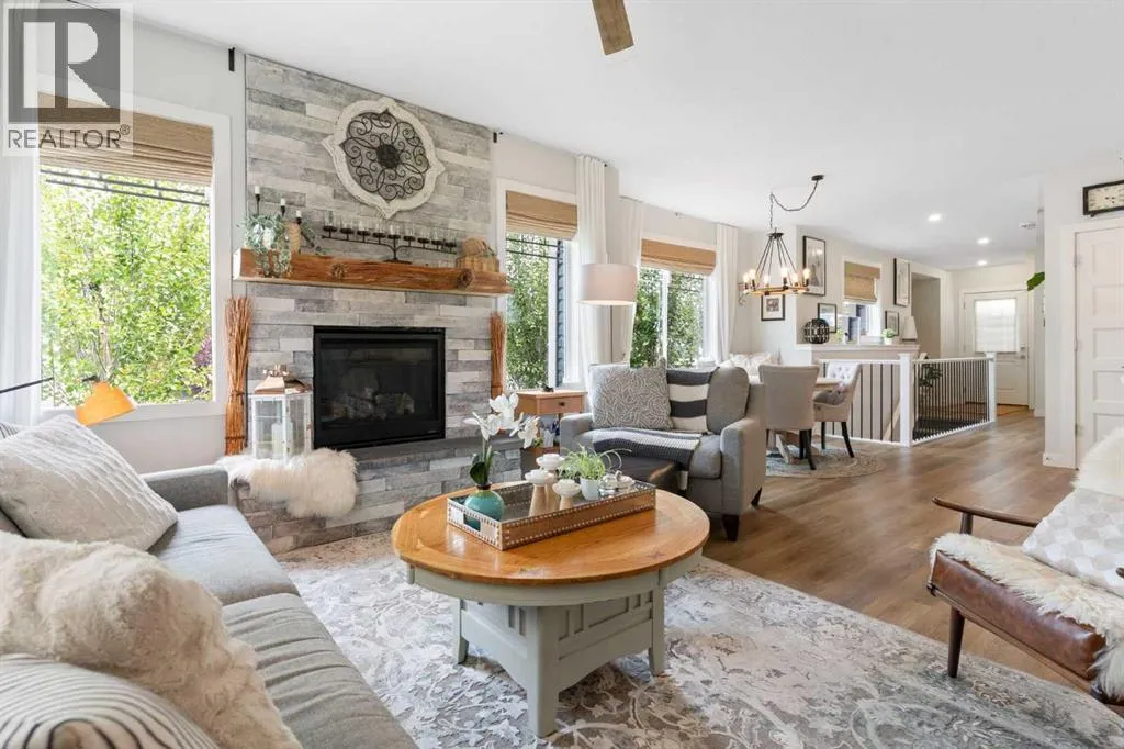 ** Open House: Saturday, Feb. 28th | 3:45 to 5:30 pm ** Welcome to 6 Emberside Hollow, a bright corner-lot bungalow located in the heart of Cochraneâs sought after Fireside community. Offering just over 2,030 square feet of well-designed living space, this home delivers modern finishes paired with everyday functionality. The main floor is airy and welcoming with 9ft ceilings, wide plank luxury vinyl flooring, and oversized windows that flood the space with natural light.The kitchen is designed to impress, featuring full height soft grey cabinetry with undermount lighting, quartz countertops, stainless steel appliances, a gas range, an undermount sink, and a large island with seating for three. Just off the kitchen, the dining nook includes a built-in bench with pull out drawers for added storage and convenience. The living room is anchored by a striking floor to ceiling brick fireplace, while a convenient half bath and functional mudroom help keep daily life organized.The primary bedroom is a comfortable retreat with a walk-in closet and spa-inspired ensuite offering dual sinks, a spacious tiled shower with bench, and a glass door. The bedroom window is tinted for added privacy without sacrificing natural light. A metal spindle railing leads to the fully finished lower level, where 9ft ceilings create a spacious family room ideal for movie nights, games, or play space. Two generous bedrooms share a stylish 4 piece bathroom, and a dedicated home office with wall to wall desk and shelving provides a perfect work from home setup.Outside, the fully fenced yard is designed for easy enjoyment. Low maintenance artificial turf eliminates mowing, while an irrigation system services the flowerbeds and planters. Landscape lighting enhances evening ambiance, and a circular gas fire pit creates a natural gathering space. The detached 22' Ã 22' garage features high ceilings, two large windows, 30-amp 120/240-volt service, a 240-volt heater, overhead storage racks, and a bui lt-in workbench, making it ideal for vehicles, hobbies, and storage. The additional gravel parking pad offers excellent flexibility for extra vehicles, a trailer, or RV, with a gate that opens to allow for longer RV parking.Fireside is known for its walkable pathways, playgrounds, pump track, new skateboard park, and proximity to Fireside School (Kâ8), Holy Spirit Catholic School (Kâ6), local coffee shops, and the Emberside commercial plaza. With Highway 22 just minutes away, Calgary and the mountains are both easily accessible. Offering single level living, modern finishes, an entertainer friendly backyard, and a vibrant neighbourhood setting, 6 Emberside Hollow is a home you will love coming back to. (id:27476)