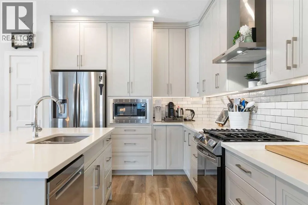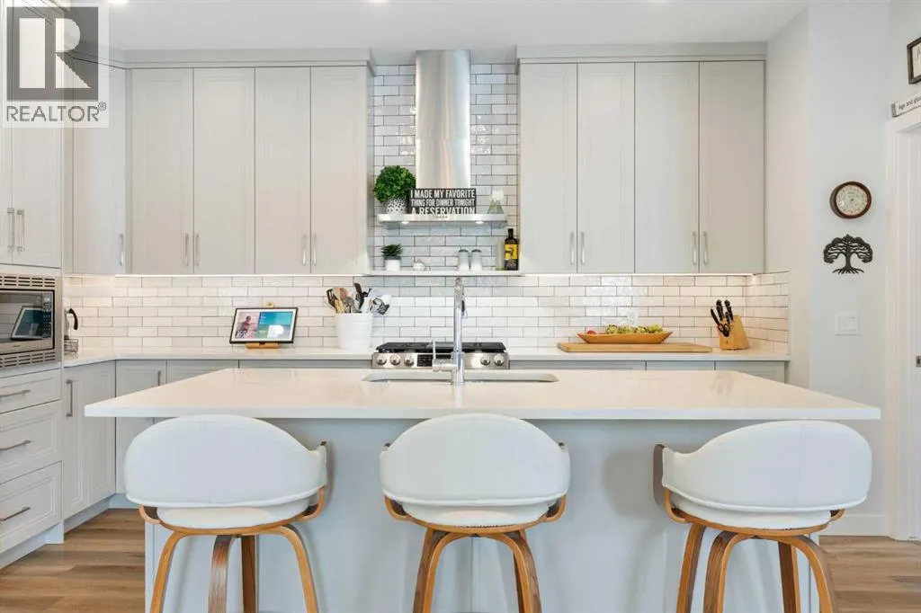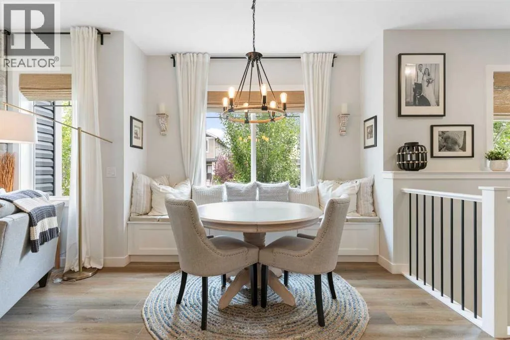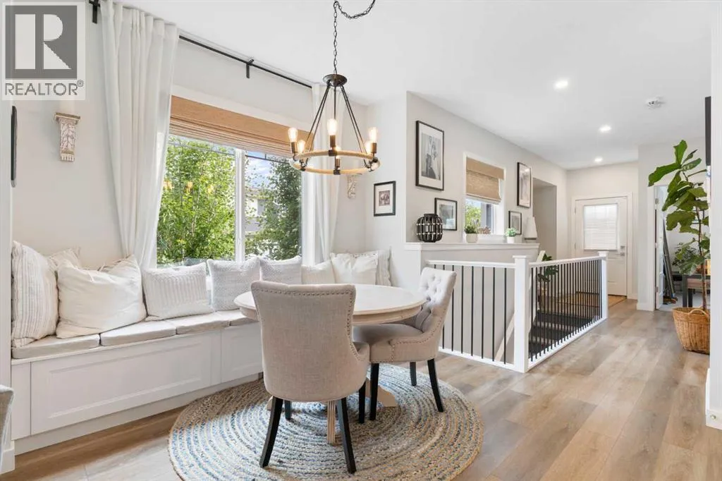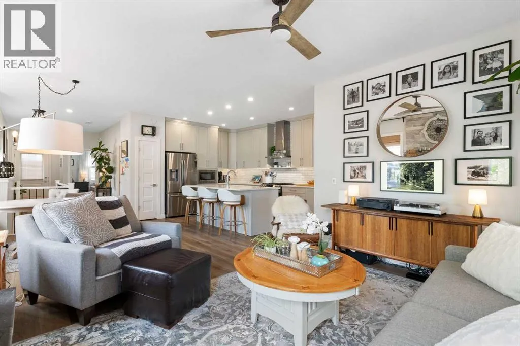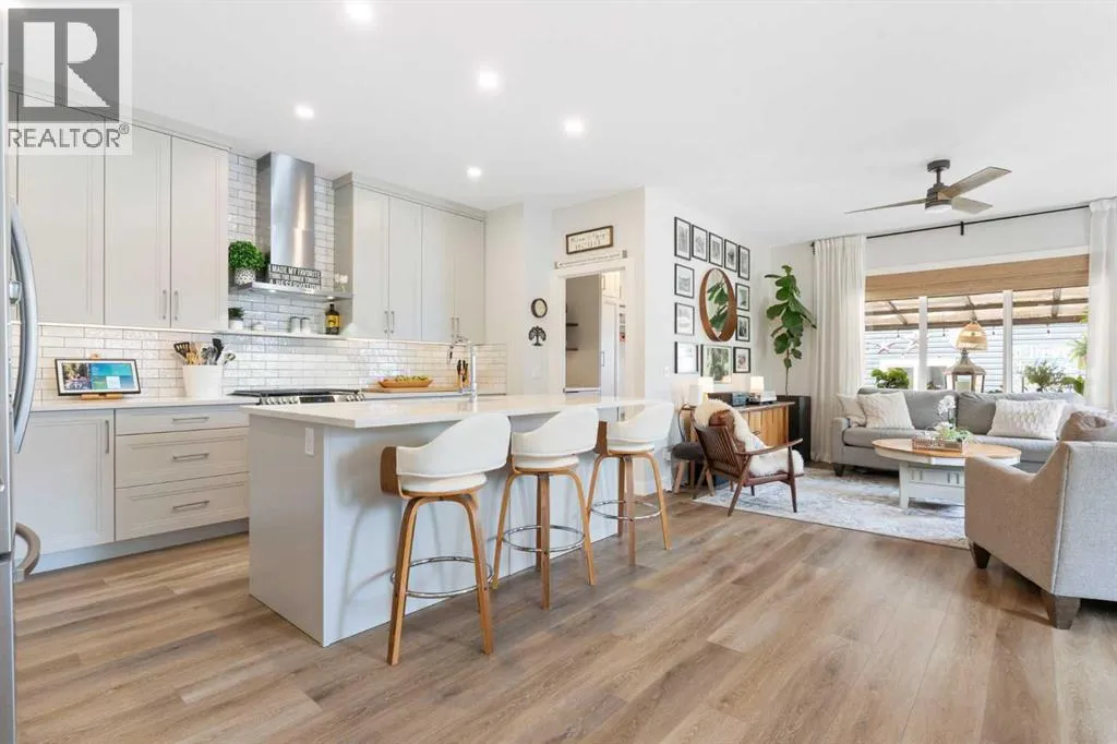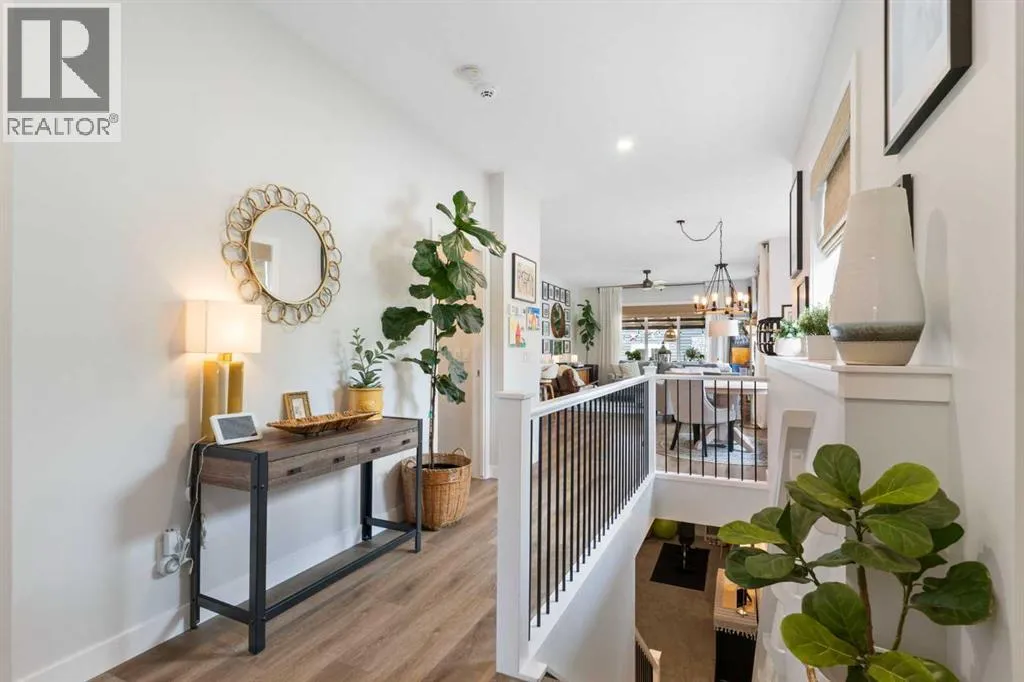 ** Open House: Saturday, Feb. 28th | 3:45 to 5:30 pm ** Welcome to 6 Emberside Hollow, a bright corner-lot bungalow located in the heart of Cochraneâs sought after Fireside community. Offering just over 2,030 square feet of well-designed living space, this home delivers modern finishes paired with everyday functionality. The main floor is airy and welcoming with 9ft ceilings, wide plank luxury vinyl flooring, and oversized windows that flood the space with natural light.The kitchen is designed to impress, featuring full height soft grey cabinetry with undermount lighting, quartz countertops, stainless steel appliances, a gas range, an undermount sink, and a large island with seating for three. Just off the kitchen, the dining nook includes a built-in bench with pull out drawers for added storage and convenience. The living room is anchored by a striking floor to ceiling brick fireplace, while a convenient half bath and functional mudroom help keep daily life organized.The primary bedroom is a comfortable retreat with a walk-in closet and spa-inspired ensuite offering dual sinks, a spacious tiled shower with bench, and a glass door. The bedroom window is tinted for added privacy without sacrificing natural light. A metal spindle railing leads to the fully finished lower level, where 9ft ceilings create a spacious family room ideal for movie nights, games, or play space. Two generous bedrooms share a stylish 4 piece bathroom, and a dedicated home office with wall to wall desk and shelving provides a perfect work from home setup.Outside, the fully fenced yard is designed for easy enjoyment. Low maintenance artificial turf eliminates mowing, while an irrigation system services the flowerbeds and planters. Landscape lighting enhances evening ambiance, and a circular gas fire pit creates a natural gathering space. The detached 22' Ã 22' garage features high ceilings, two large windows, 30-amp 120/240-volt service, a 240-volt heater, overhead storage racks, and a bui lt-in workbench, making it ideal for vehicles, hobbies, and storage. The additional gravel parking pad offers excellent flexibility for extra vehicles, a trailer, or RV, with a gate that opens to allow for longer RV parking.Fireside is known for its walkable pathways, playgrounds, pump track, new skateboard park, and proximity to Fireside School (Kâ8), Holy Spirit Catholic School (Kâ6), local coffee shops, and the Emberside commercial plaza. With Highway 22 just minutes away, Calgary and the mountains are both easily accessible. Offering single level living, modern finishes, an entertainer friendly backyard, and a vibrant neighbourhood setting, 6 Emberside Hollow is a home you will love coming back to. (id:27476)