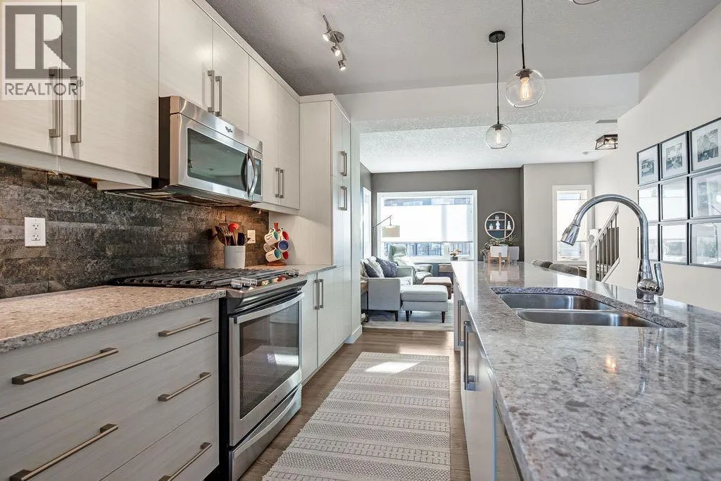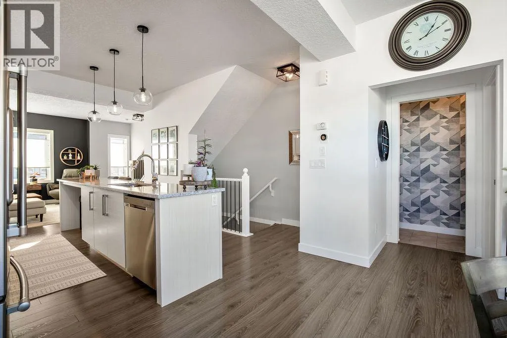 Welcome to this beautifully updated END UNIT townhouse offering thoughtful upgrades, abundant natural light, and is presented in incredible condition. With high ceilings and large windows throughout, this home feels bright and welcoming from the moment you step inside.The entry level offers flexibility with space ideal for a home office, reading room or home gym, along with a convenient storage room and access to your attached garage.The open-concept main living area is designed for both everyday comfort and entertaining. The kitchen features ungraded appliances including a gas stove, generous cabinetry, and a spacious island that flows seamlessly into the dining and living areas. Thanks to the homeâs end-unit position and elevated sightlines, natural light pours in, creating an inviting atmosphere throughout the day.Upstairs, youâll find 3 well-proportioned bedrooms, including a primary retreat complete with a three-piece ensuite and walk in closet. A four-piece main bathroom serves the additional bedrooms, making this layout ideal for families, guests, or shared living.Additional highlights includes AIR CONDITIONING, and a HEATED GARAGE with enough space for storing your toys as well as additional storage under the stairs. This home also offers extra parking available on the drivewayâan added bonus rarely found in condo living. The end-unit location provides enhanced privacy and a quieter setting, while still offering easy access to nearby amenities and outdoor spaces. Fresh paint, custom feature walls, and new up-down blinds enhance the modern feel while allowing you to control light with ease. A move-in-ready home with modern updates, functional living spaces, and standout featuresâthis end unit offers comfort, convenience, and value. Enjoy the walking/running paths right outside your doorstep to the beautiful Bow River Pathways. Schools and shopping are close by and the access both out of Cochrane and into downtown is now simpler than ever. (id:27476)