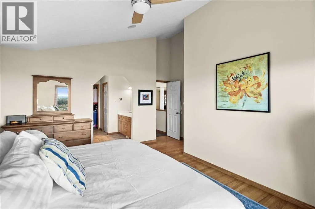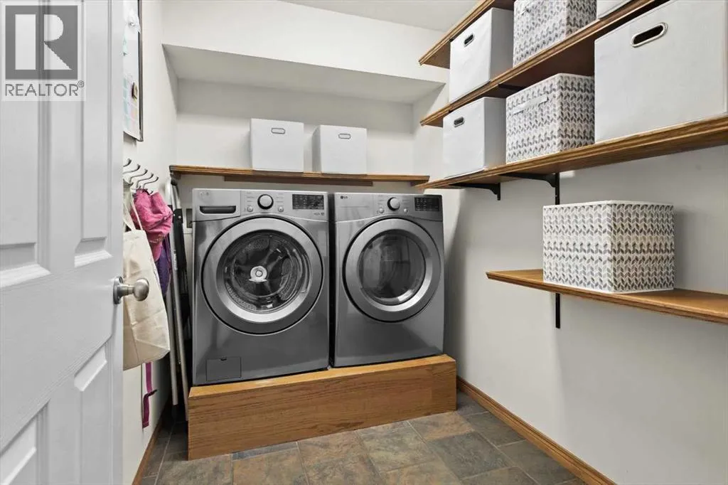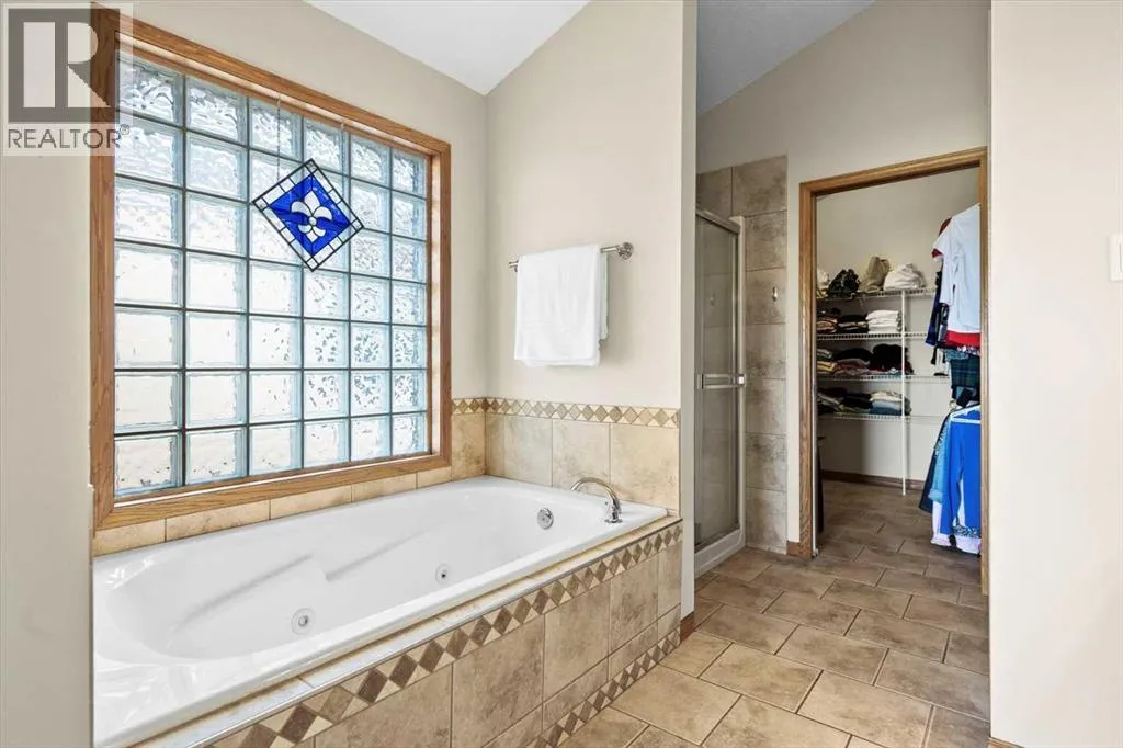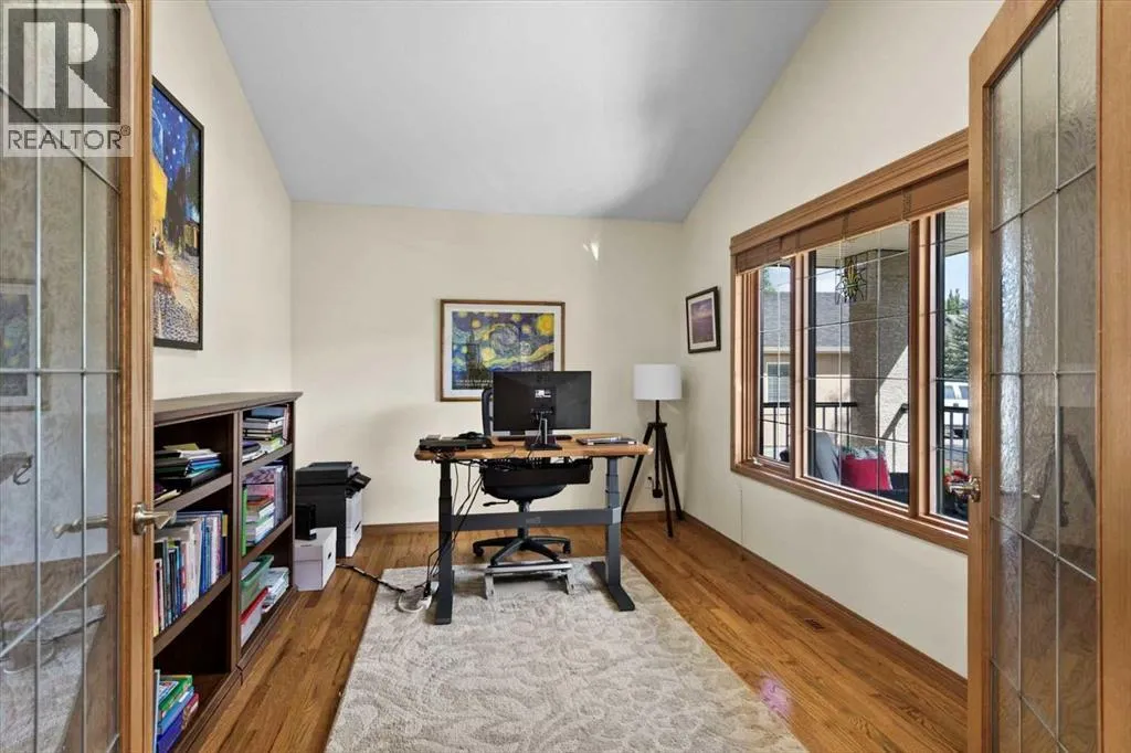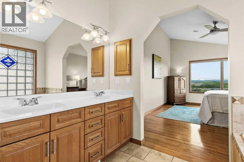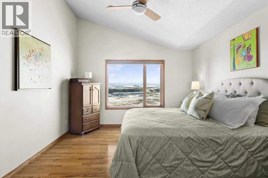 Perched in a prime southwest facing location, this traditionally designed executive walkout bungalow offers unparalleled views of the surrounding mountains and valleys, with no obstructions to spoil the scenic beauty. Impeccably maintained and boasting 1,713 square feet of living space, this home blends classic charm with modern comforts, making it an ideal retreat for both relaxation and entertainment.The spacious entry flows into the open-concept main floor and features a light, neutral interior that enhances the spacious feel of the home. Off the entry is a separate home office or den with French doors for privacy. Opposite the office is the main floor laundry and mud room with lots of storage space and access to the oversized double car garage. The elegant, formal dining room is a perfect location for hosting small or large gatherings. Floor to ceiling windows and soaring high ceilings flood the space with natural light, creating an inviting and airy ambiance. A central fireplace in the living room offers warmth and coziness, perfect for cooler evenings. Sliding doors lead out to a deck, where you can enjoy the stunning views while sipping your morning coffee or hosting gatherings. The chef-inspired kitchen is outfitted with high-end stainless steel appliances, granite countertops, and a large island for additional workspace. New refrigerator, oven, washer and dryer this year and dishwasher 2024. A walk-in pantry provides ample storage, while the adjacent dining area flows effortlessly into the living room, making it perfect for both intimate dinners and entertaining larger groups.The master suite, conveniently located on the main floor, is a true sanctuary. It features a luxurious 5-piece ensuite bath and offers easy access to the main living areas. The walkout lower level is an entertainerâs dream, with in-floor heating and a media room complete with theater seating for an immersive viewing experience. A games room with a full bar and pool table is id eal for hosting friends, while the custom library offers a quiet spot for reading or relaxation. Two additional bedrooms are located on the lower level, along with a spacious 3-piece bath. The lower level also opens onto a patio, offering seamless access to the beautifully landscaped yard with a terraced garden and full irrigation system. For added comfort, the home is equipped with central air conditioning and surround sound throughout, ensuring the perfect atmosphere year-round. Whether you're enjoying a cozy evening by the fire, hosting a game night, or unwinding on the deck with a glass of wine, this home offers an exceptional lifestyle. (id:27476)