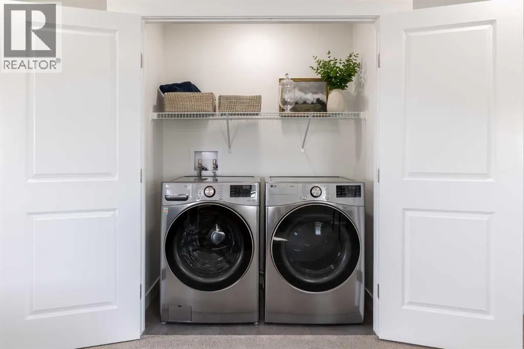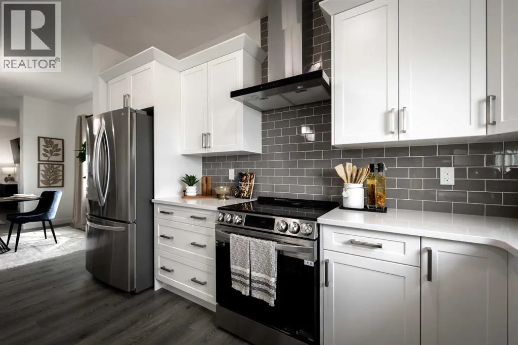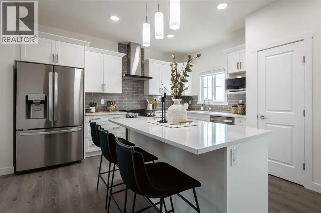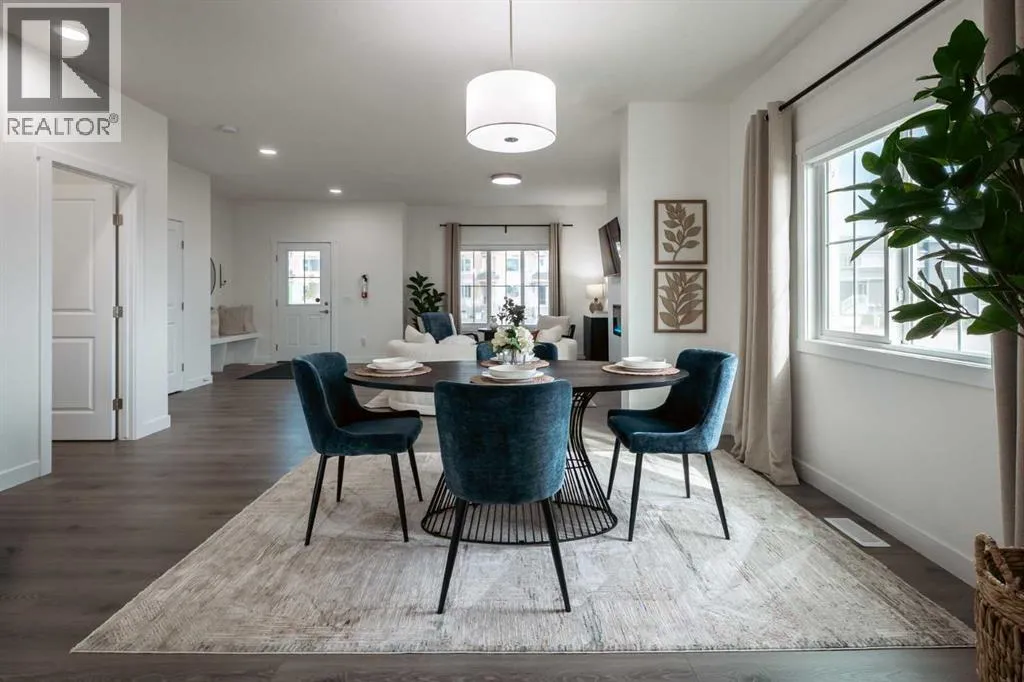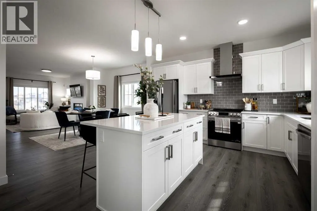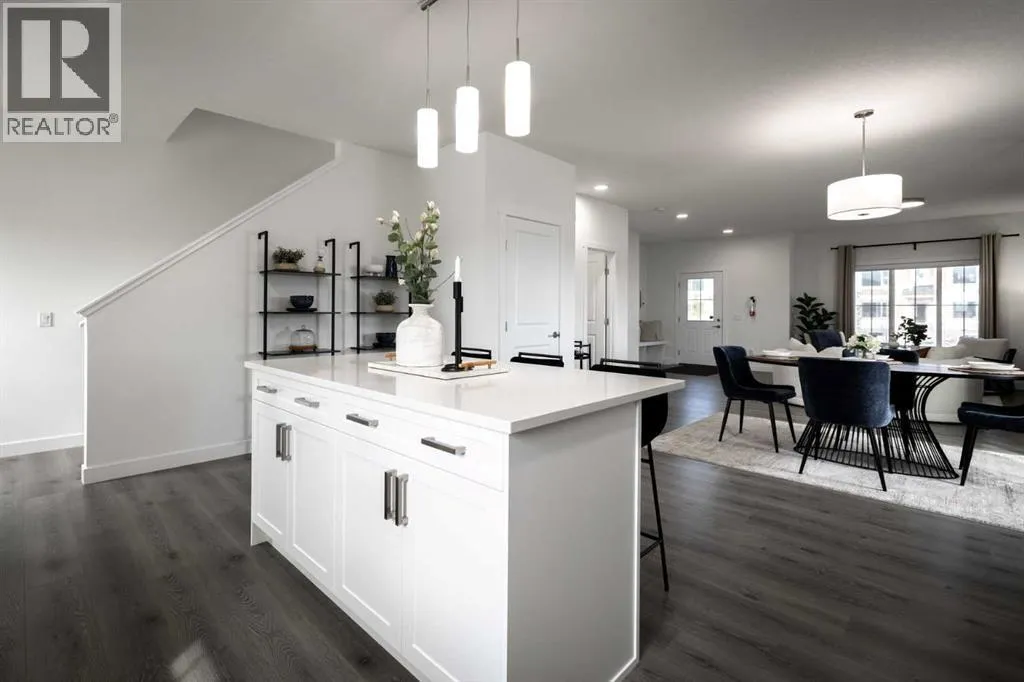 Welcome to the Douglas 22 in Heartland, Cochraneâa thoughtfully designed home offering 1,818 sq ft of stylish, functional living in one of Cochraneâs most family-friendly communities. Surrounded by parks, pathways, and scenic views, Heartland is the perfect place to put down roots.This home features a bright open-concept main floor with 9â ceilings and beautiful French-imported laminate flooring, creating a warm and cohesive living space. The modern kitchen is finished with quartz countertops, ample cabinetry, and seamless flow into the dining and living areasâideal for everyday living and entertaining alike. Vinyl tile flooring in all wet bathrooms adds durability and practicality where it matters most.Upstairs, youâll find three spacious bedrooms, a versatile bonus room perfect for family time or a home office, and the convenience of second-floor laundry. The layout is designed to grow with you, offering both comfort and flexibility for busy households.Additional highlights include a separate side entrance for future potential and a rear parking pad, providing convenient off-street parking. A well-balanced home that blends modern finishes, smart design, and a welcoming communityâthis is Heartland living at its best. **PICTURES ARE OF SHOW HOME; ACTUAL HOME, FIXTURES, FINISHES, ETC. MAY VARY AND ARE SUBJECT TO AVAILABILITY/CHANGE WITHOUT NOTICE** (id:27476)