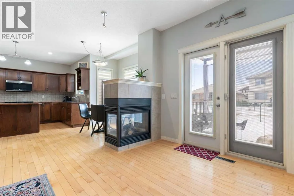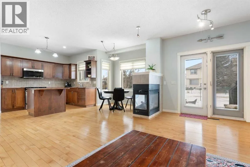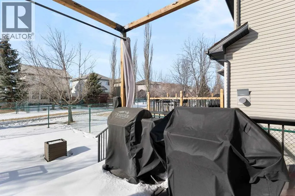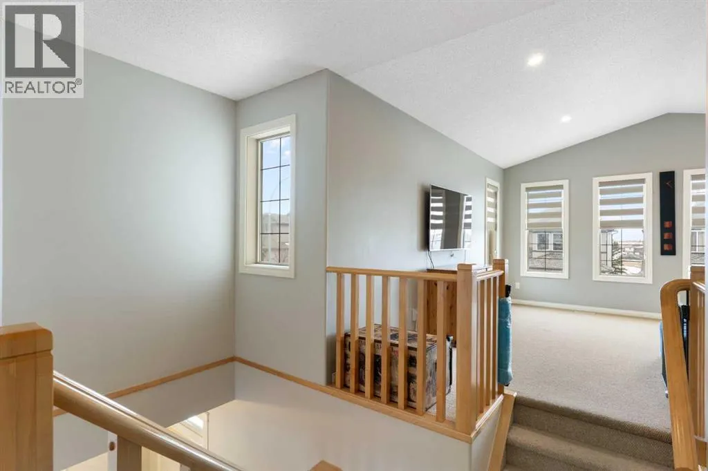 Welcome to the highly sought after Summit of Glen Eagles, a private crescent enclave in Cochrane known for its family friendly atmosphere, near zero traffic, and exceptional pride of ownership. This exclusive pocket offers its own snow removal and community landscaping, all homes backing onto green space, and one of Cochraneâs quickest commutes into NW Calgary. Homes here rarely come to market and are quickly claimed when they do.This beautifully maintained 1800+ sq ft two storey home offers 3 spacious above grade bedrooms, 2.5 bathrooms, and a large bright bonus room ideal for family living. The main floor features a functional open concept layout with a three way gas fireplace that elegantly separates the dining nook and living room. The kitchen includes a centre island, walk through pantry, and direct access to the backyard.Significant recent upgrades add tremendous value. The basement has been completely renovated, with the previous suite removed and transformed into a newly finished lower level featuring two additional bedrooms and fresh modern finishes. It feels brand new. A brand new washer and dryer have also been installed.Outdoors, the yard has been thoughtfully refreshed with all new sod laid last season, creating a lush, vibrant lawn. A newly built composite back deck provides the perfect low maintenance outdoor living space, stepping down to the beautiful stone patio and backing onto pathways and green space just steps from the community park.Complete with a double attached garage and loaded with updates, this home offers a rare opportunity to own in one of Glen Eaglesâ most coveted enclaves at an exceptional value. Homes in this crescent do not last. Book your showing and experience it for yourself. (id:27476)