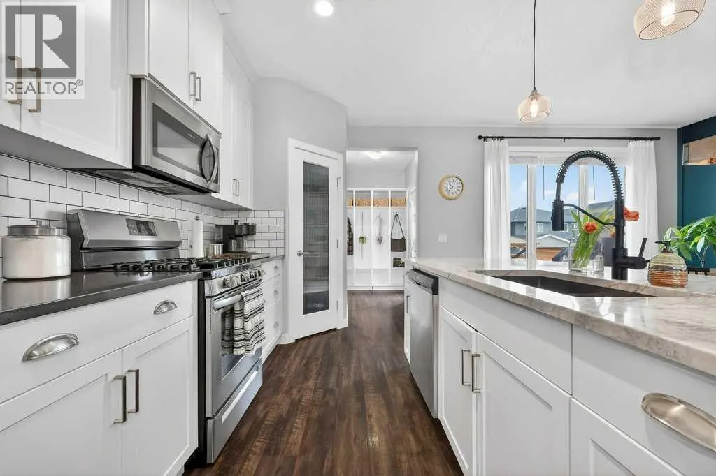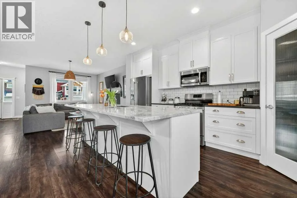 Nestled in one of Cochrane's most prestigious communities, this exquisite three bedroom, three bathroom home is sure to captivate. From the moment you cross the threshold, the meticulous craftsmanship and sophisticated finishes command attention. The main level greets you with a gracious open concept layout that seamlessly marries elegance and functionality, creating an impeccable setting for everything from relaxing mornings to curated dinner gatherings. Natural light cascades through expansive windows, bathing every detail in a luminous warmth that photographs simply cannot convey. The primary bedroom is a sanctuary of understated luxury, offering a serene retreat worthy of the most discerning homeowner. Two additional bedrooms provide versatile space for family, guests, or the polished home office you've been envisioning.The impeccably finished basement development was COMPLETED IN 2026 and delivers an extraordinary expanse of living space brimming with possibilities. Whether you envision an intimate screening room, a refined entertaining lounge, or a private wellness studio, this level offers the versatility needed to realize your vision. The backyard boasts a tiered deck for cozy evening and weekend gatherings, a stone patio and a DOUBLE DETACHED GARAGE NEWLY BUILT in 2025. The Fireside neighbourhood offers a lifestyle of convenience with an intimate sense of belonging. Fireside Bullrush Park awaits just moments away, ideal for leisurely evening walks or weekend explorations. Families will value the proximity to Bow Valley High School, while premium amenities including Safeway Cochrane ensure daily needs are met with ease. The community itself is celebrated for its immaculate pathways, welcoming ambiance, and that rare, coveted sense of connection that transforms a neighbourhood into something truly special.Cochrane continues to ascend as one of Alberta's most sought after towns, offering breathtaking mountain panoramas, a flourishing cultural scene, and a pac e of life that reconnects you with what truly matters. This homes captures the essence of that lifestyle, presented in a beautifully appointed package. Discover the art of Fireside living. Call today for more information!! (id:27476)
