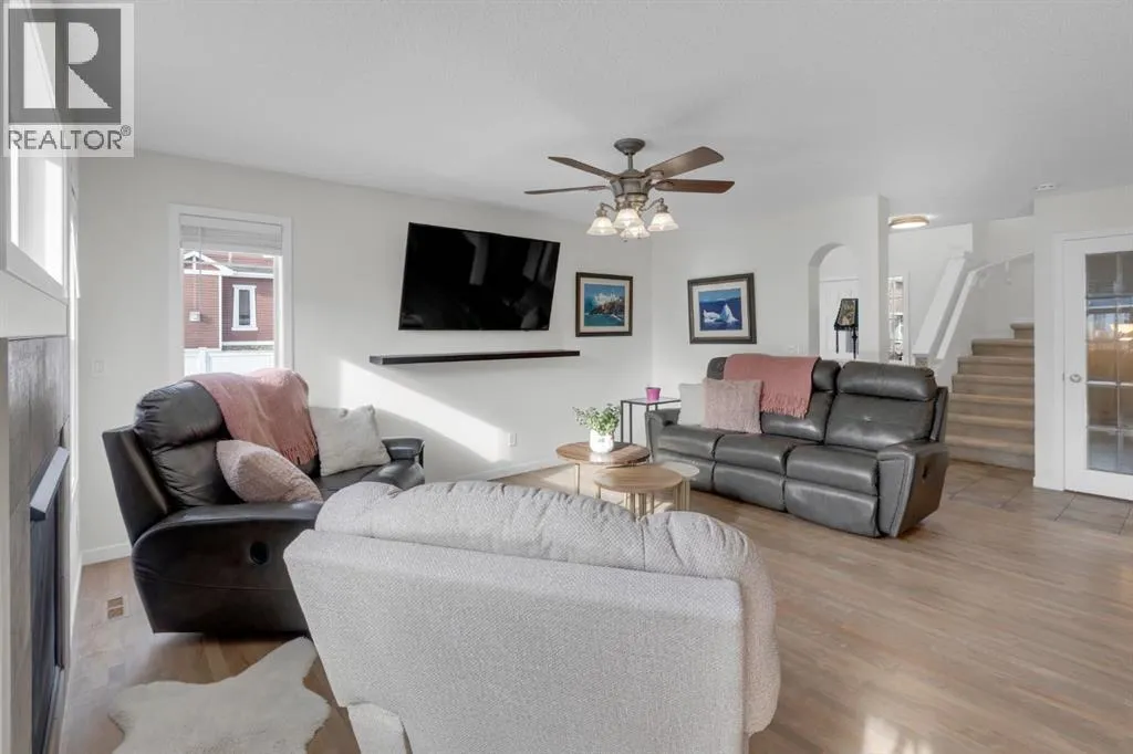 OPEN HOUSE - Sunday, March 29th at 2-4pm. Imagine waking up every morning to the warmth of community and the promise of a sunny south backyard right in the heart of Riversong! Welcome to 429 River Heights Dr â your future family sanctuary in Cochrane, where every detail has been thoughtfully upgraded and every moment feels connected. This home opens with a bright OPEN-CONCEPT DESIGN that floods the main floor with natural light and instantly makes you feel at home, plus CENTRAL AIR CONDITIONING for year-round comfort. REFINISHED HARDWOOD FLOORS offer timeless warmth and durability that families love, while FRESH PAINT THROUGHOUT MOST OF THE MAIN FLOOR AND UPSTAIRS delivers a crisp, move-in-ready canvas. Inside youâll find plenty of room to grow across 1938 sqft and a layout that supports real-life living â homework at the island, movie nights in the living room with cozy gas fireplace, and quiet corners for everyone. Built in 2009, the solid foundation pairs perfectly with recent upgrades for modern comfort without the new-build price. Upstairs is complete with a bonus room with valley views, 3 well-proportioned bedrooms and 2 full bathrooms, including the primary suite with a massive walk-in closet and an ensuite with soaker tub and separate shower.Downstairs is developed with an open recreation space, partially finished storage and utility space. The real showstopper is the generous 6404 sqft lot offering a SUNNY SOUTH BACKYARD bathed in light from sunrise to sunset, maximizing your outdoor season in Albertaâs climate. Enjoy the LARGE SPACIOUS DECK for morning coffee or evening wine, harvest from mature FRUIT TREES, tend your GARDEN for fresh produce, and gather around the FIREPIT for sâmores and spontaneous neighbourhood get-togethers. This private oasis is built for entertaining or unwinding, with south exposure keeping it inviting even as seasons change. Practicality meets luxury with the TRIPLE GARAGE WITH HEATER â a game-changer for Cochrane winters â and the OVERSIZED DRIVEWAY that easily fits 4 vehicles. No more street parking issues or scraping windshields; perfect for guests, teen cars, boats or toys. Picture the lifestyle this unlocks: steps from BOW VALLEY HIGH SCHOOL for easy walk-to-school access, PLAYGROUNDS AROUND THE CORNER keeping kids close, PARKS AND PATHWAYS just across the street ideal for dog ownersâ daily walks, and FISHING AT THE BOW RIVER a short stroll away. Downtown amenities are quick to reach, and a short 5-minute drive to Calgary CO-OP and SLS RECREATION CENTRE which covers fitness and fun for all ages. The neighbourhood breathes old school friendliness with daily driveway chats, supportive neighbours, and a true sense of family. Itâs safe, connected, and full of organic community moments that make every day better. Donât wait! Contact us or your favourite realtor today to book your private showing and start living the lifestyle you deserve. (id:27476)