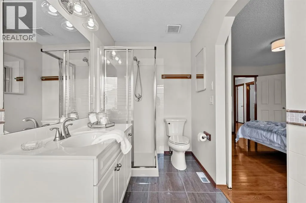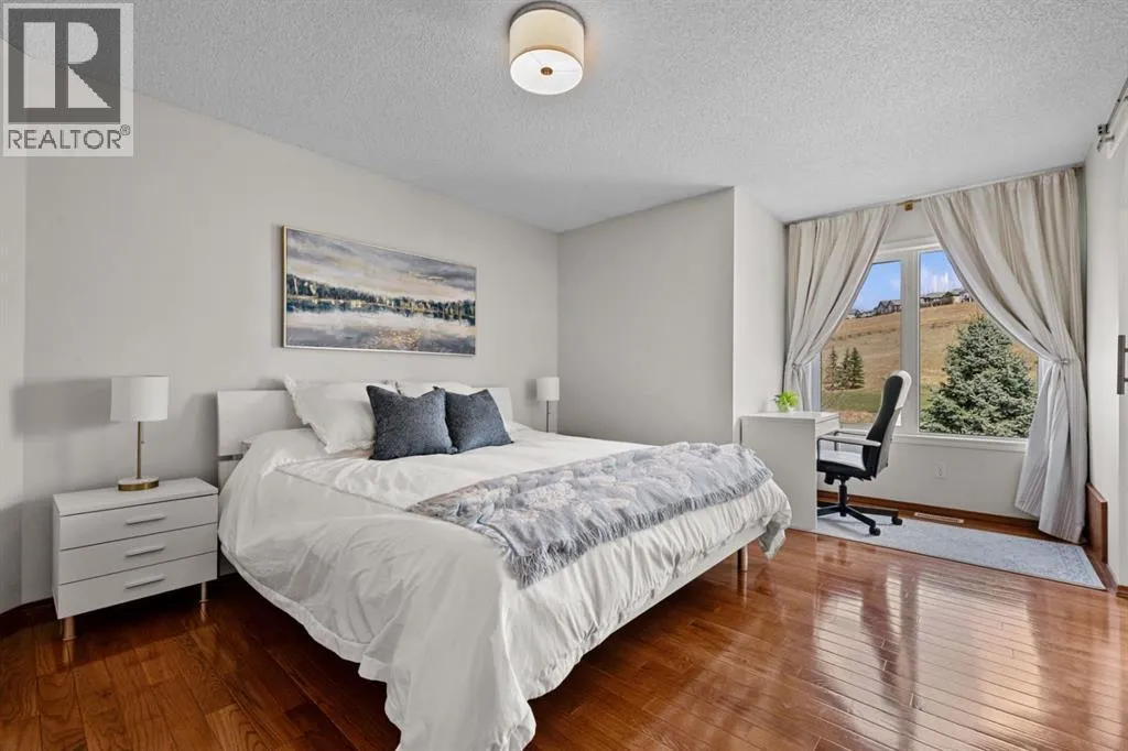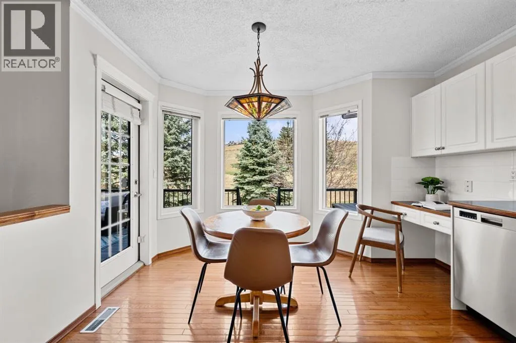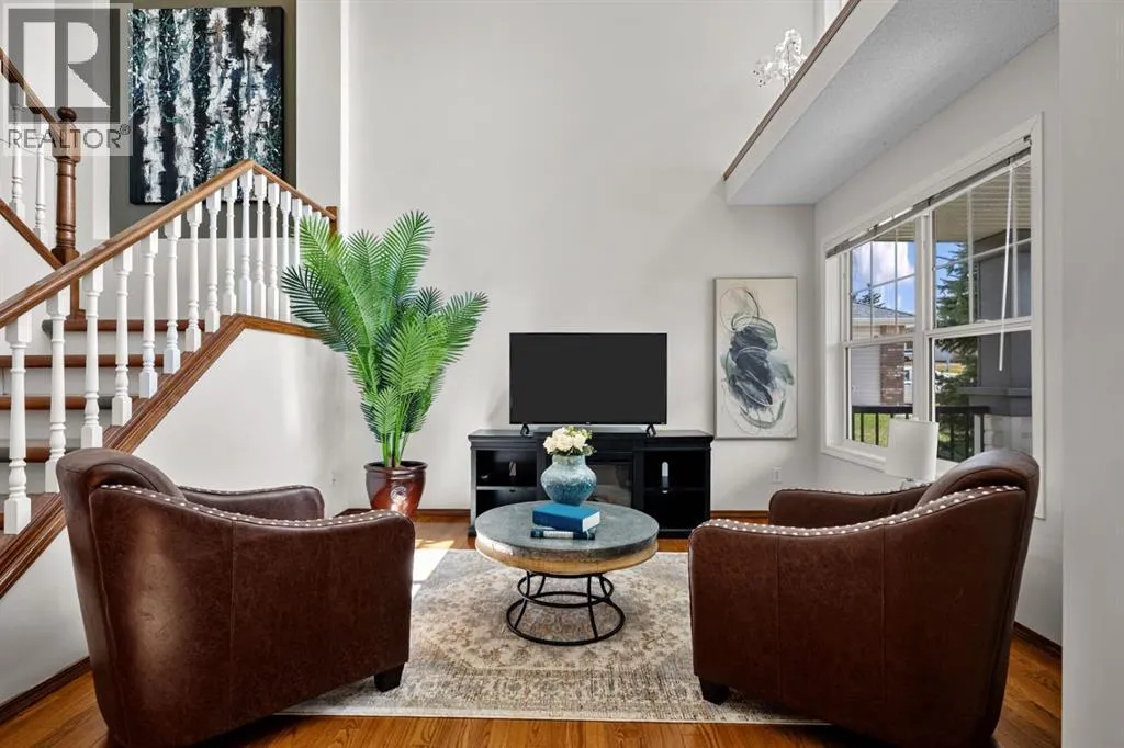 ***OPEN HOUSE Saturday March 28th 12-4PM*** Welcome to this BEAUTIFUL HOME offering OVER 2000 sq. ft of finished living space and FIVE bedrooms, perfectly located in the sought after community of Gleneagles. Backing directly onto the FAIRWAYS OF THE GLENEAGLES GOLF COURSE. This property offers peaceful views, and a backyard retreat surrounded by beautifully landscaped grounds and no neighbours directly behind you. Step inside to a grand entrance with soaring VAULTED ceilings, creating an immediate sense of space and allowing an abundance of natural light to fill the home. The main floor features a formal living room and dining area perfect for entertaining family and friends. Towards the back of the home, you'll find a warm and inviting family room with a beautiful FIREPLACE, seamlessly connected to the kitchen. The kitchen features NEW STAINLESS STEEL APPLIANCES, ample storage and a convenient built-in desk space. The cozy kitchen nook offers the perfect vantage point to enjoy your morning coffee/tea while overlooking the meticulously maintained backyard oasis, featuring mature trees, garden boxes and a cozy fire pit seating area to enjoy those relaxing evenings. Upstairs the primary bedroom features a walk-in closet and a 5 piece ensuite bathroom along with two more spacious bedrooms and a full bathroom. From the second level. you can even enjoy the Breathtaking MOUNTAIN VIEWS. The Lower level offers a large sound proofed bedroom plus a newly upgraded 2nd bedroom/office space. Recent Upgrades include - a NEW ROOF (4 years), Hot Water Tank (3 years), Stainless Steel Appliances including washer/dryer (3 years), fireplace (1 year). Gleneagles offers quick access to Calgary while maintaining the quiet scenic charm that Cochrane is known for. Residents enjoy access to the towns extensive pathway system, with GLENBOW RANCH Provincial Park just minutes away, featuring breathtaking biking and walking trails overlooking the Bow River. Privacy and Tranquility await. Book y our showing today and let this exceptional property speak for itself. (id:27476)
